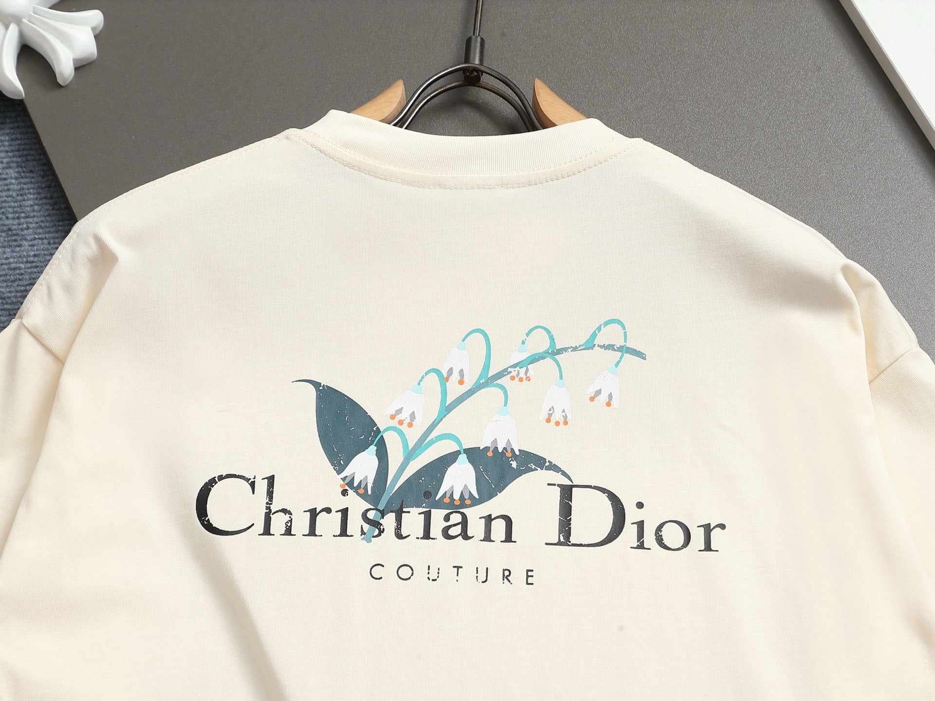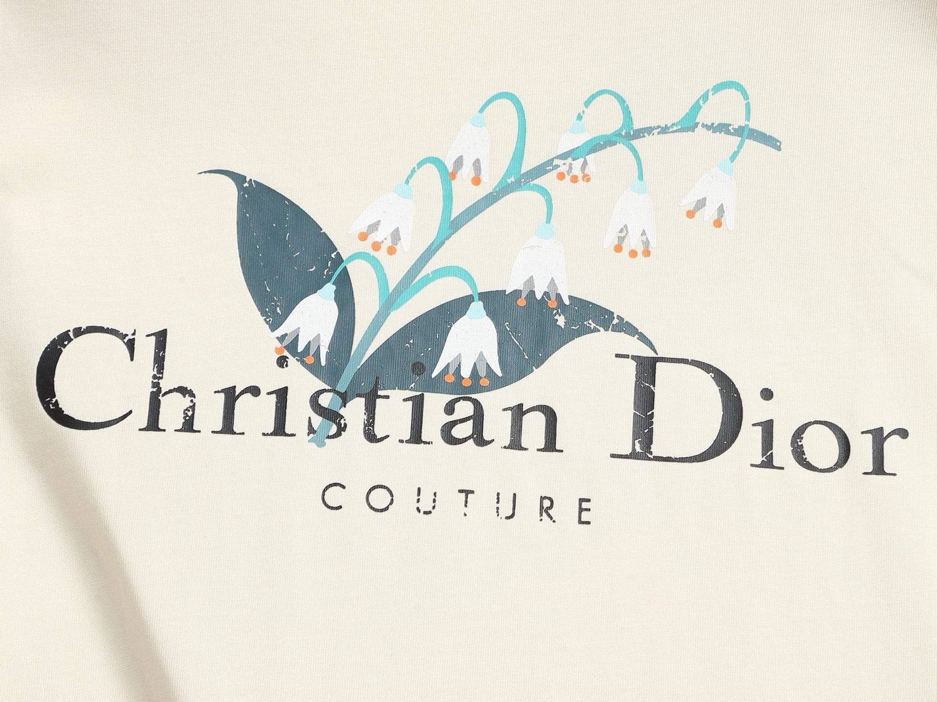 Elevate your wardrobe with the DIOR Round Neck Short-Sleeved T-Shirt, a perfect blend of style and sophistication. Crafted from pure, original fabric, this 260g tee features an eye-catching lily of the valley pattern, showcasing the iconic brand logo with understated elegance.