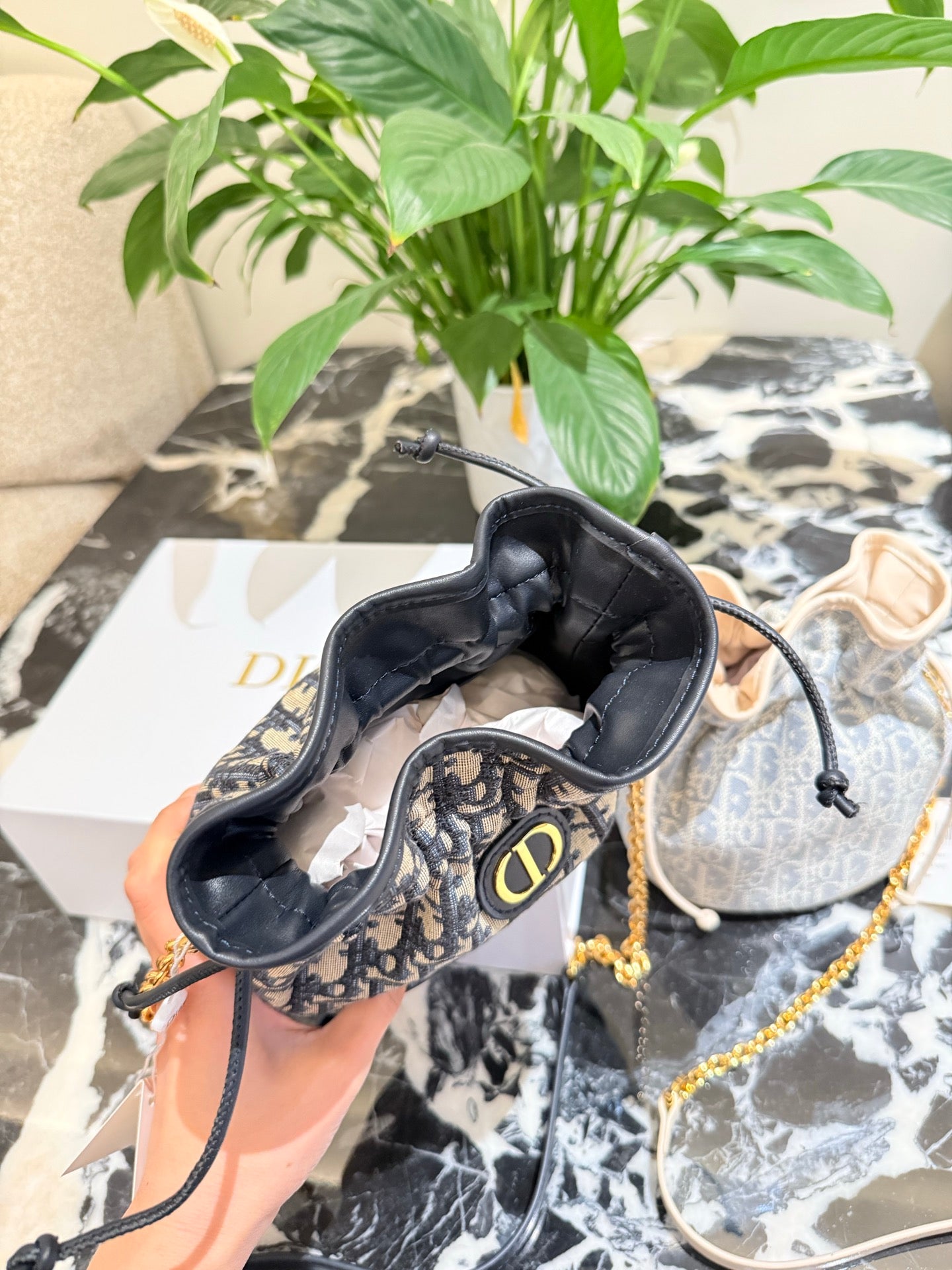 Discover the Dior Ultra-High Practical Bucket B Bag, an essential accessory that seamlessly blends style and functionality. This latest addition features a retro gold-finished metal CD logo and a convenient drawstring compartment, perfect for organizing your daily essentials. With an adjustable chain shoulder strap complemented by a leather strap, this versatile bag can be worn by hand, over the shoulder, or cross-body. Packaged in a stylish 15×19 box, it’s the ideal gift for yourself or a loved one. Elevate your fashion game with this chic and practical bucket bag.