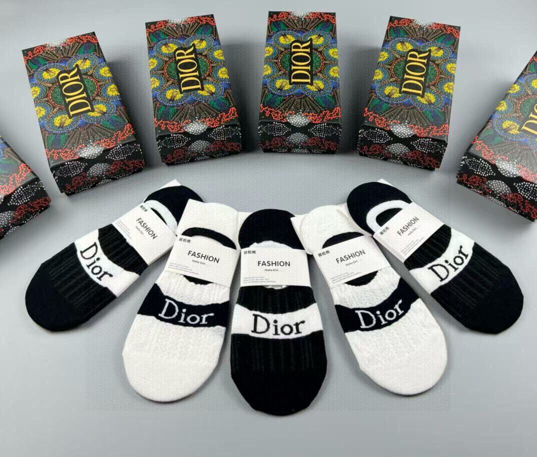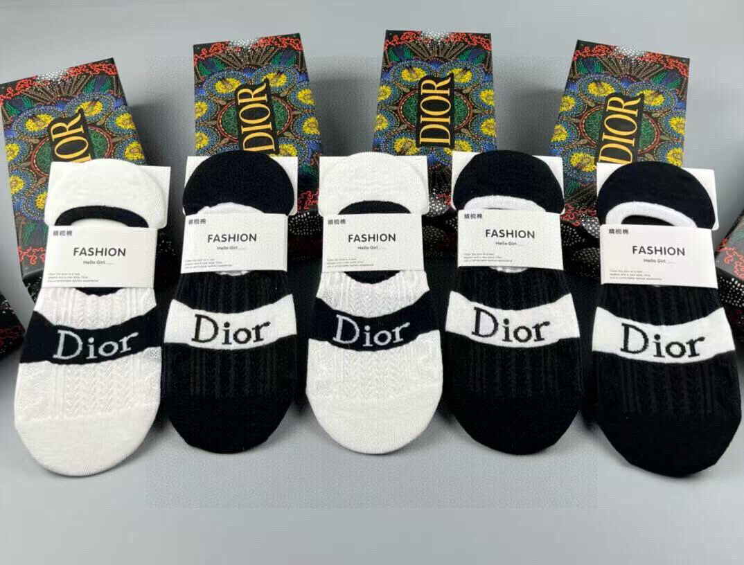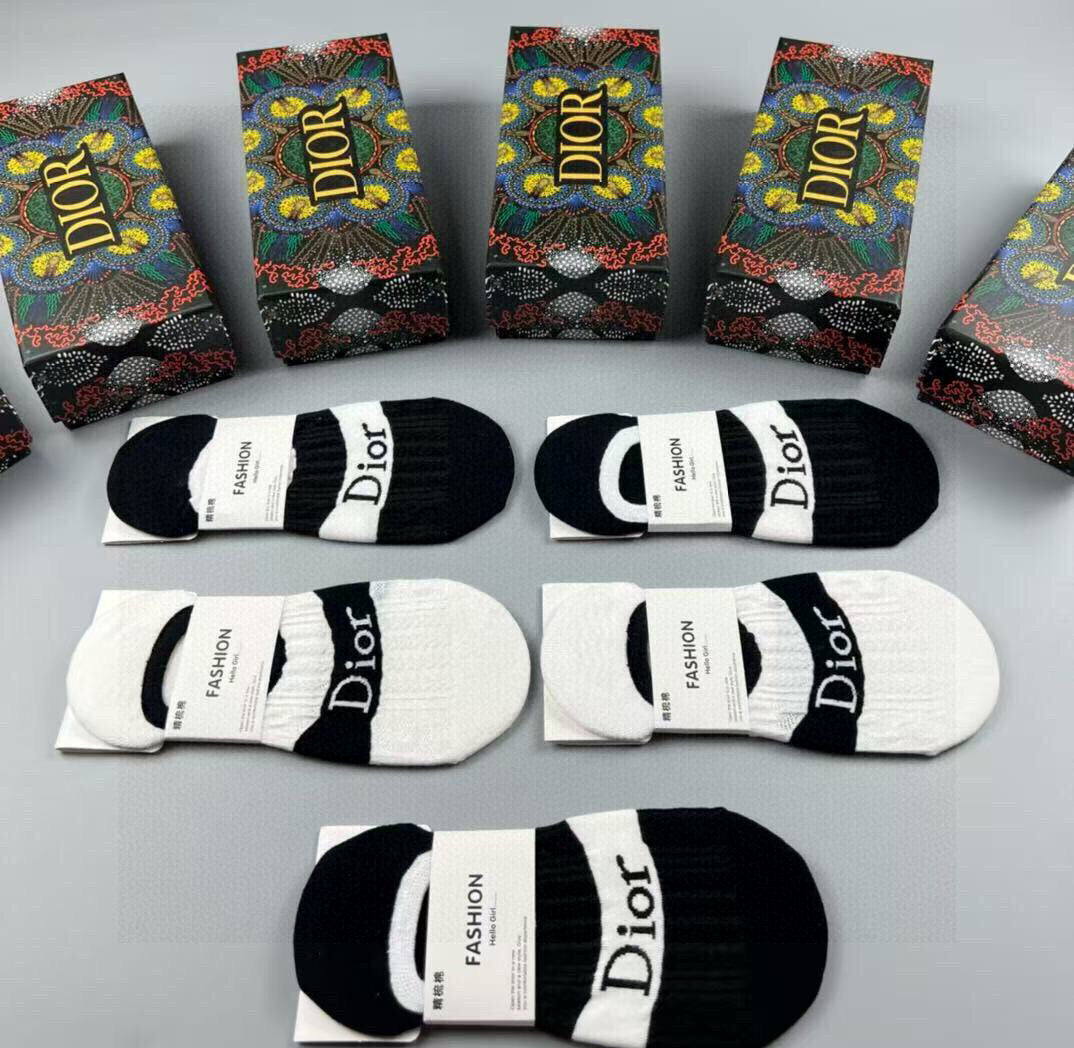 Discover the elegance of Dior with these women's invisible socks, featuring a chic jacquard classic letter logo. Made from high-quality pure cotton, these socks offer exceptional comfort and style. Perfectly designed for effortless pairing with any outfit, this set includes five pairs, making it a must-have addition for fashion enthusiasts. Elevate your wardrobe with these sophisticated invisible socks from a renowned brand.
