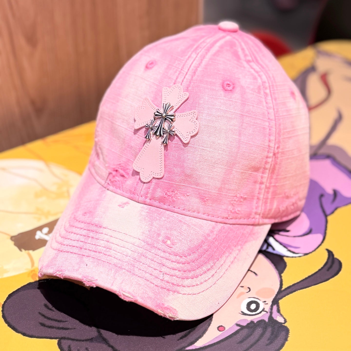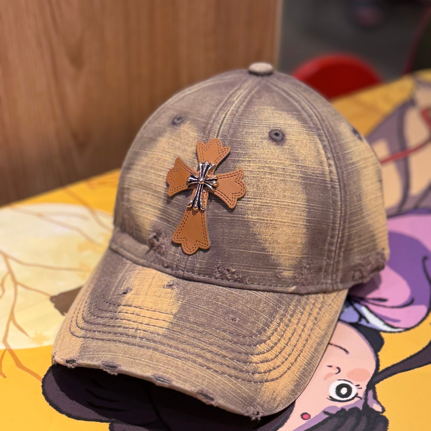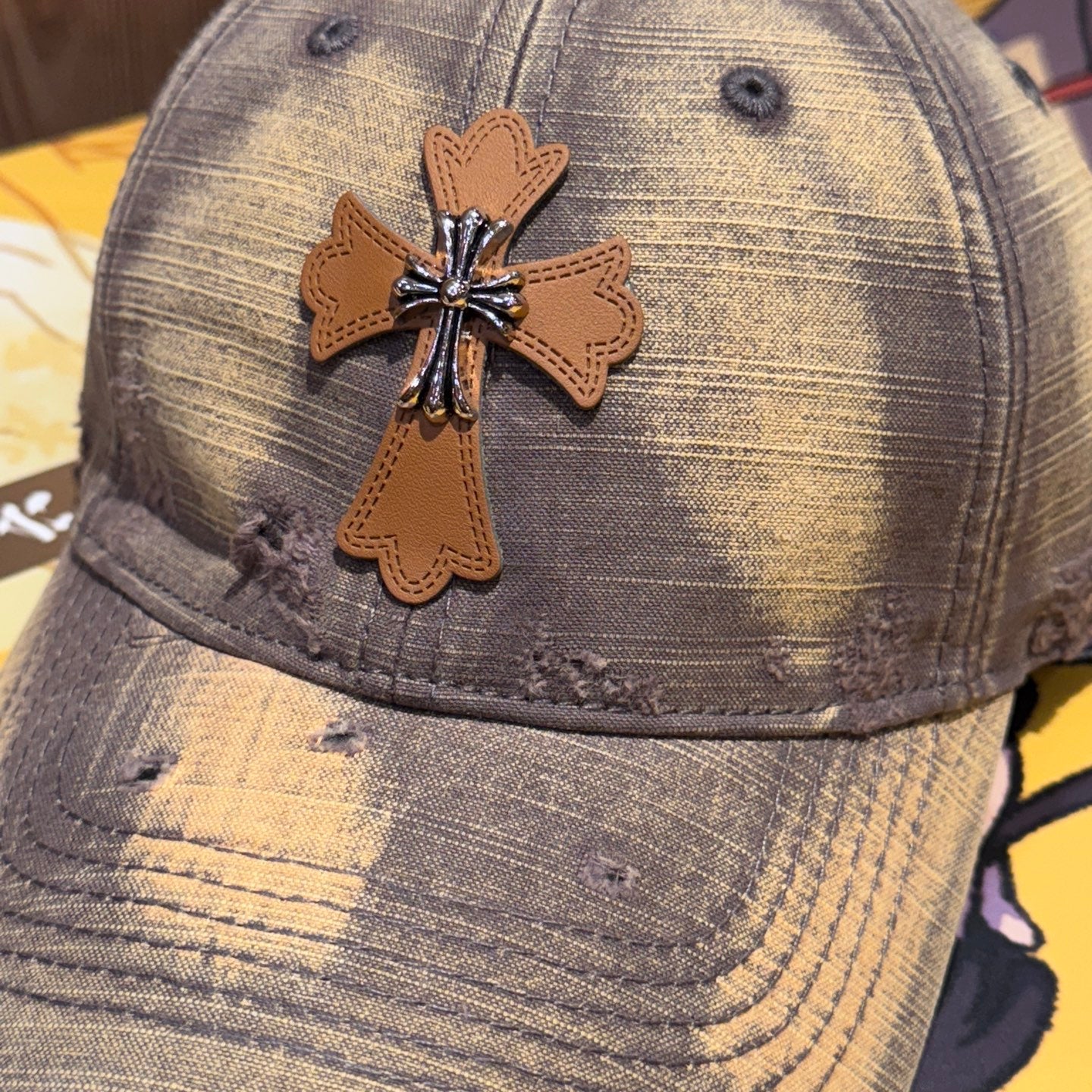 Distressed Cross Gradient Washed Baseball Cap