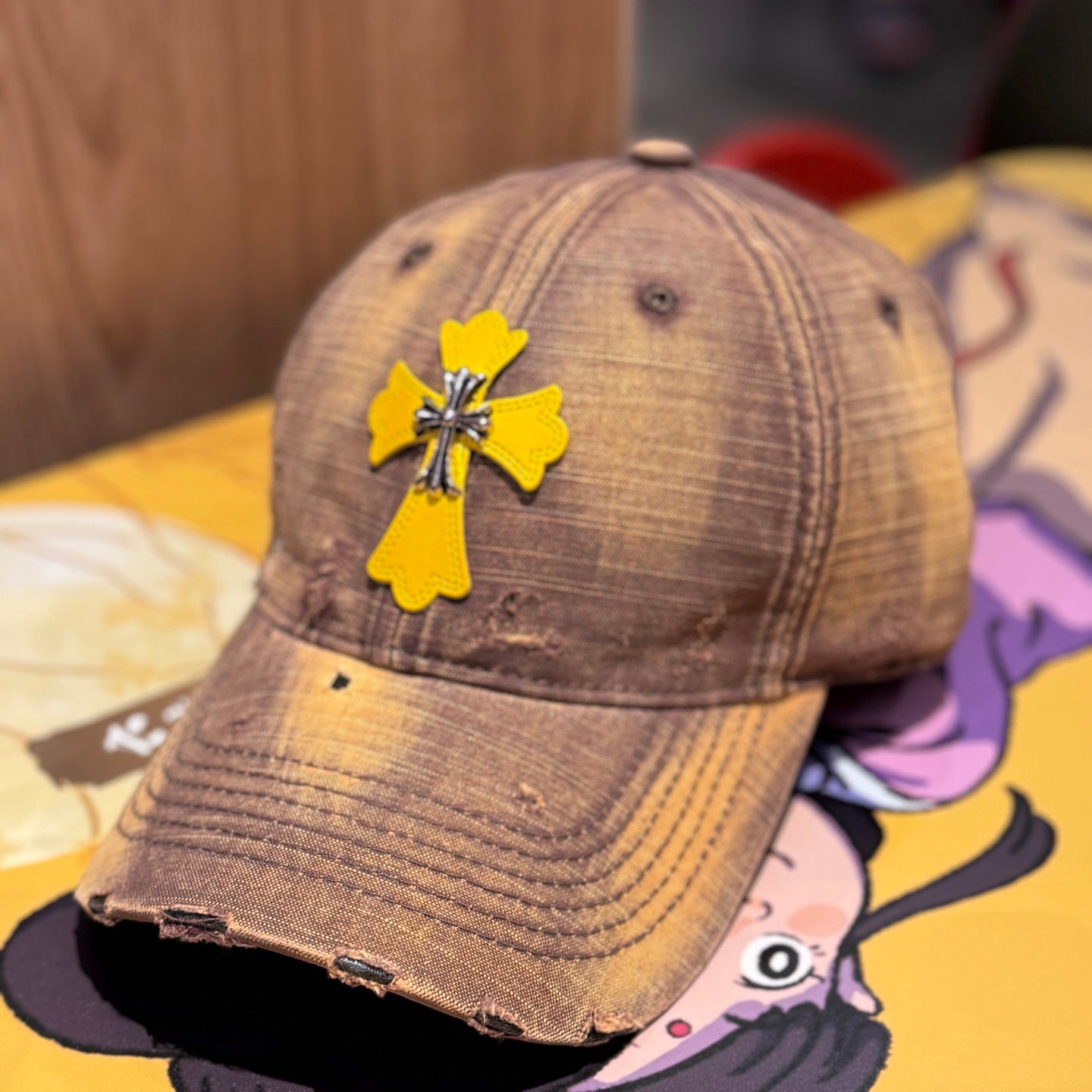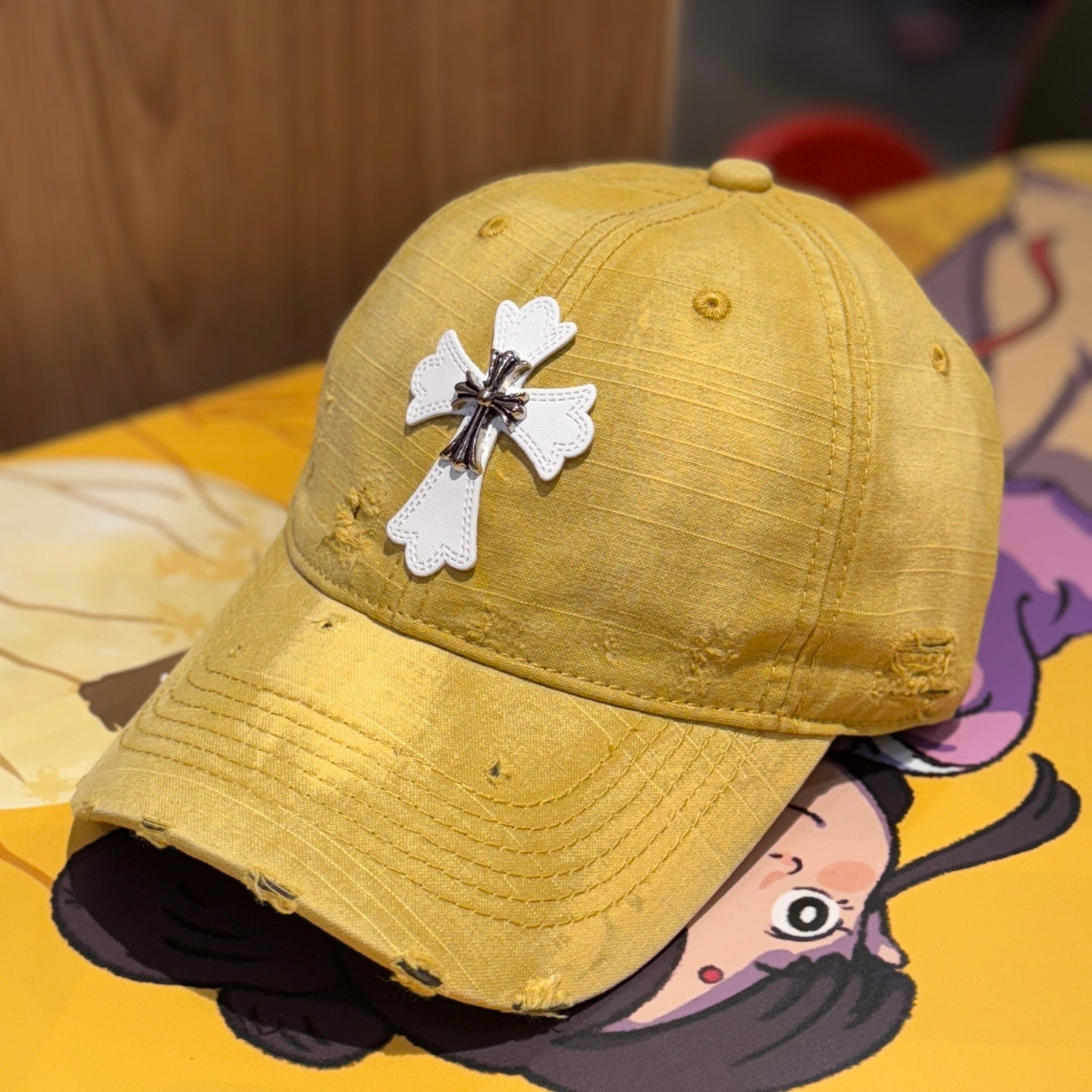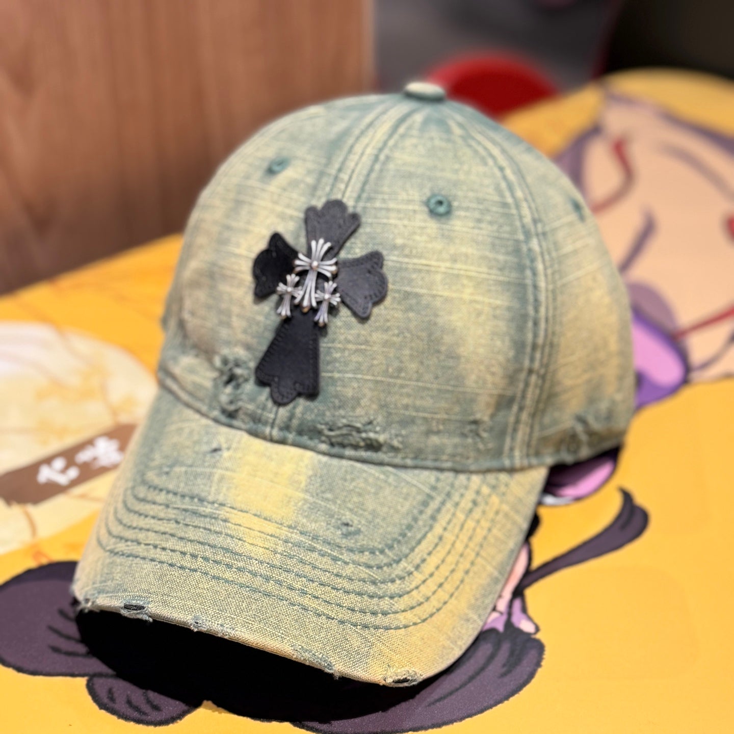 Distressed Cross Gradient Washed Baseball Cap