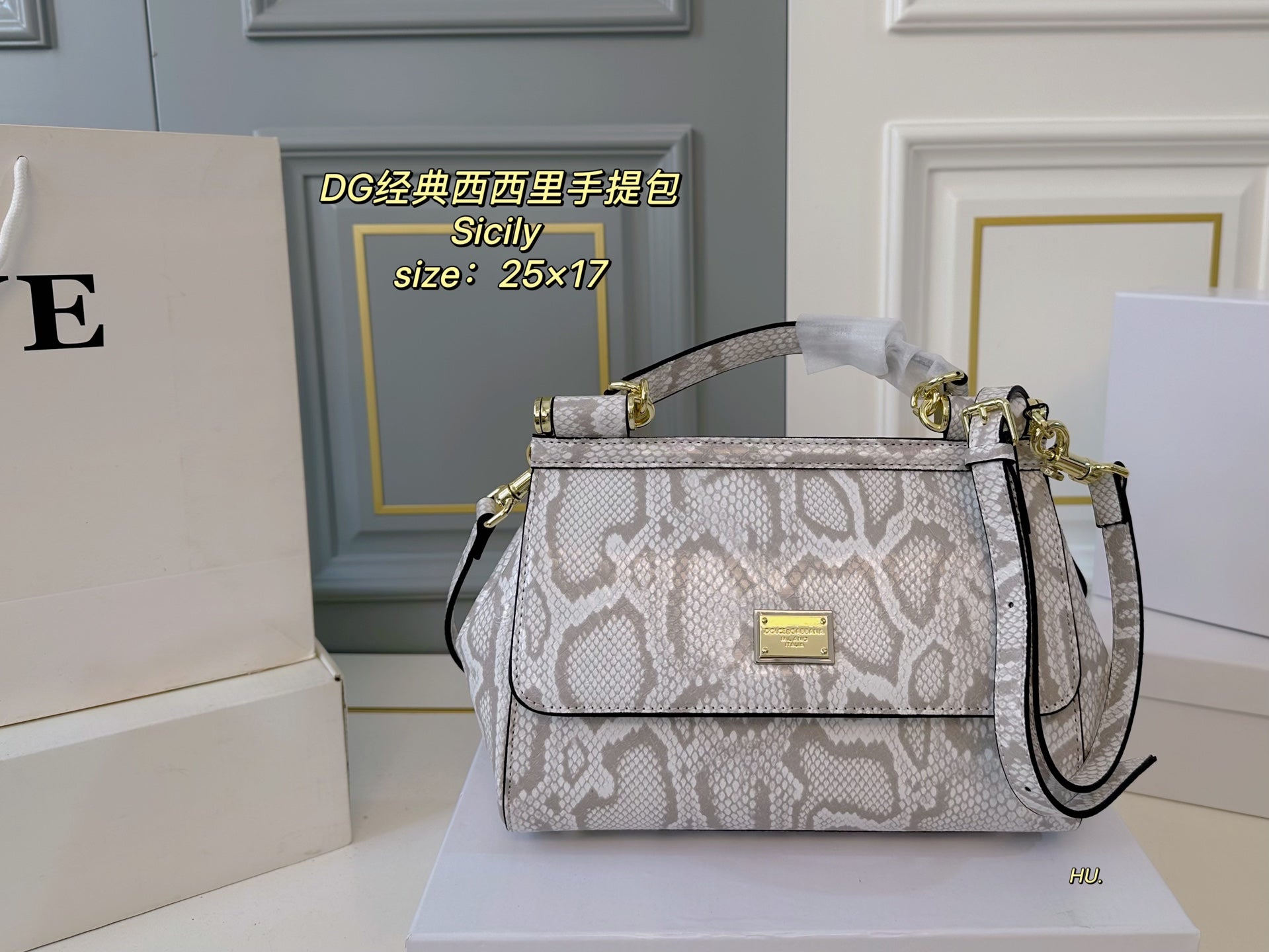 Introducing the Dolce & Gabbana Classic Sicily Handbag, size 25x17 cm. Designed with sophistication, this handbag embodies the same elegance admired by style icons like Princess Kate. Its clean lines and generous silhouette make it a versatile accessory for any occasion.