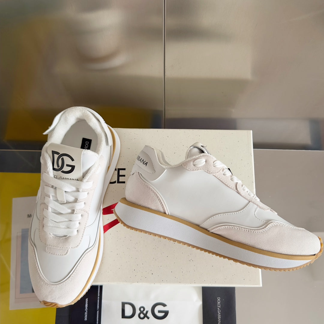 Crafted with meticulous attention to detail, these sneakers feature a luxurious two-tone suede upper, beautifully complemented by a contrasting mesh panel showcasing the iconic DG cross logo. The lightweight and grippy rubber outsole boasts an innovative design, ensuring superior traction and comfort during any activity. A jacquard label adds a touch of timeless elegance, making these shoes a true statement piece.