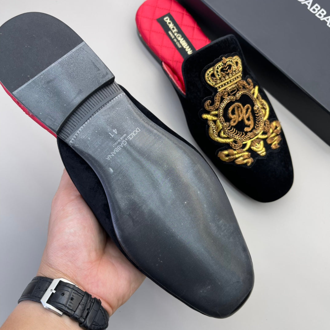 Experience luxury with these exquisite Dolce & Gabbana shoes, crafted from high-quality Indian silk and original imported velvet fabric. Each pair features pure hand-embroidery, showcasing exceptional craftsmanship and attention to detail. Tailored as a one-piece design, these shoes offer a refined aesthetic that stands out. The interior is lined with water-dyed cowhide for added comfort, while the original outsole ensures durability and style. Available in sizes 38-45, indulge in elegance and sophistication with every step.