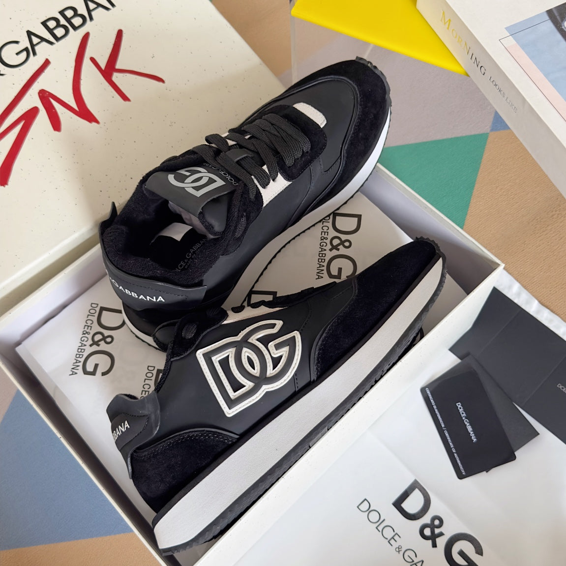 - **Timeless Aesthetics**: A two-tone suede upper is complemented by a contrasting printed DG cross logo, adding a touch of sophistication.