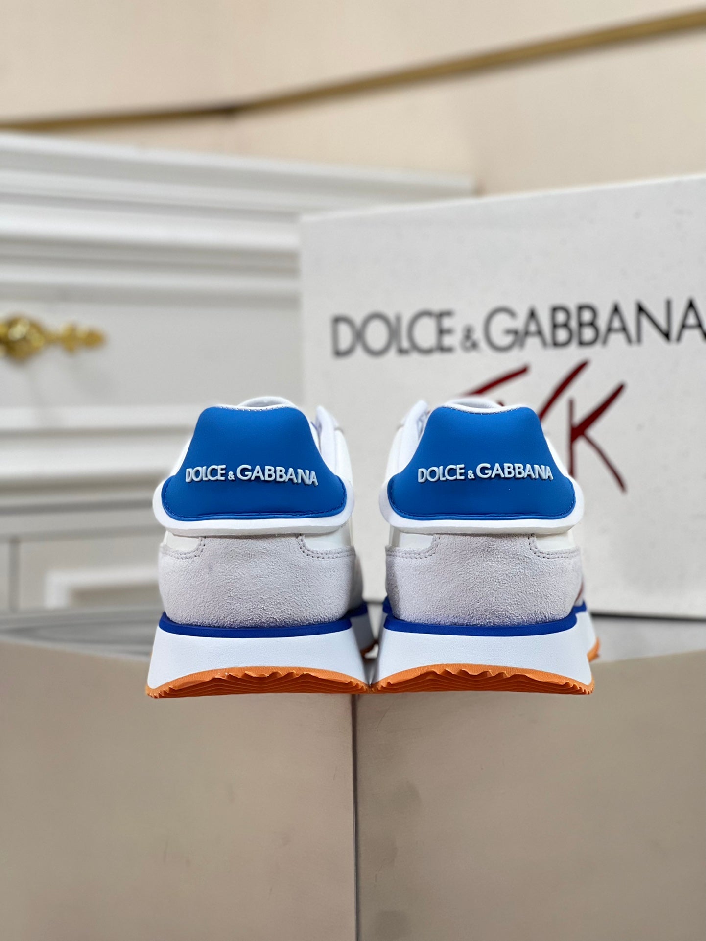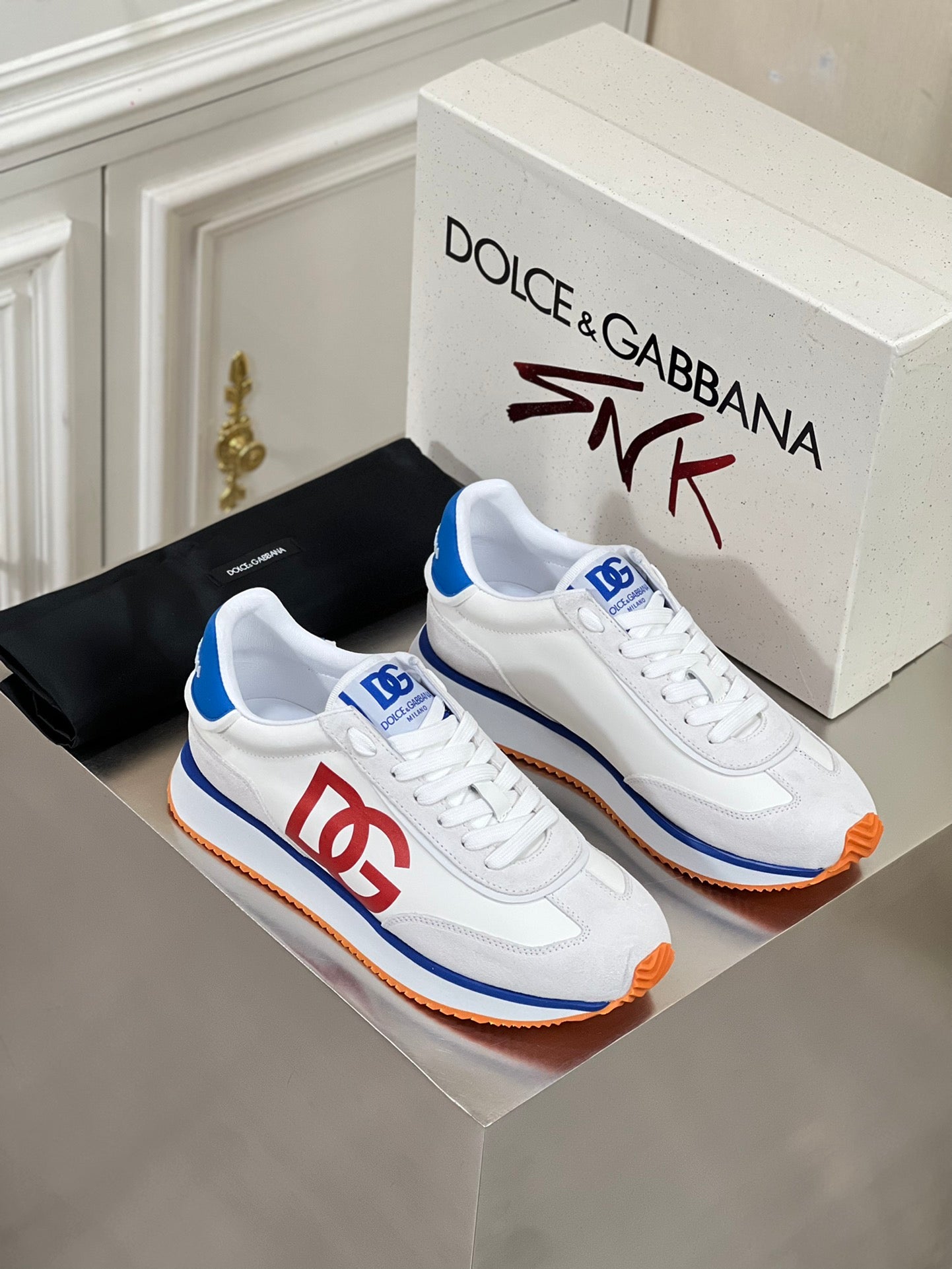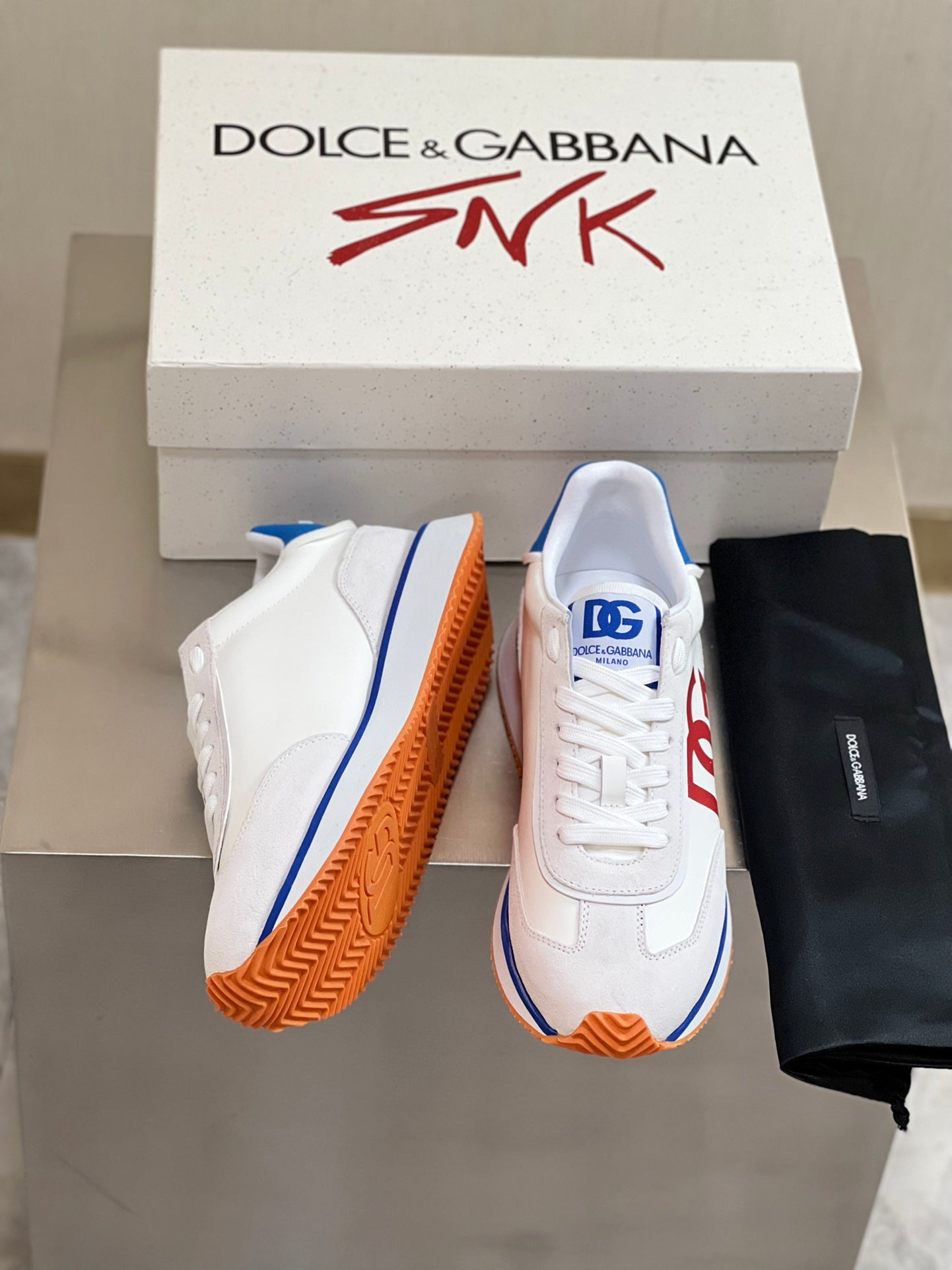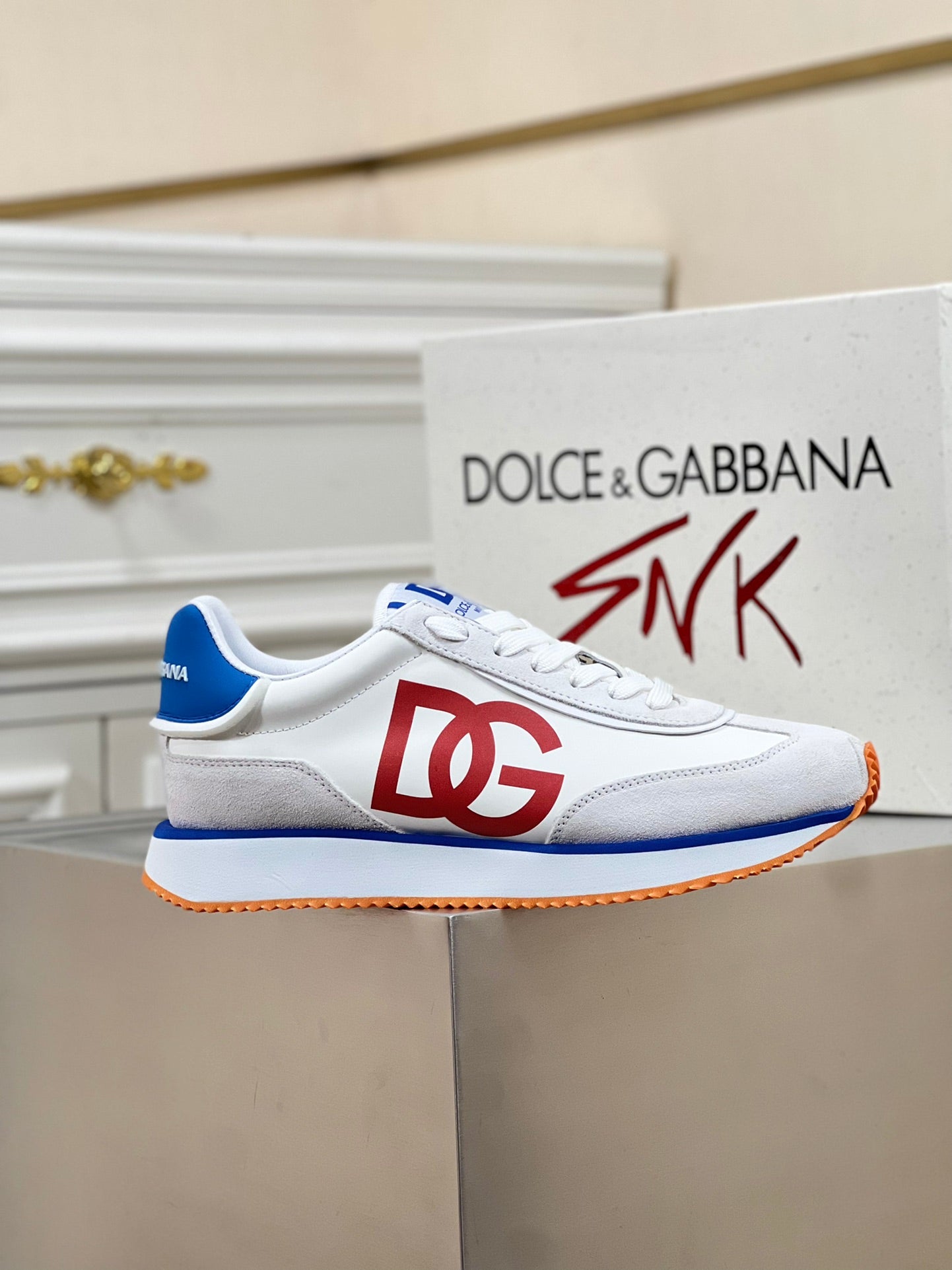 Introducing the Dolce & Gabbana Men's Lace-Up Leather Casual Sneakers, part of the early spring 2024 collection. Crafted from premium imported suede cowhide and enhanced with waterproof fabrics, these sneakers feature a modern color-block design that effortlessly elevates your wardrobe.