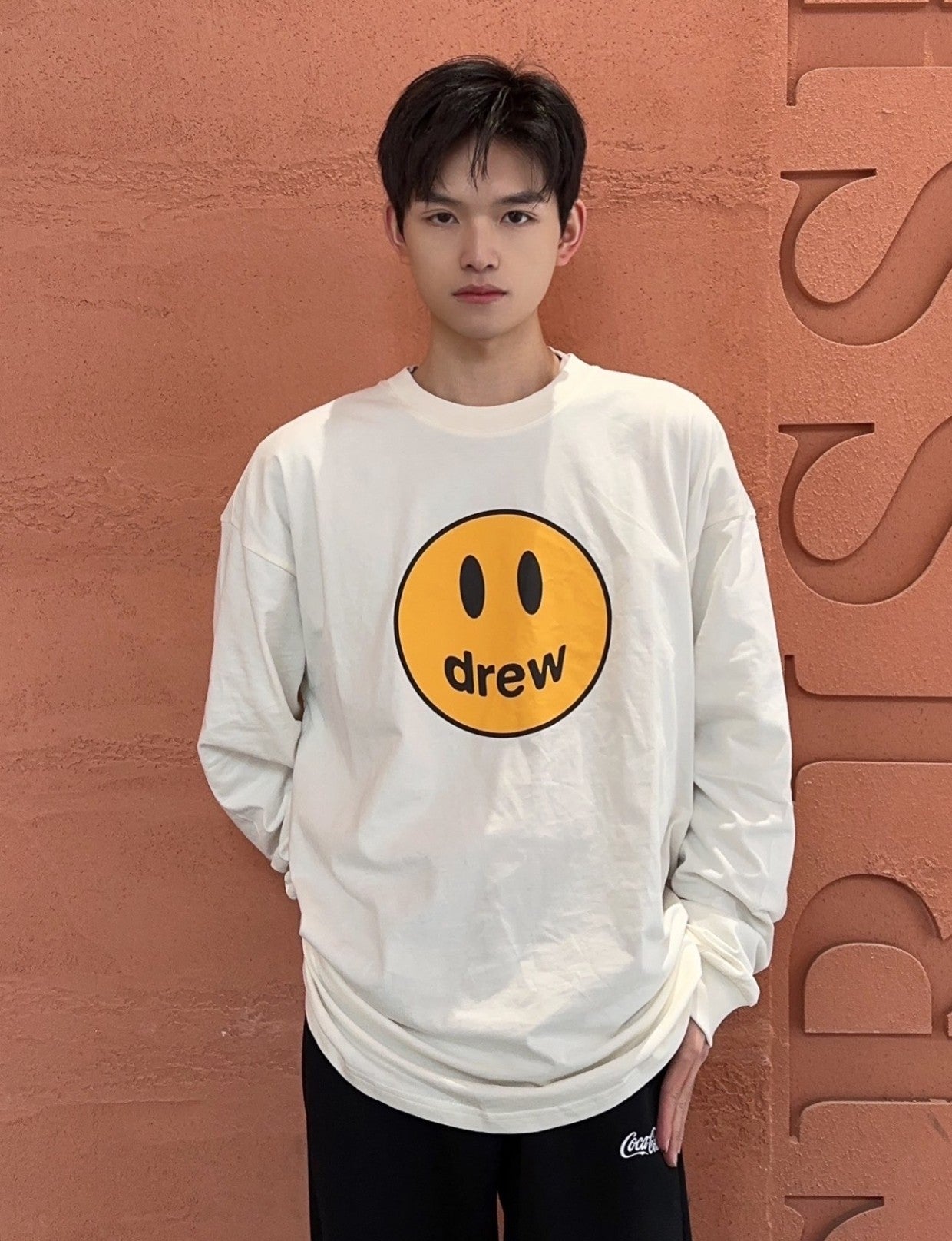 Drew Smiley Letters Long Sleeve T-Shirt - High-Quality Cotton