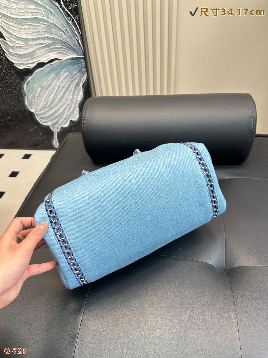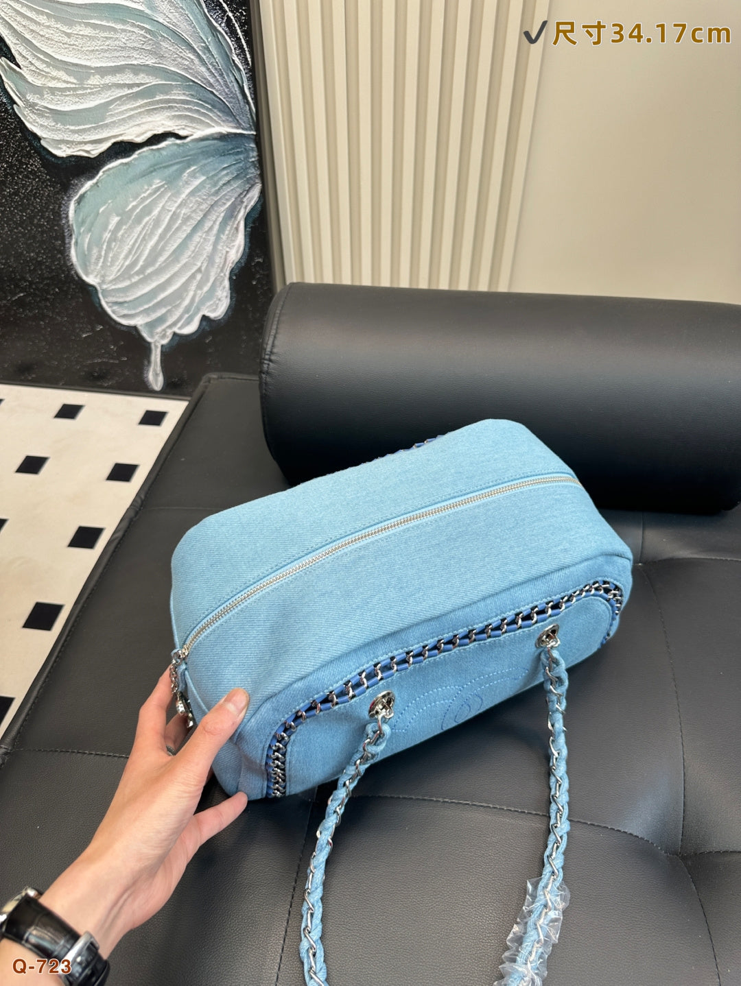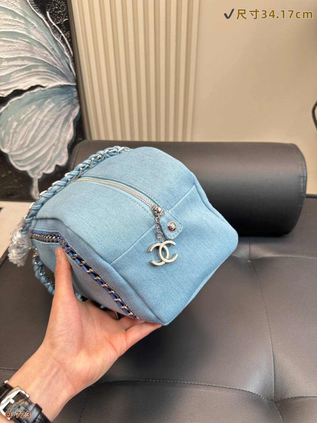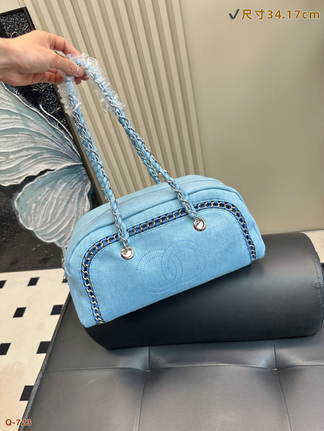 Elegant Chanel Washed Denim Bowling Handbag - Size 34.17cm