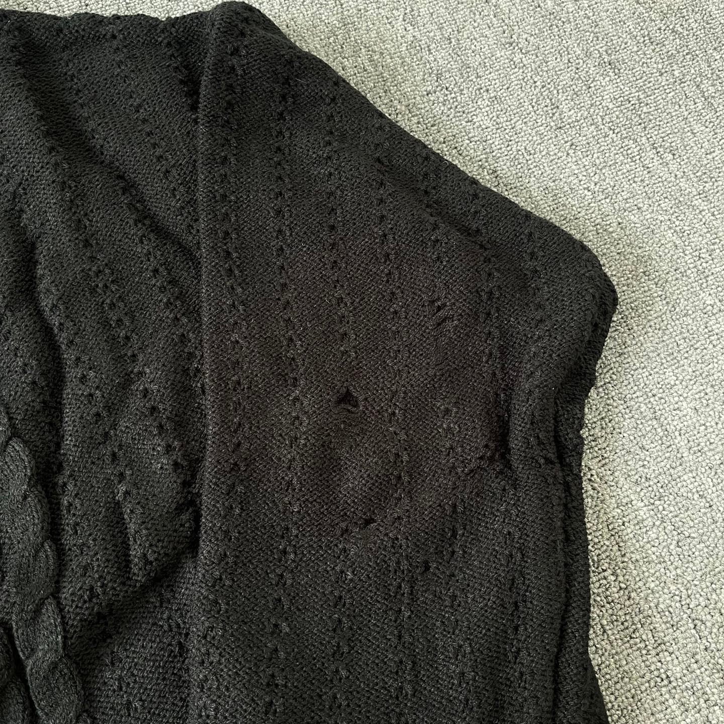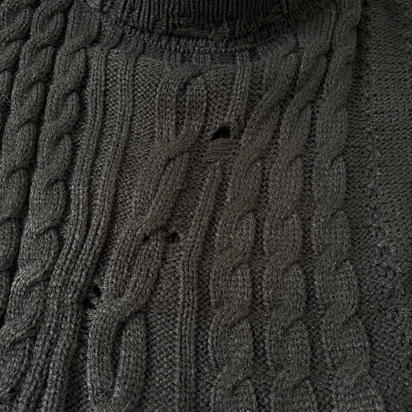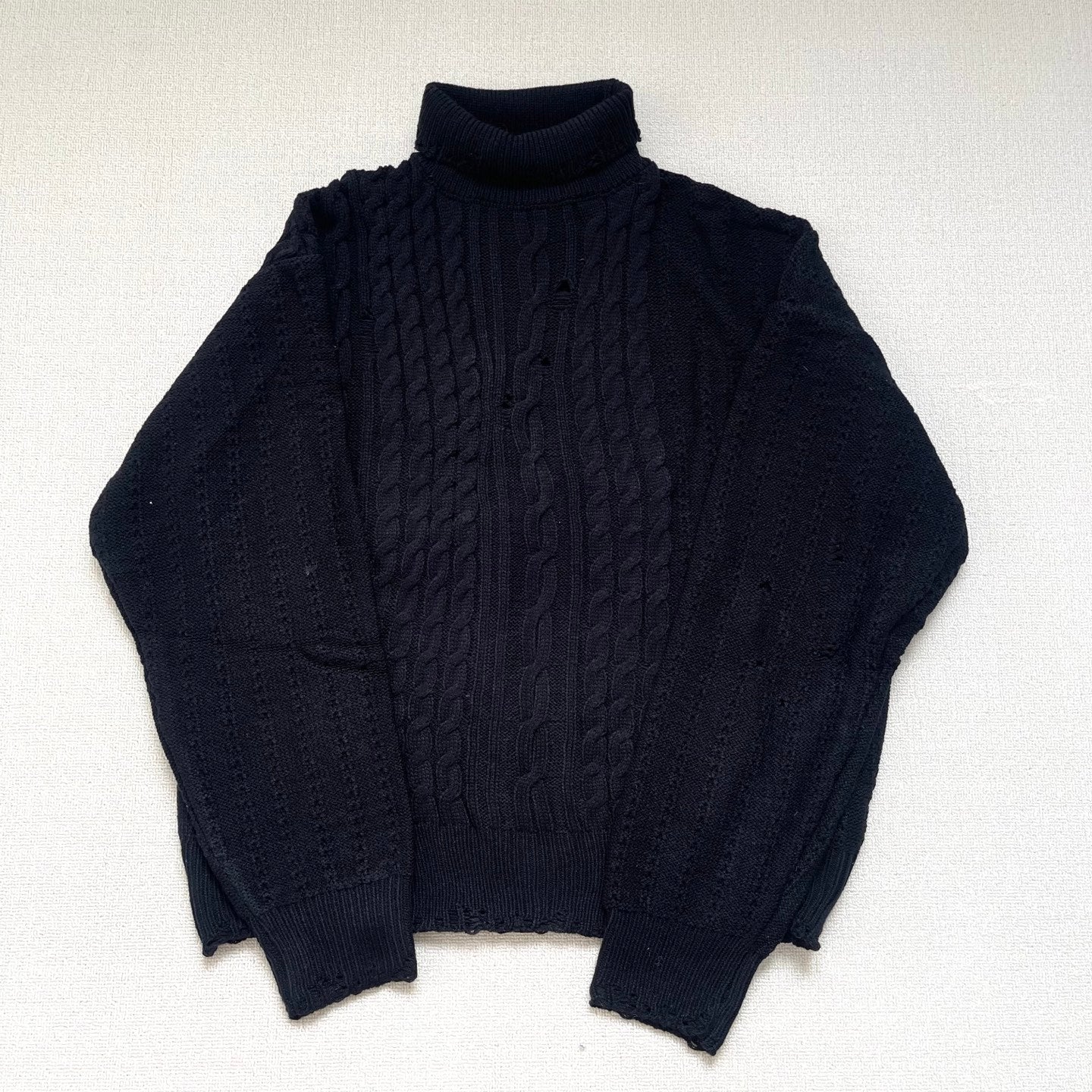 The sweater showcases a trendy twist pattern that enhances its wearability, while its regular fit flatters a variety of body shapes without being boxy. Available in classic black and sizes S-XL.