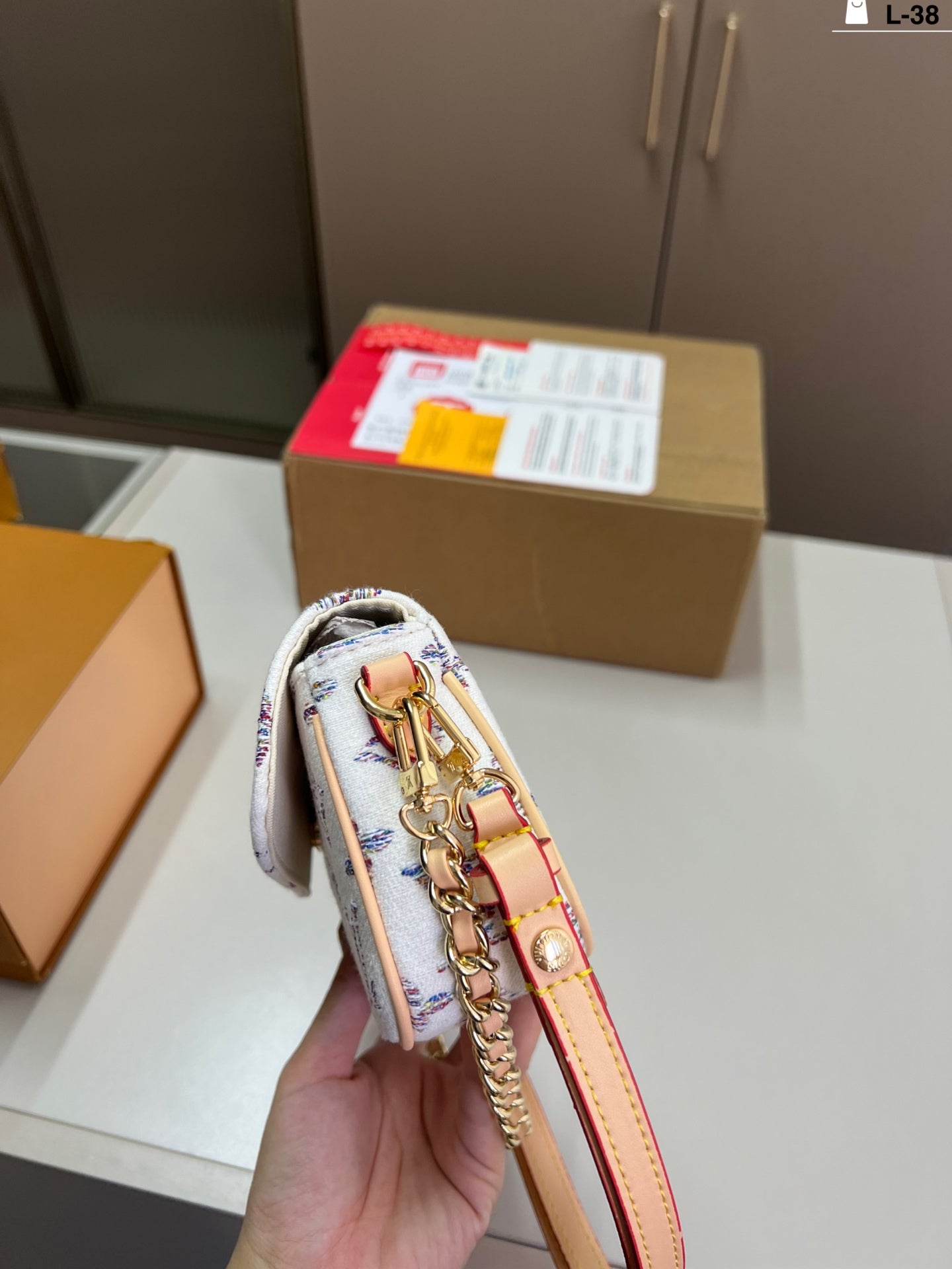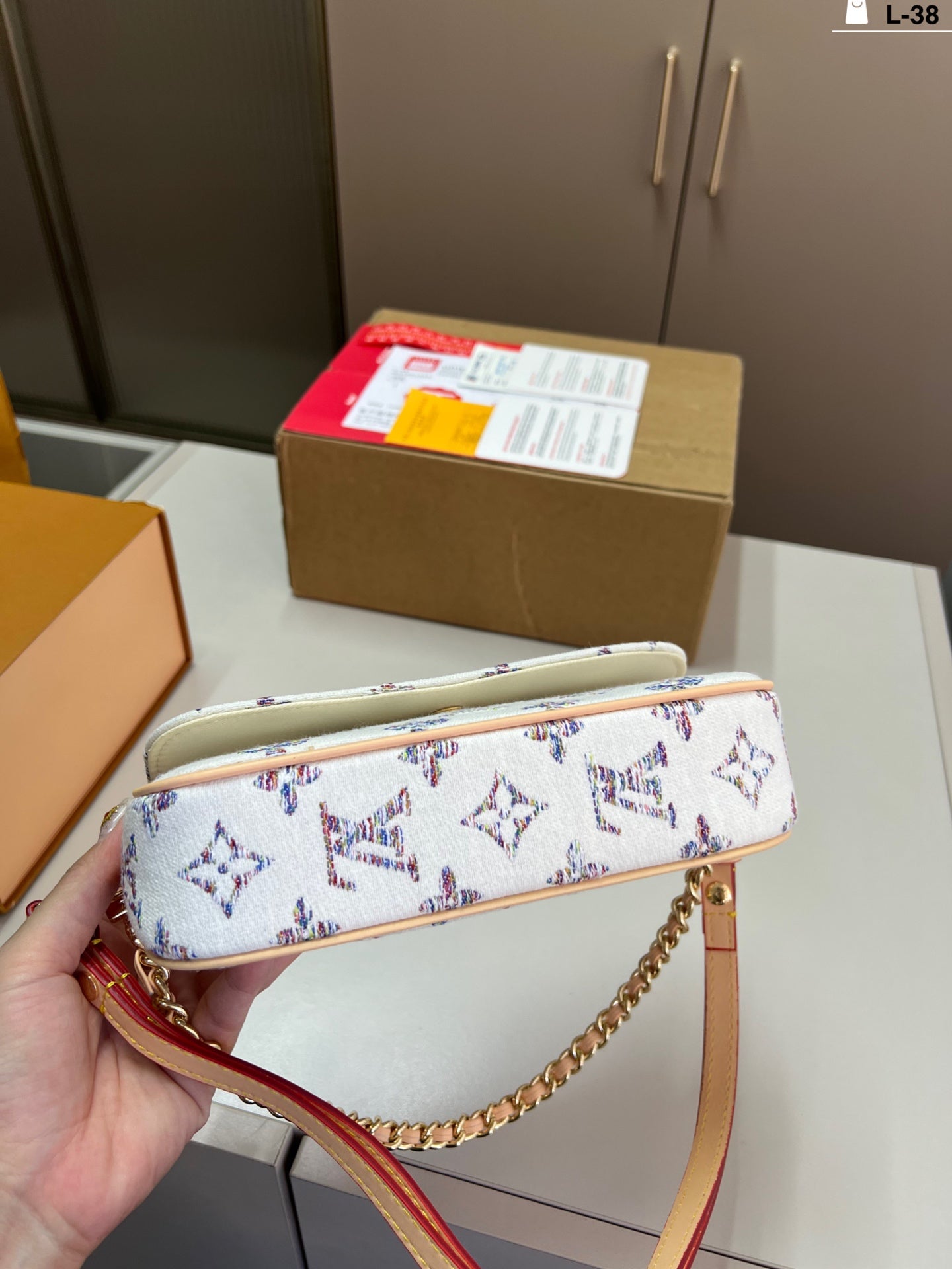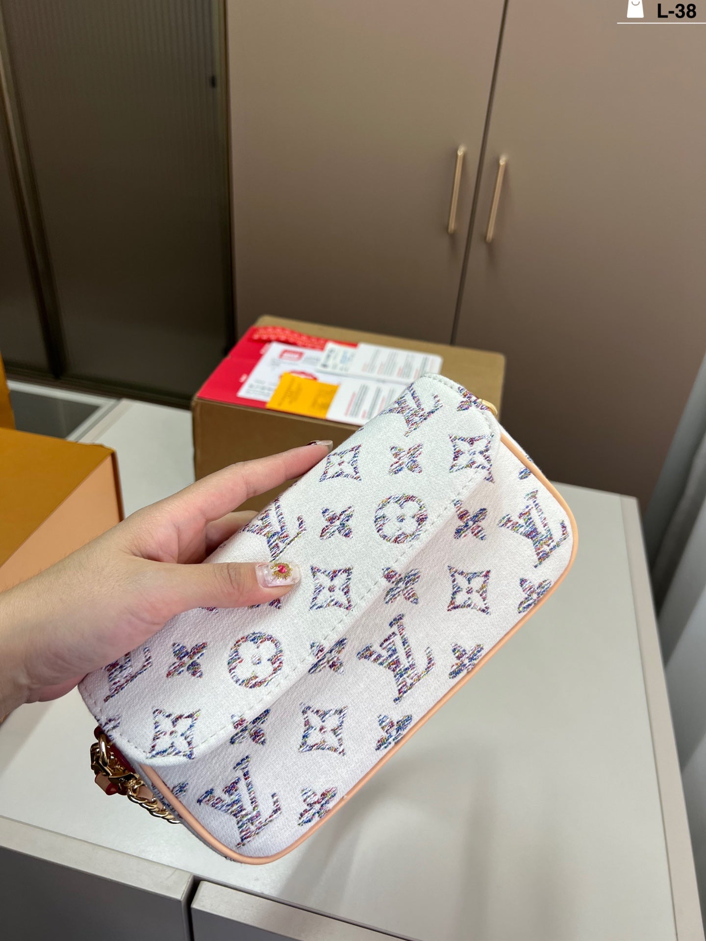 Introducing the LV Ivy Nautical Series Mahjong Bag, where charm meets sophistication. This uniquely shaped bag is not just cute; it radiates elegance, making it the perfect accessory for any occasion. Designed with a chic chain for convenience, this exquisite piece can be worn comfortably under the arm.