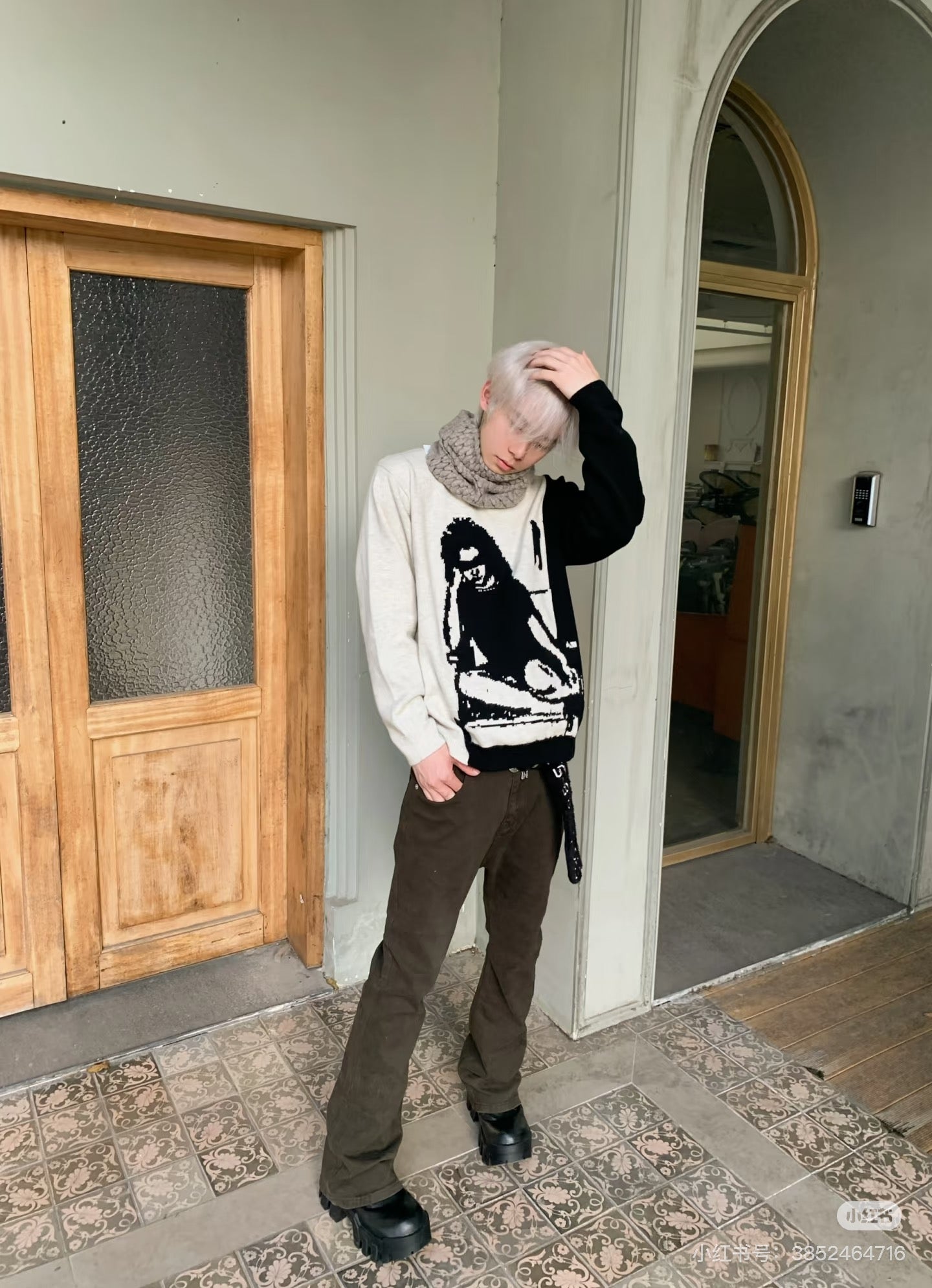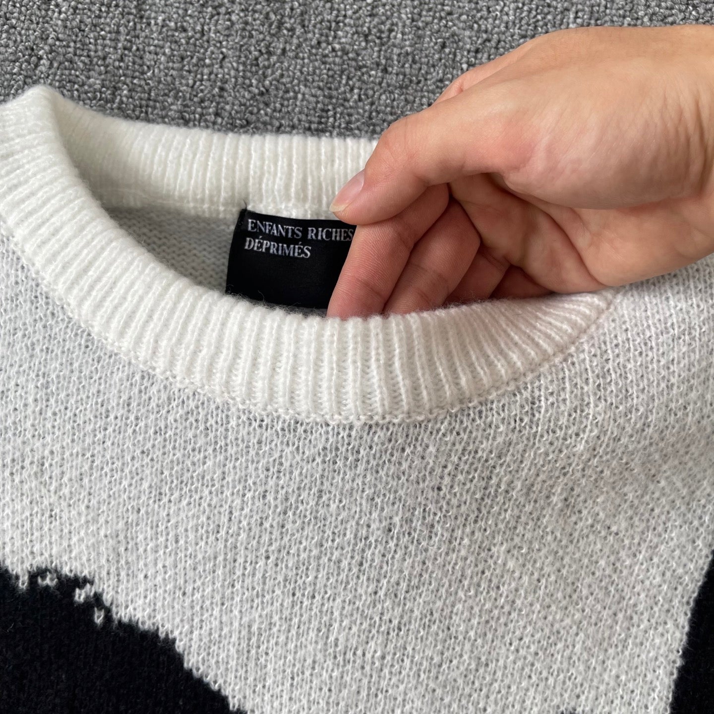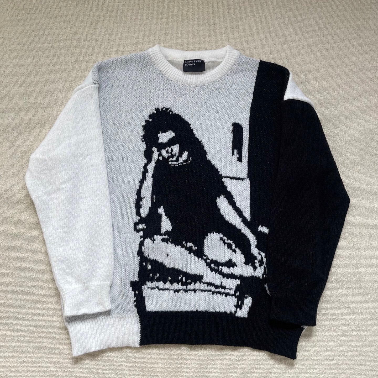 Elevate your wardrobe with the ENFANTS RICCHES DÉPRIMÉS (ERD) Portrait Crew Neck Sweater, designed for a stylish yet relaxed look. Crafted from a heavyweight blend of 50% wool and 50% acrylic, this sweater offers both warmth and comfort. Featuring unique contrasting color stitching and advanced woven jacquard technology—ensuring a high-quality finish that’s distinct from typical prints—this piece is perfect for those seeking individuality in their fashion.