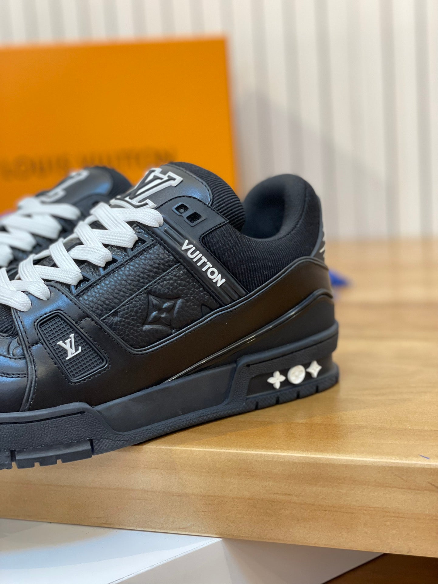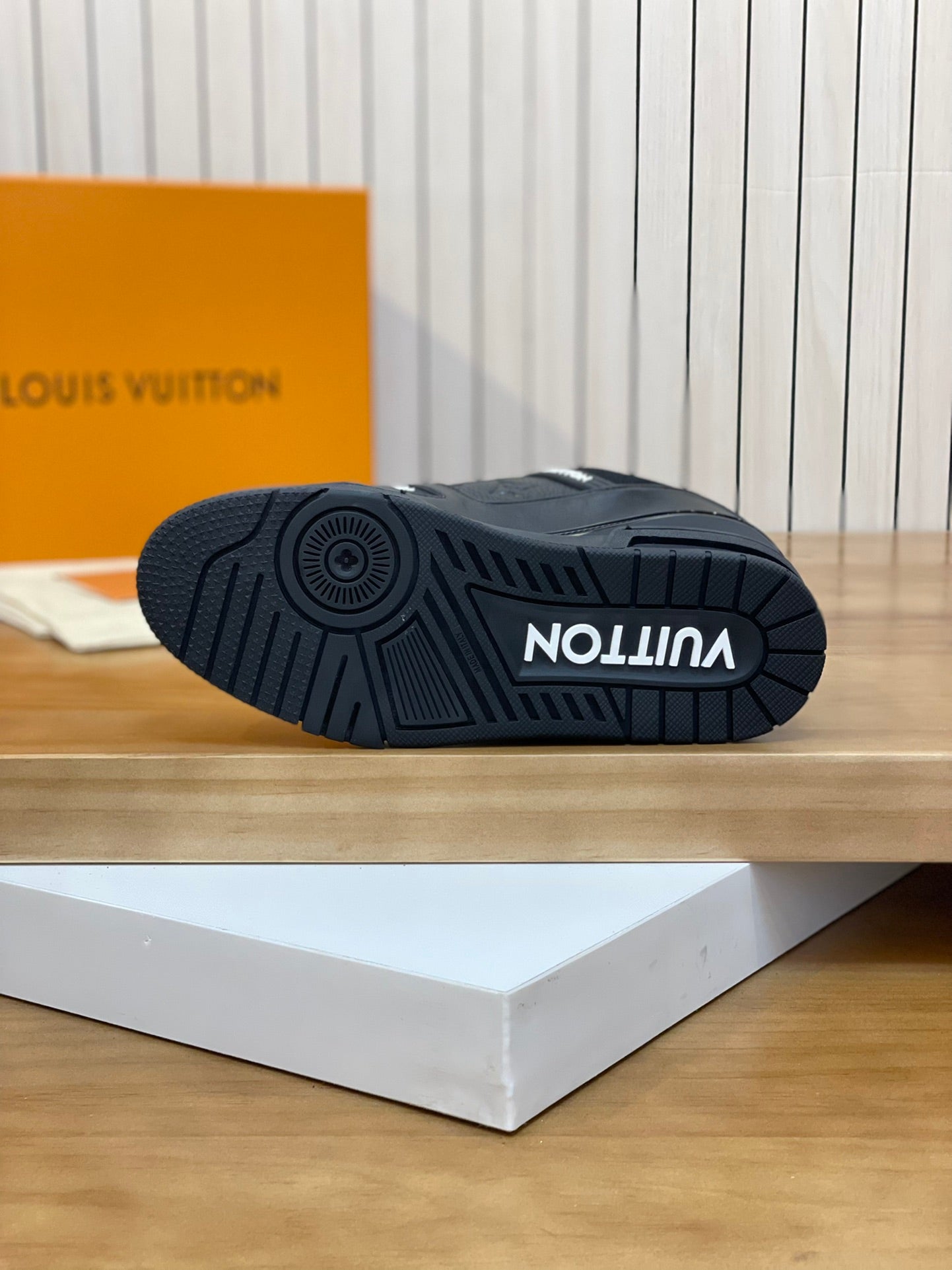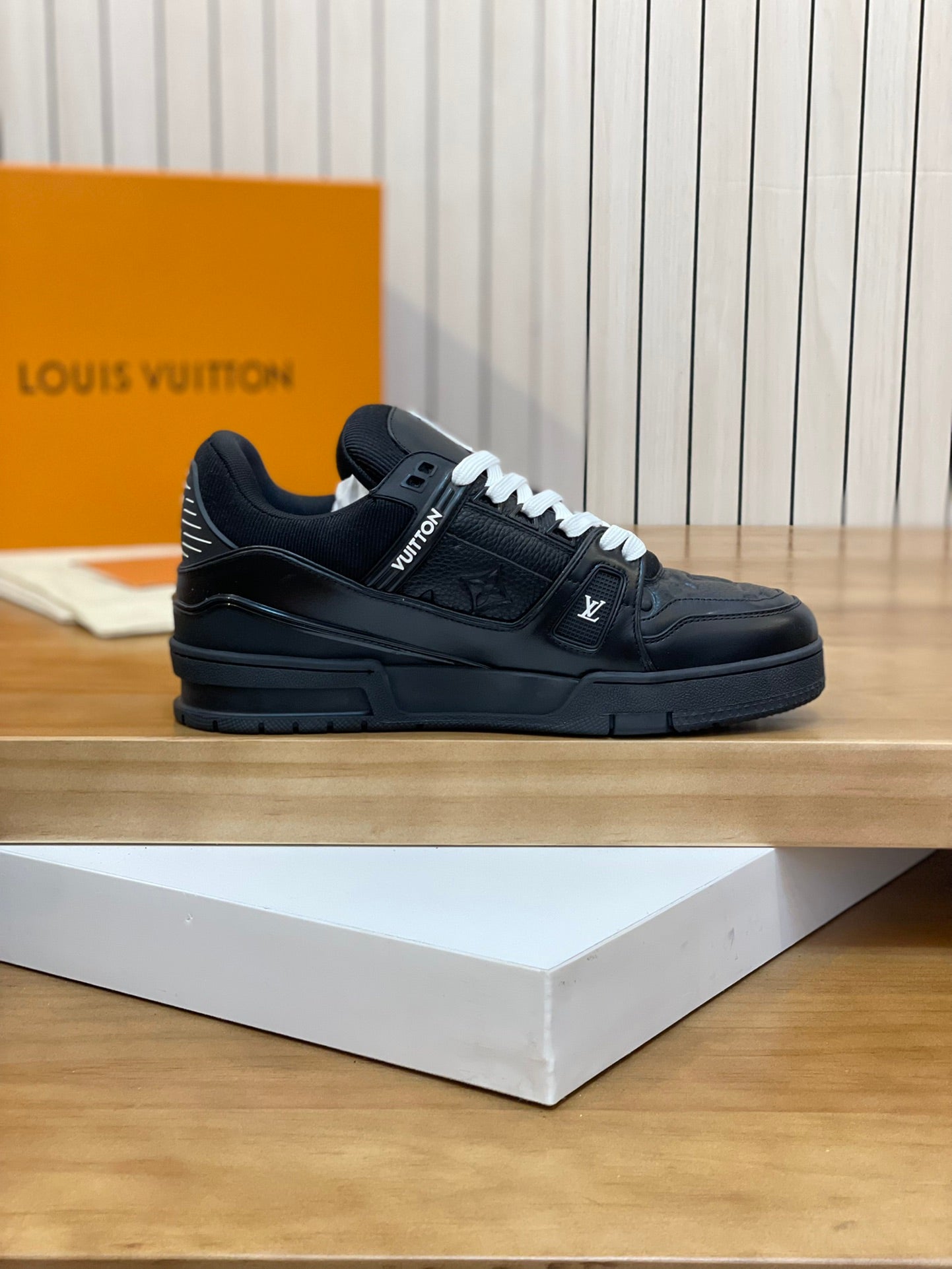 - **Exclusive Branding:** Features a custom Louis Vuitton logo and stylish shoelace row.