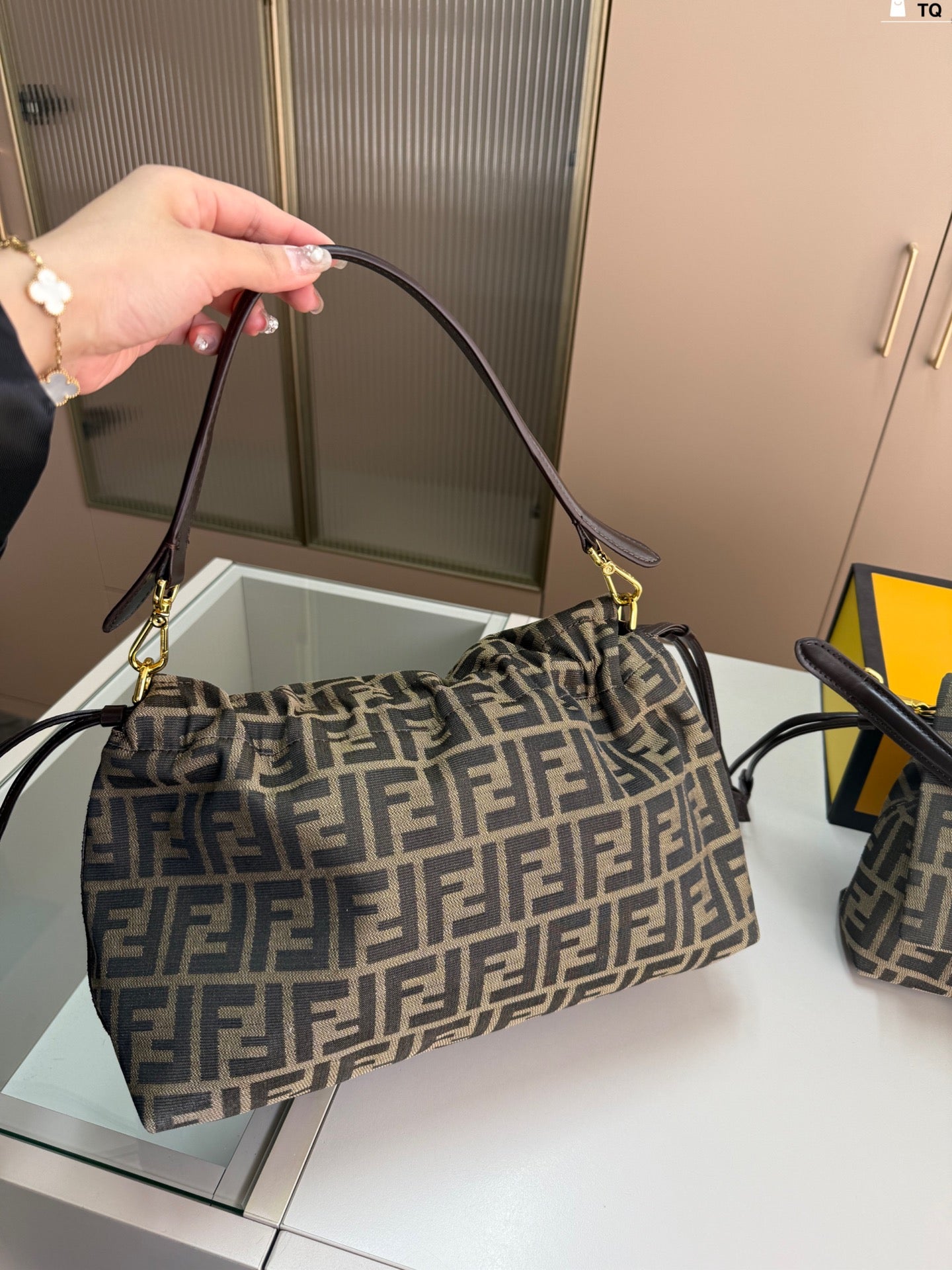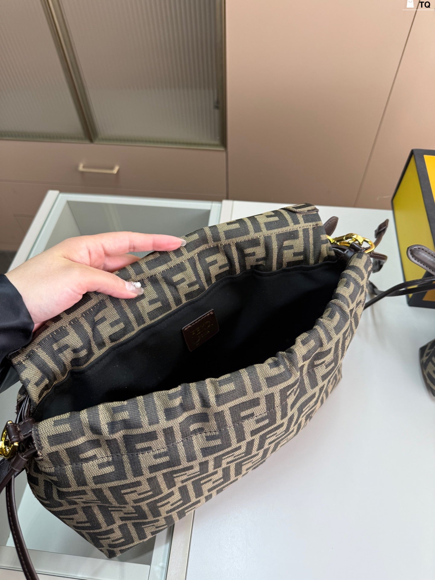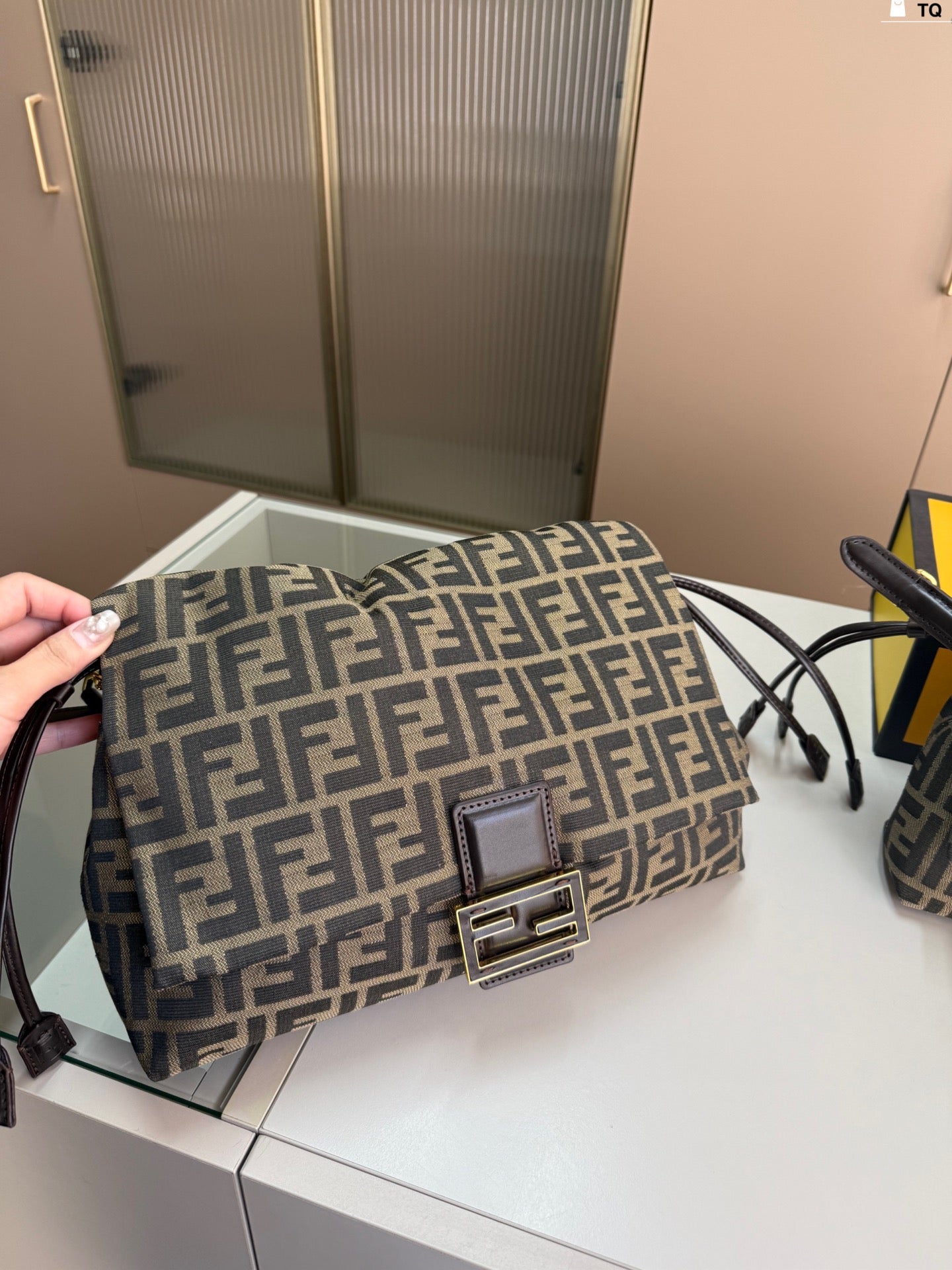 Introducing the latest Fendi Baguette Bag, a perfect fusion of elegance and functionality. Crafted with meticulous attention to detail, this stunning handbag can be effortlessly carried by hand or worn cross-body for versatility. The TQ size is designed to accommodate your essentials with dimensions of 26 x 15 cm (9.8 x 5.9 in) for the small bag and 33 x 18 cm (13 x 7.1 in) for the larger option. Make a statement wherever you go with this exquisite addition to your wardrobe.