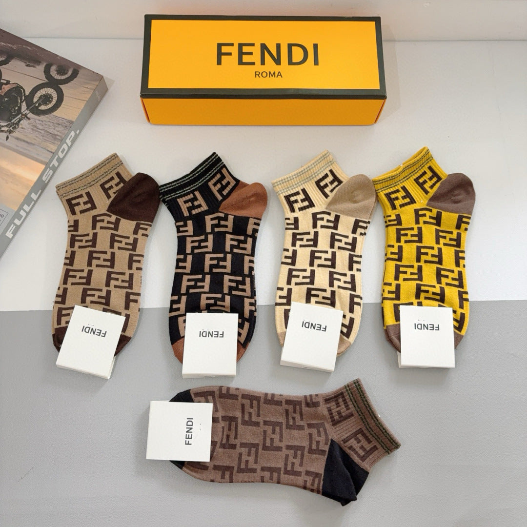 Fendi Classic Short Socks - Double F Design (5 Pairs)