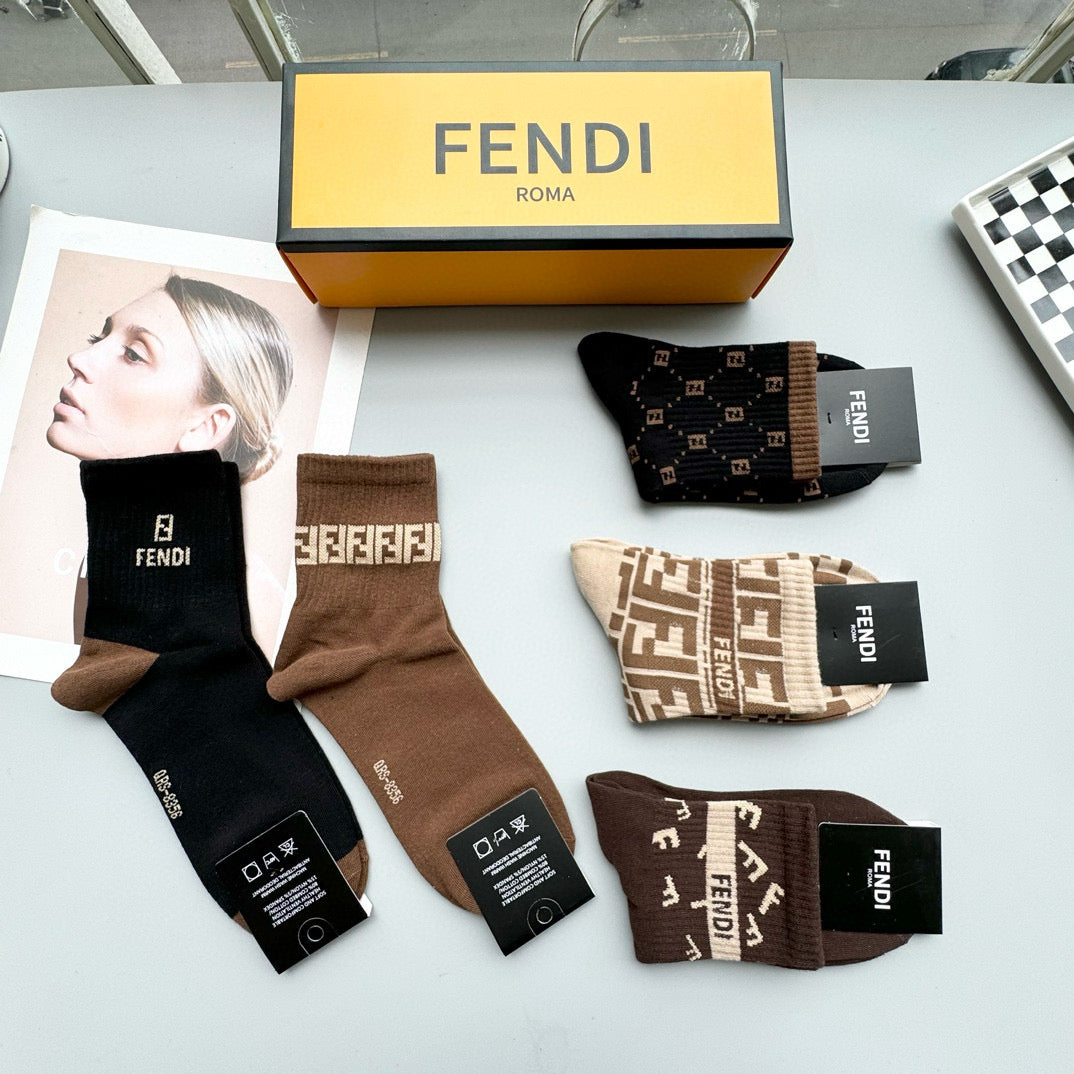 Fendi Double F Mid-Calf Socks for Men and Women - Autumn/Winter Collection