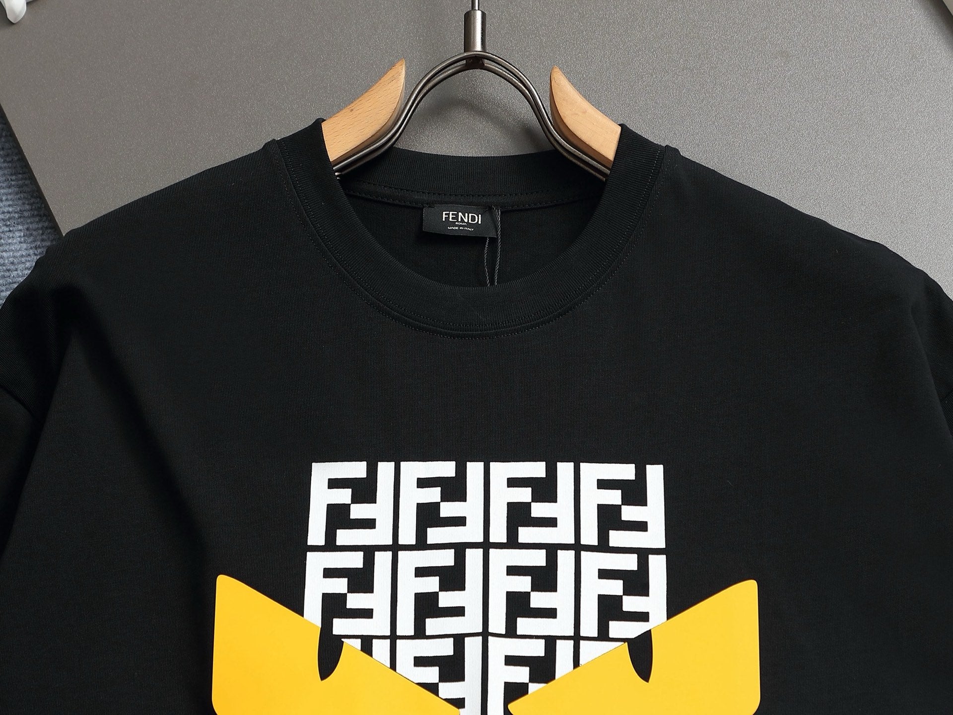 Elevate your wardrobe with the Fendi Little Monster Short-Sleeve T-Shirt. Crafted from premium 260g fabric, this stylish round neck tee features the iconic silicone eyes design and the distinctive FF printed logo, making it a standout piece for fashion enthusiasts. With its trendy and versatile appeal, this shirt effortlessly complements any outfit.