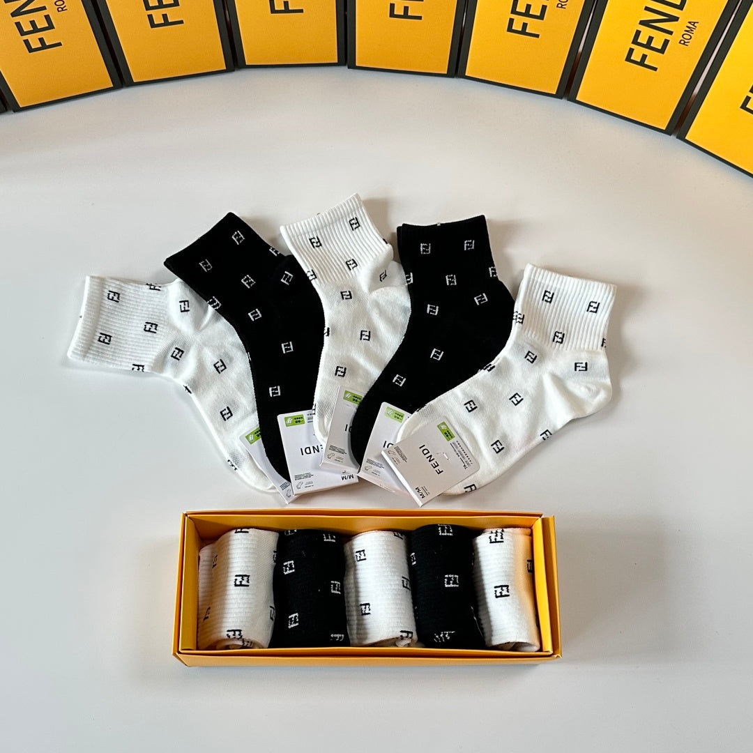 Fendi Mid-Tube Socks - Stylish 5-Pair Pack