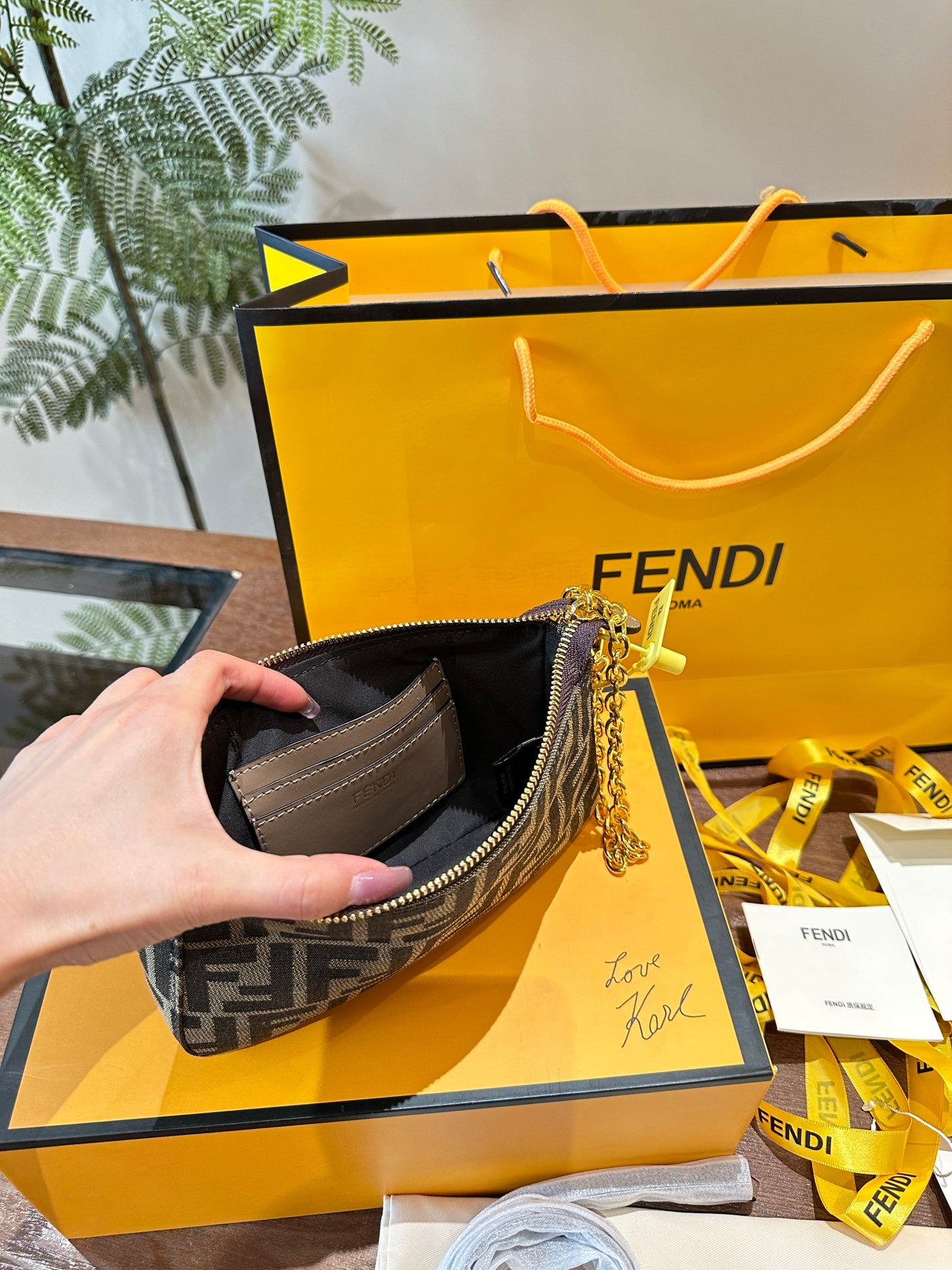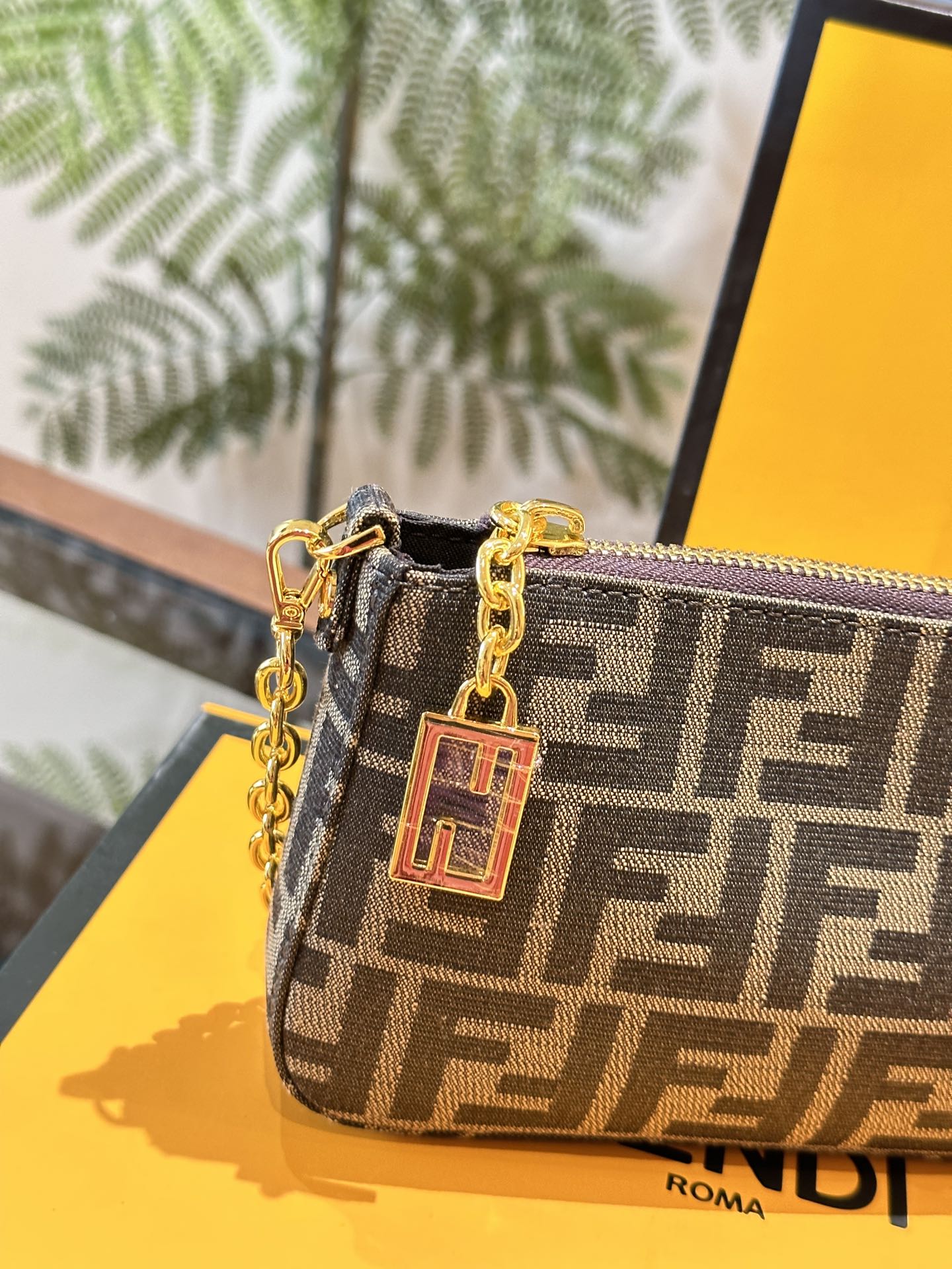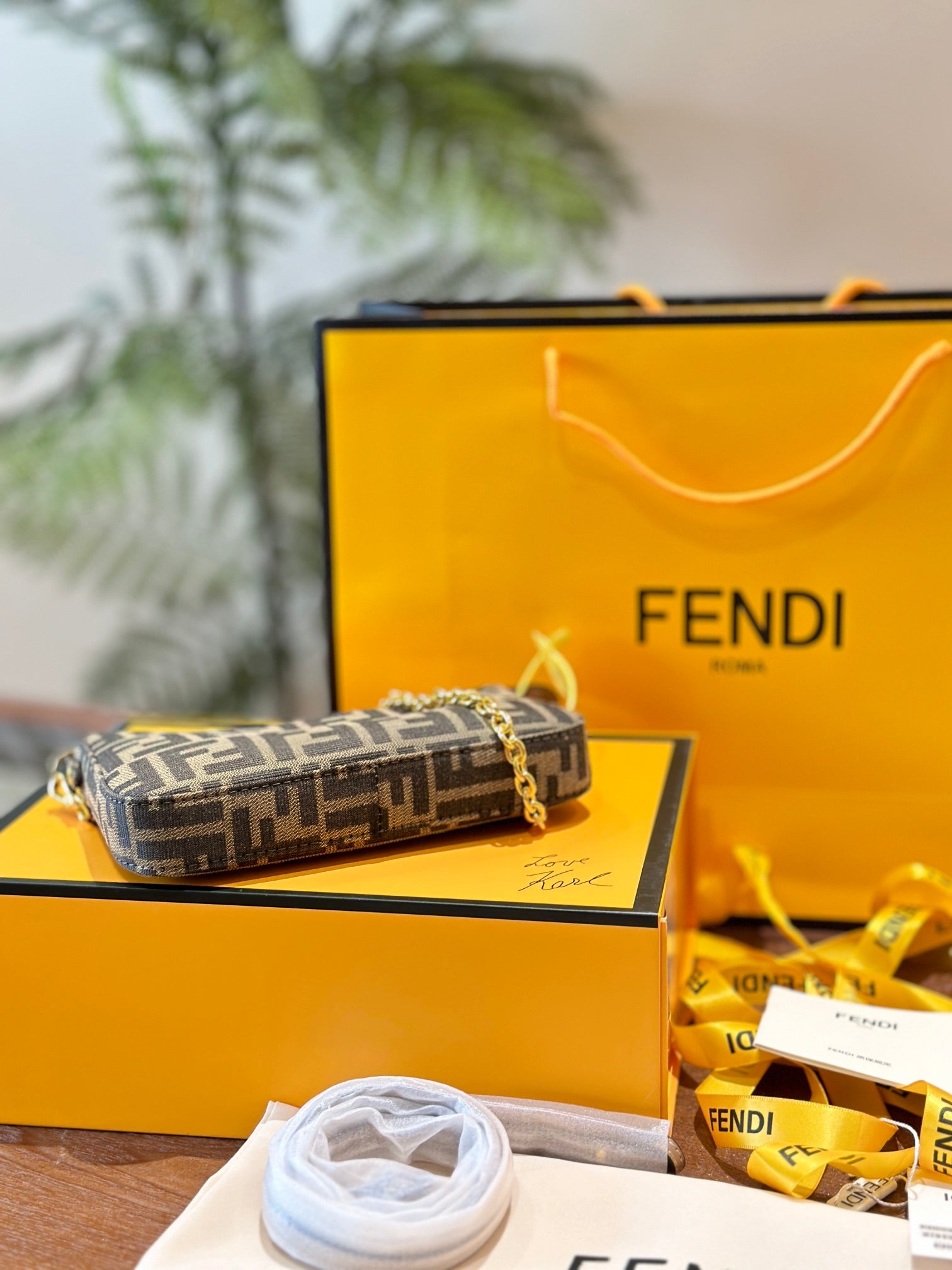 Introducing the Fendi Versatile Cross-Body Bag, a stylish and practical accessory that effortlessly combines fashion with functionality. This affordable piece from Fendi is designed to solve the common issue of traditional bags, featuring a convenient chain for under-the-arm wear and a leather shoulder strap for cross-body use.