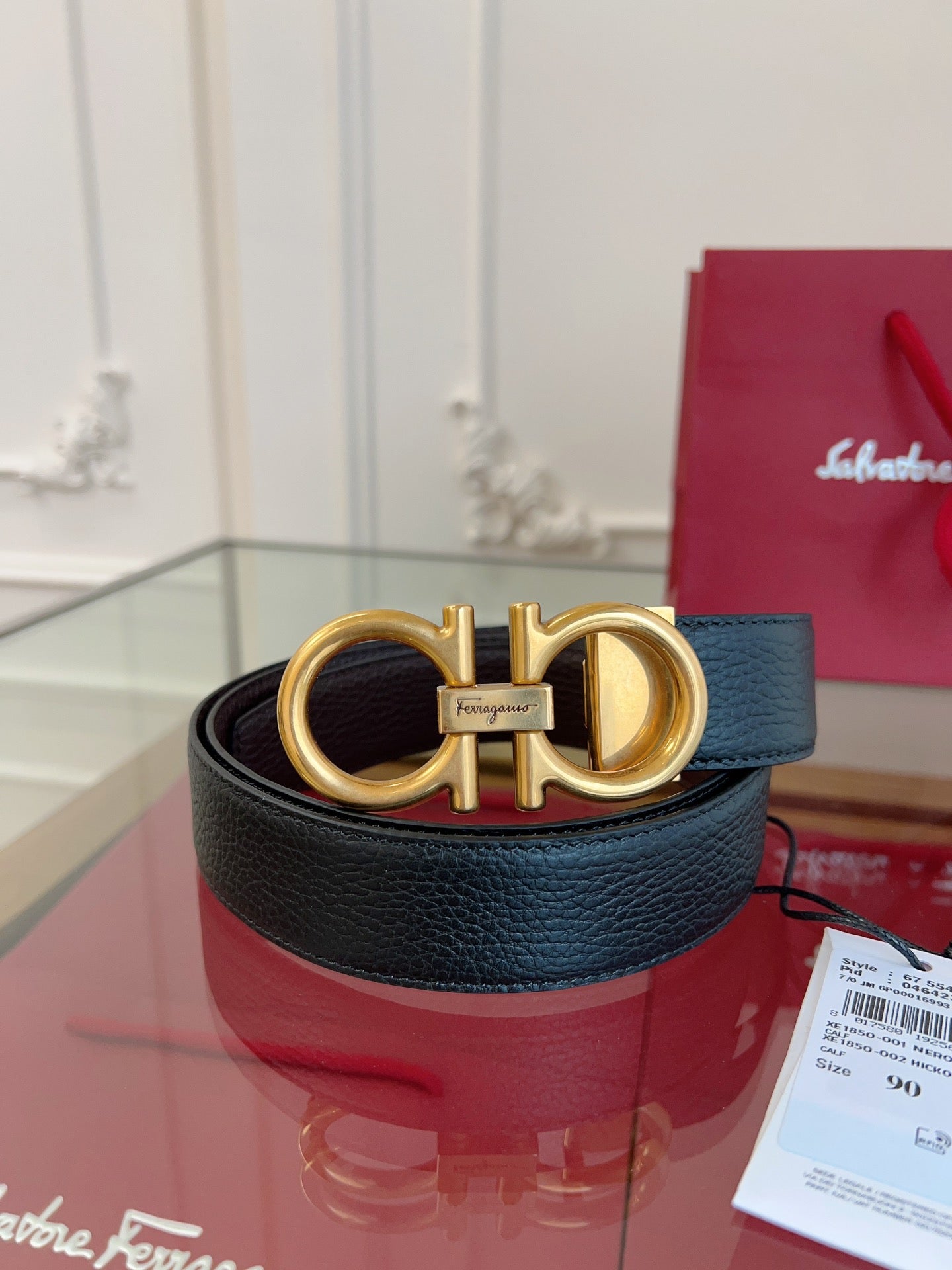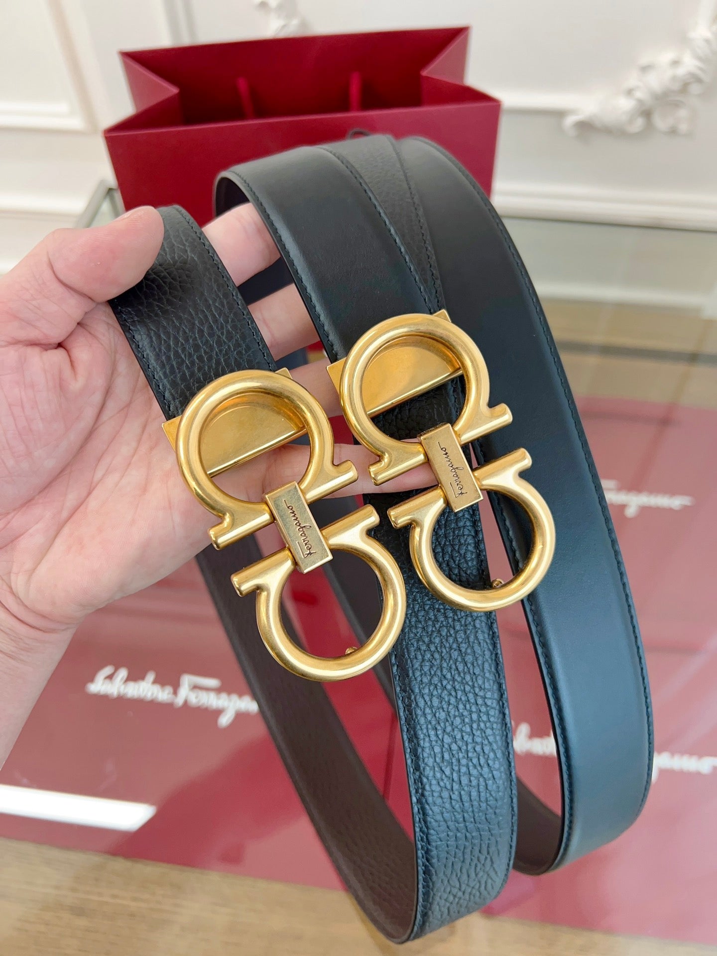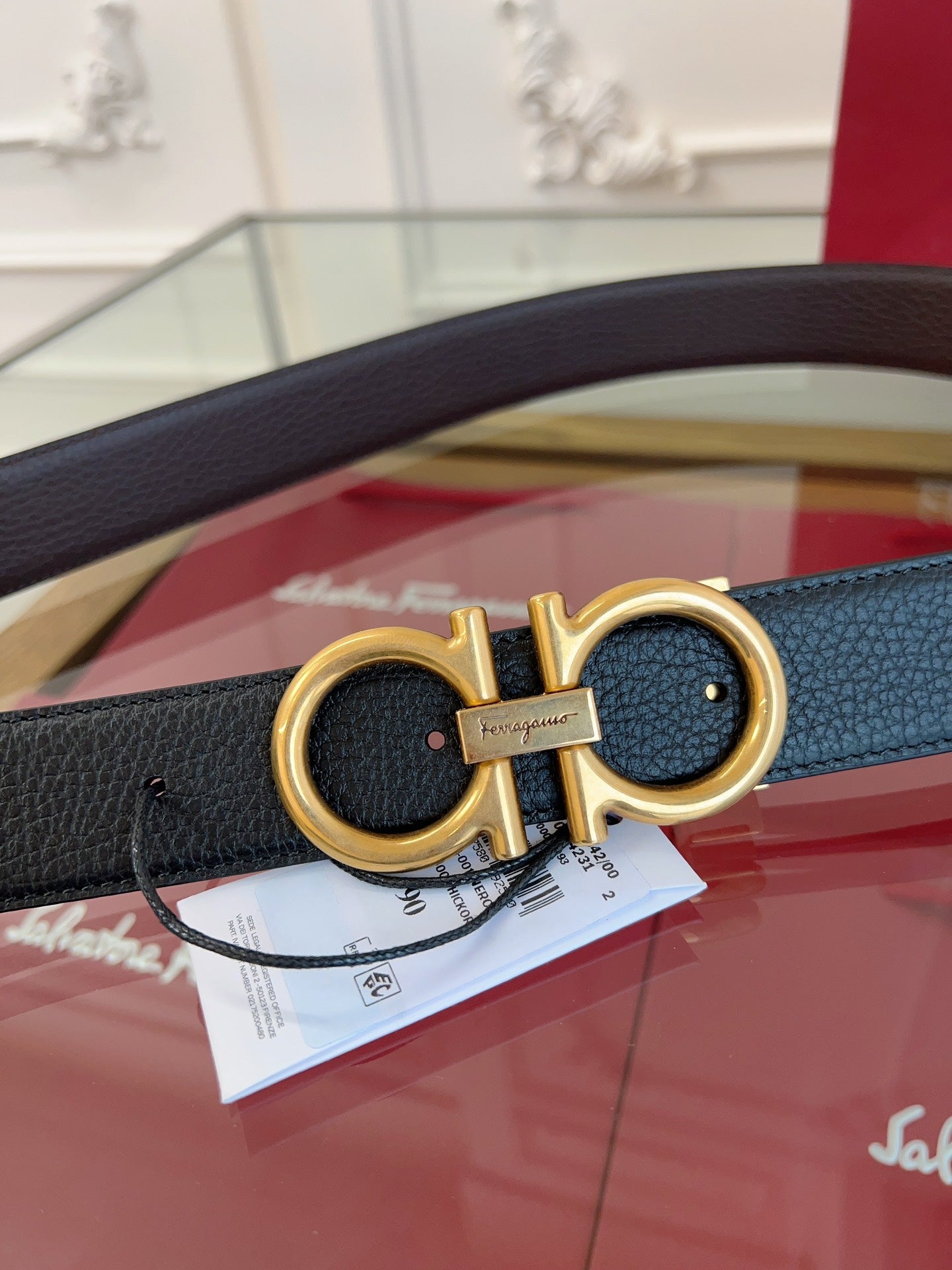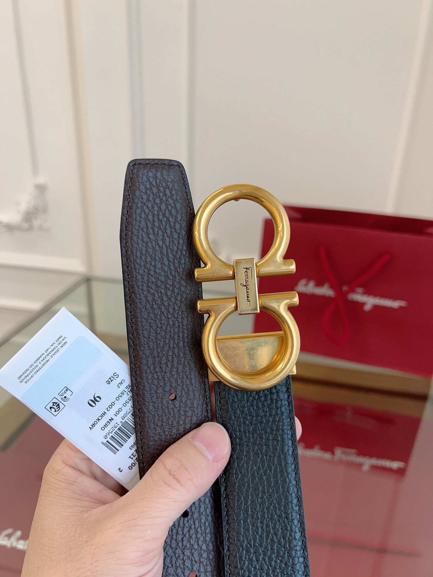 Elevate your style with the Ferragamo Men's Double-Sided Cowhide Belt, designed for the modern gentleman. This advanced custom-made belt features high-quality imported cowhide, allowing you to effortlessly switch between two sophisticated looks. With a width of 3.5 cm, the belt combines classic fashion with contemporary flair. Its premium tail clip buckle adds a touch of elegance, while the length can be easily adjusted for a perfect fit. Experience luxury materials and timeless design that complements any outfit. Full packaging included.