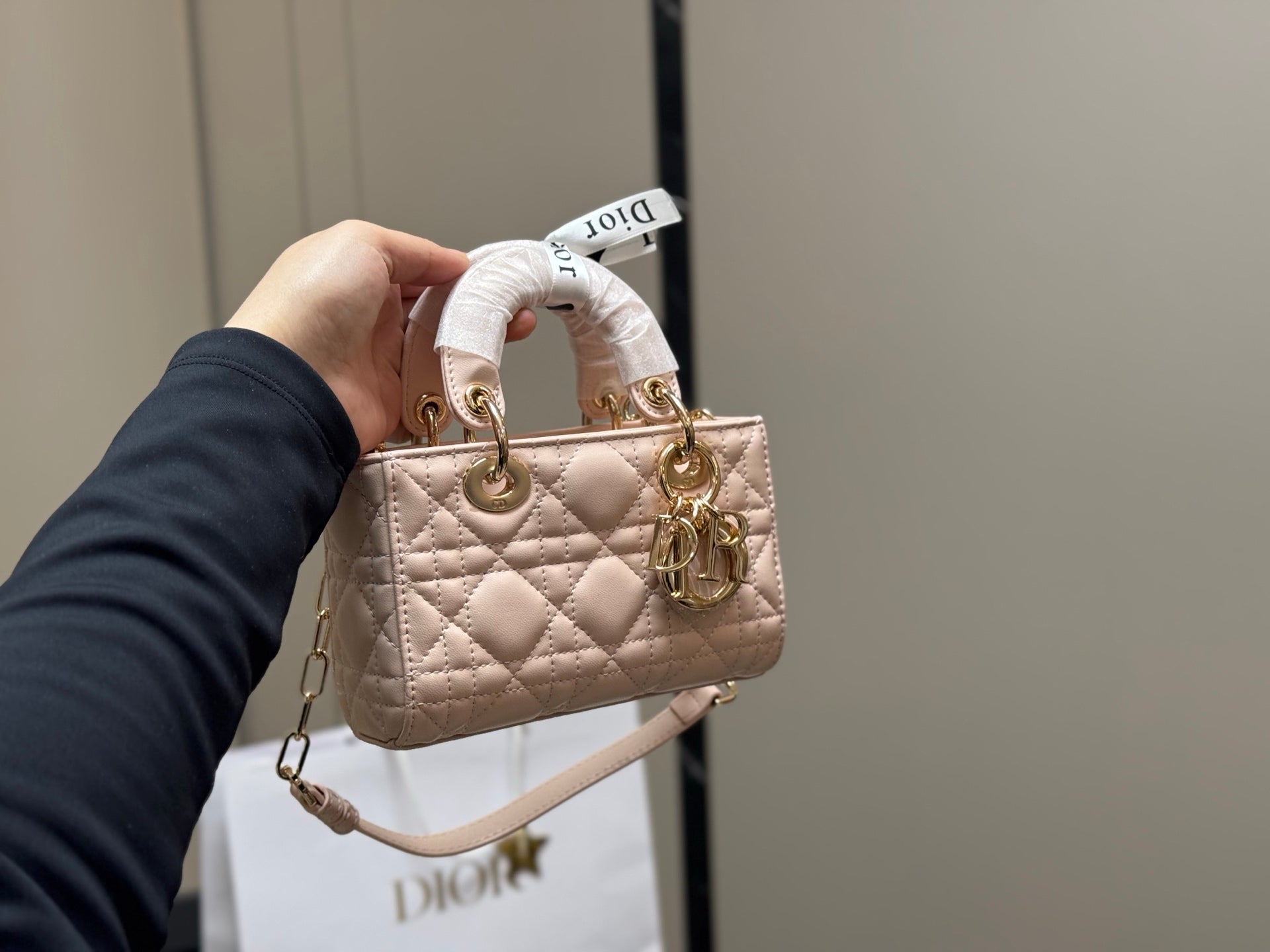 Discover the elegance of the Foldable Dior Lady Sheepskin Horizontal Princess Diana Bag. This chic accessory features a unique sheepskin pattern that embodies luxury and sophistication. Designed with two versatile straps, the shorter strap offers a stylish touch for everyday wear. Compact yet spacious with dimensions of 17cm, this bag is perfect for those seeking a personal statement piece. Elevate your wardrobe with this exquisite bag that beautifully blends functionality and fashion.