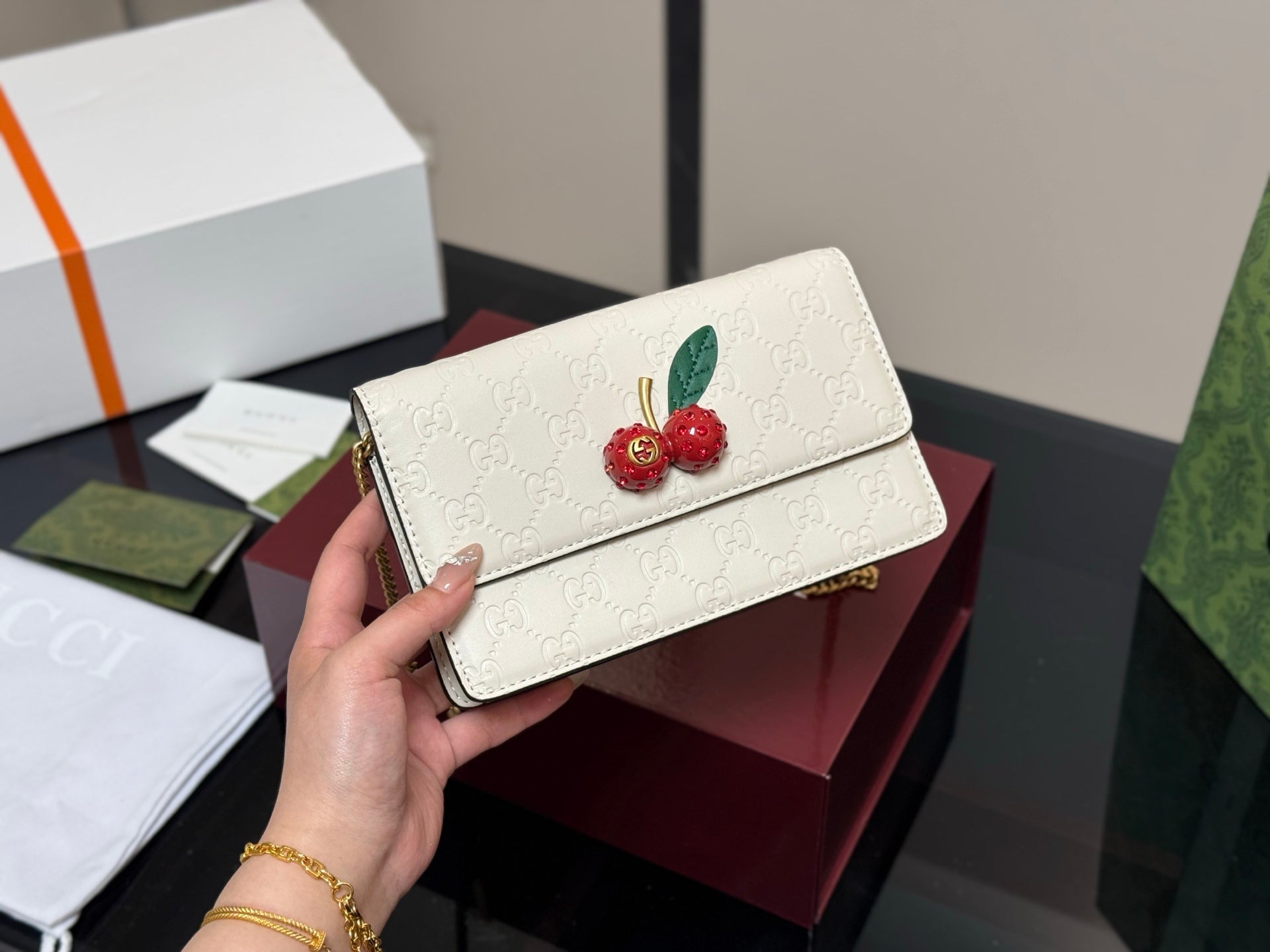 GG Cherry Chain Bag - Cute Customized Miniature Design