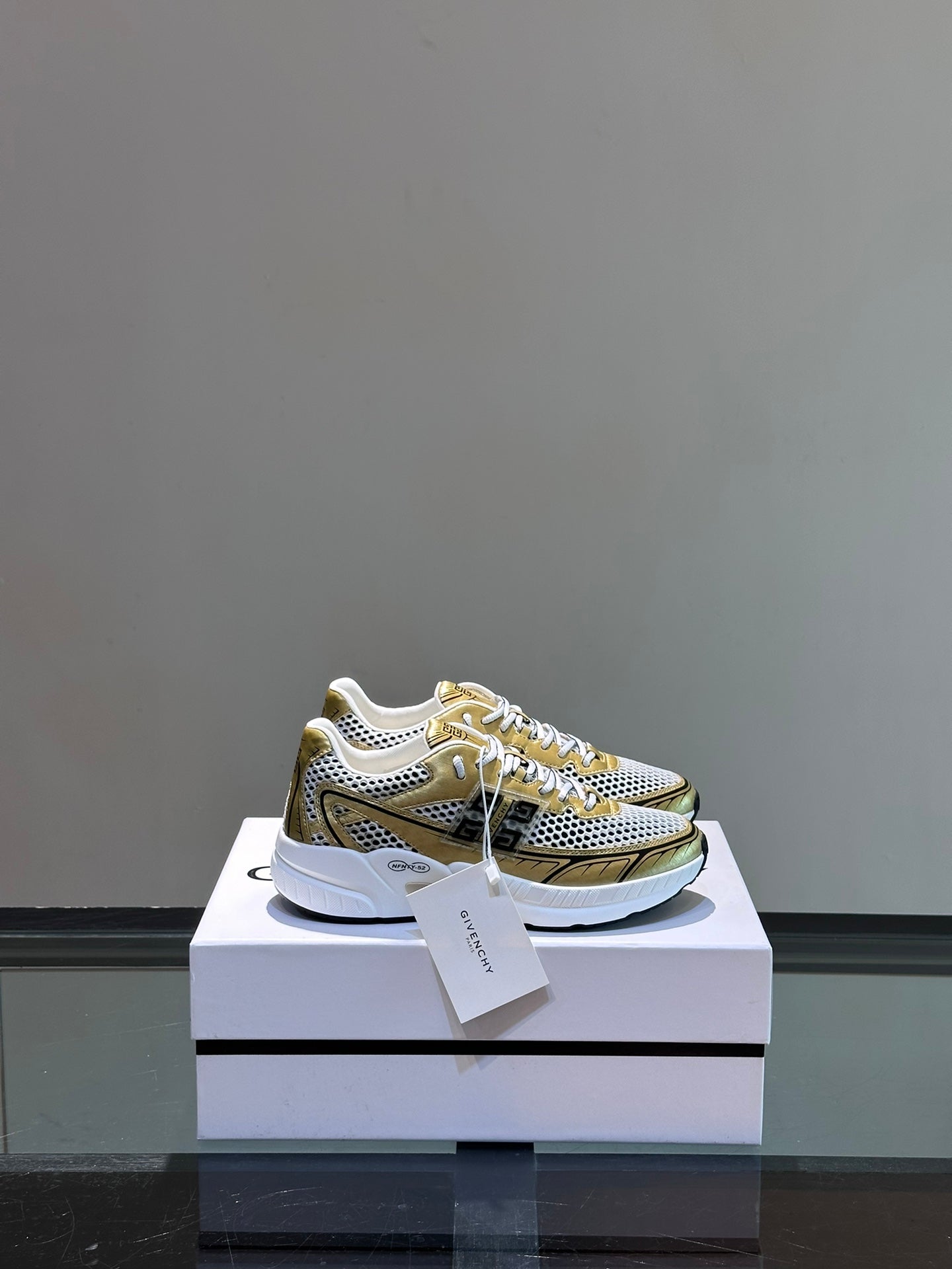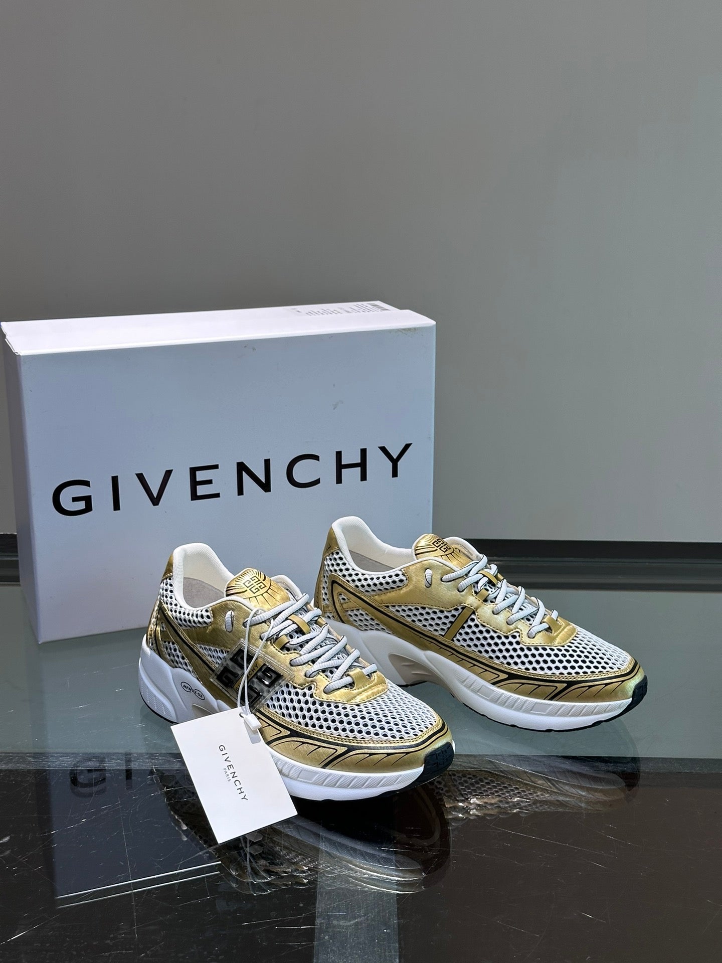 Discover the GIV 1 Men's Casual Sneakers, featuring a modern thick sole for added height and style. Crafted from premium calfskin and breathable fabric, these sneakers not only look great but also ensure lasting comfort. The design includes bold color blocking and is accented with a 4G logo and a striking three-dimensional GIVENCHY emblem. The lightweight TPU foam outsole provides excellent cushioning for all-day wear. Available in sizes 39-44, with customization options for size 38.45. Step up your fashion game with the perfect blend of comfort and sophistication.