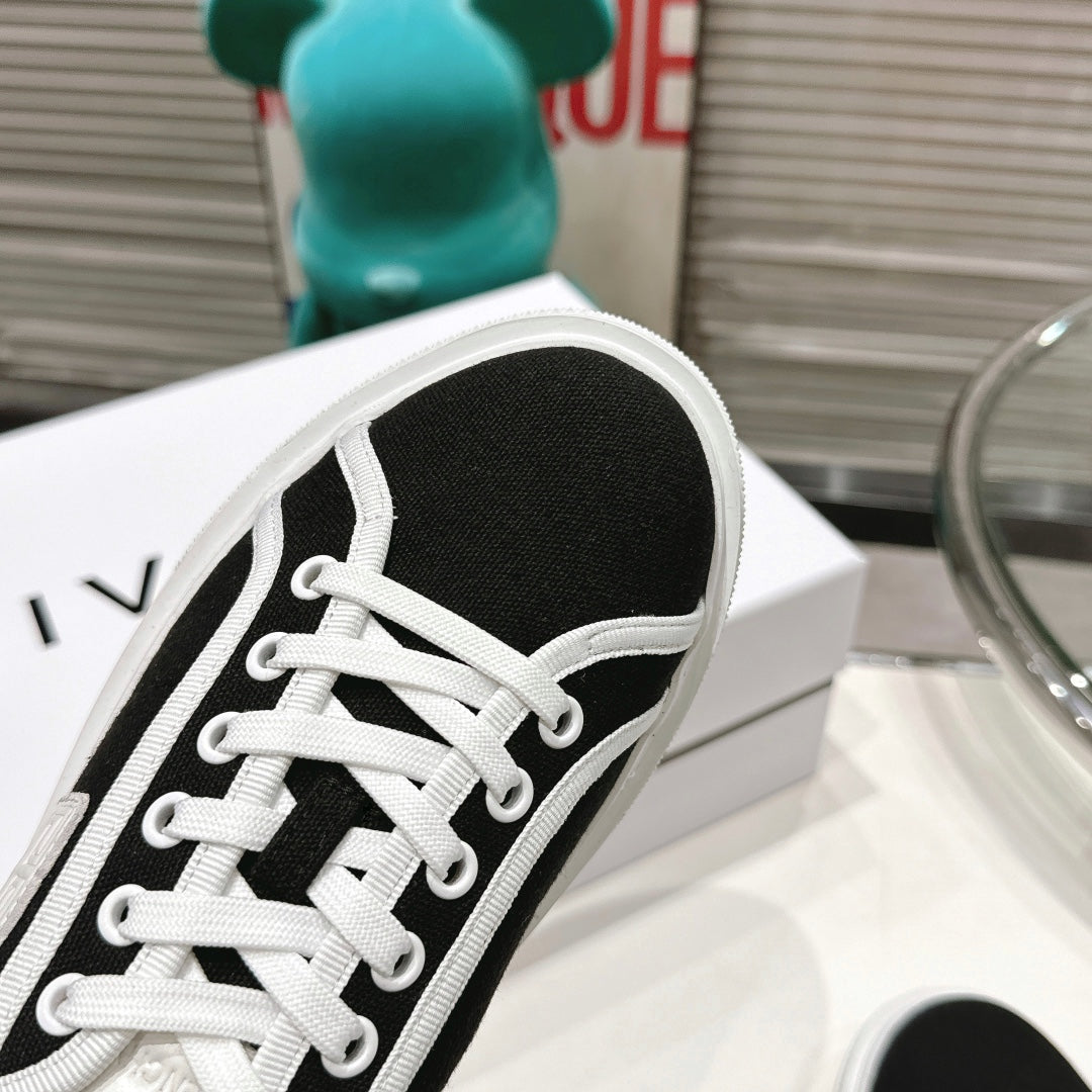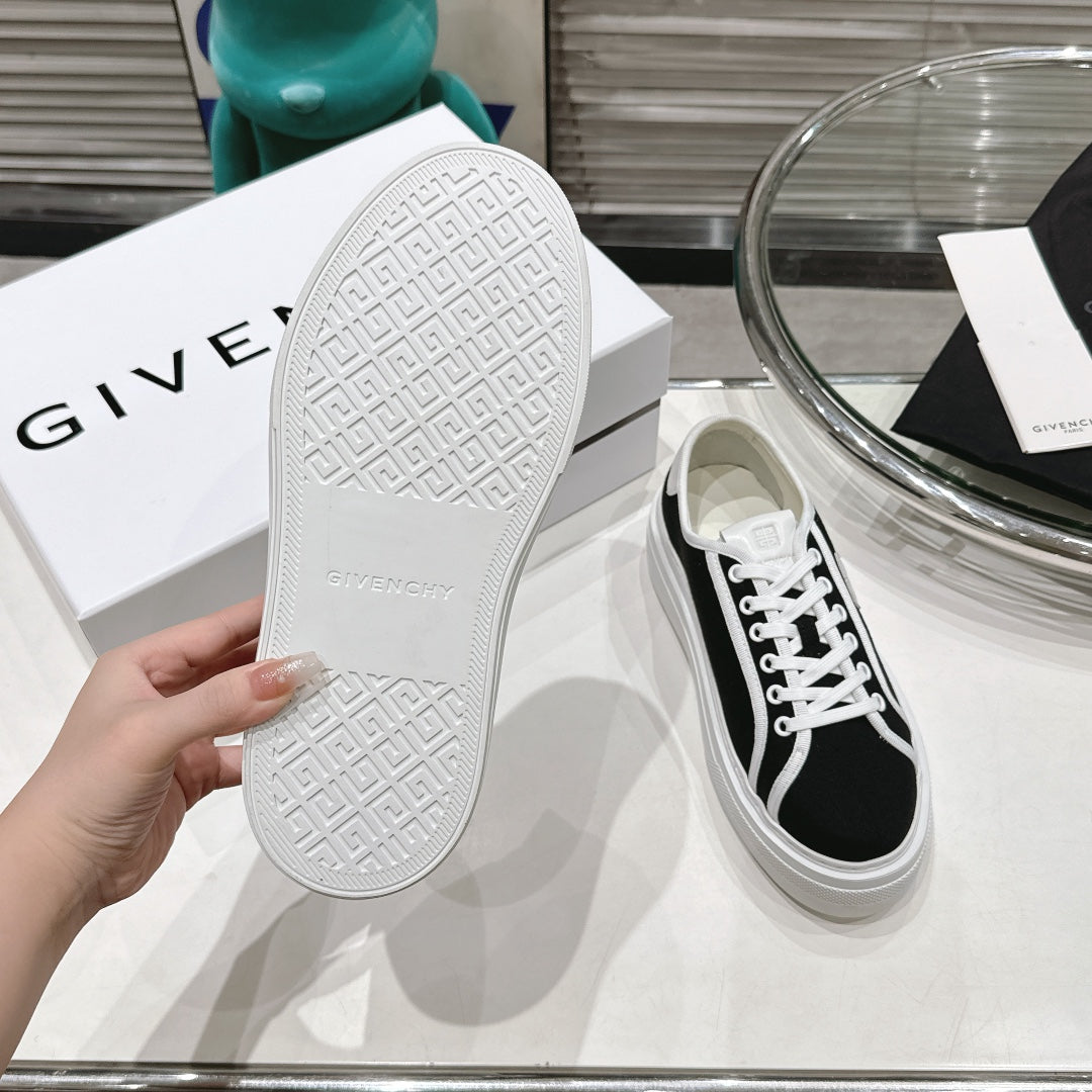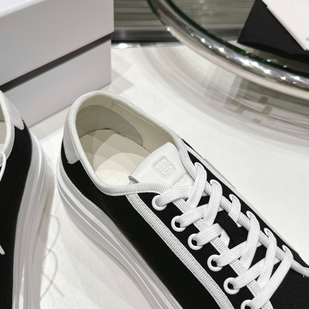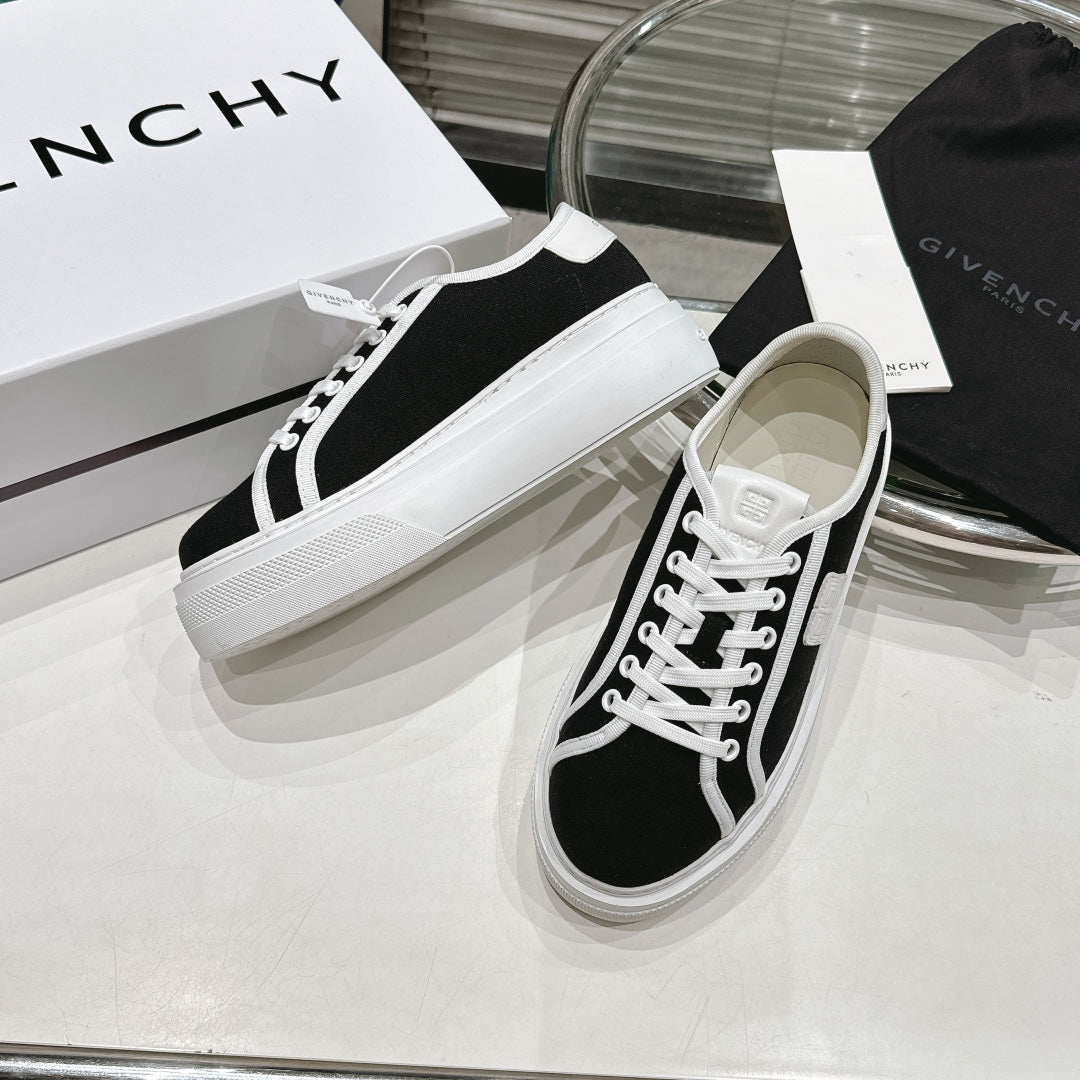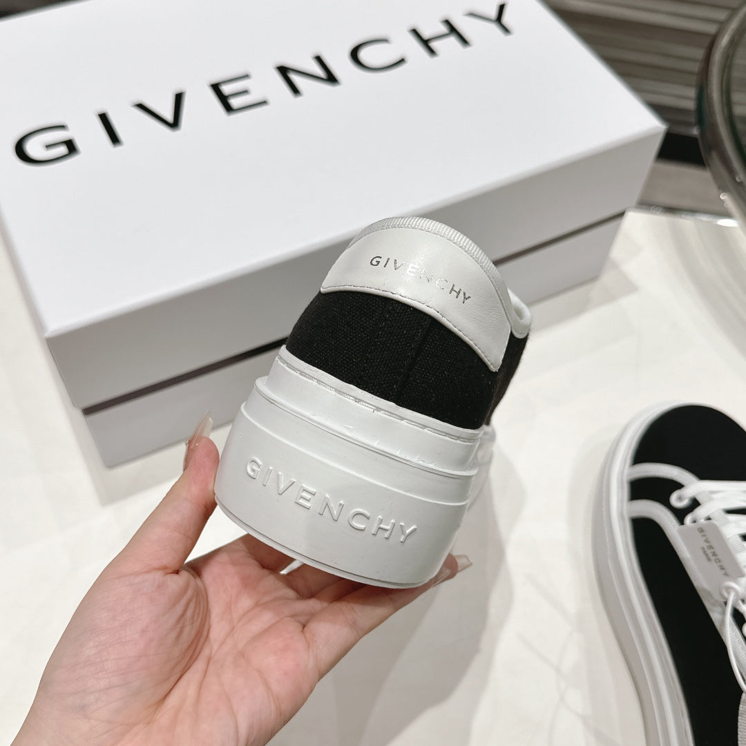 Step out in style with the Givenchy City Series Casual Sneakers, designed for couples who value both fashion and comfort. These trendy low-top sneakers feature a round toe and a sturdy black canvas upper for a sleek, versatile look. The simple yet modern color combination makes them perfect for any casual occasion.