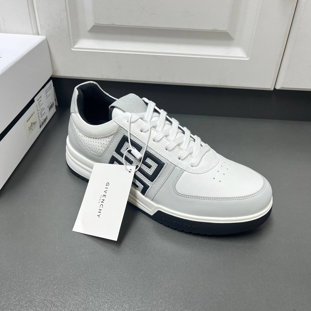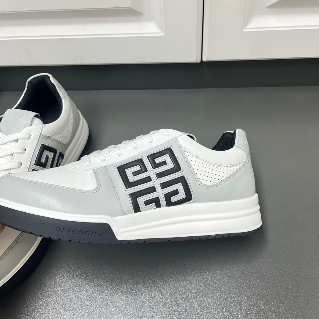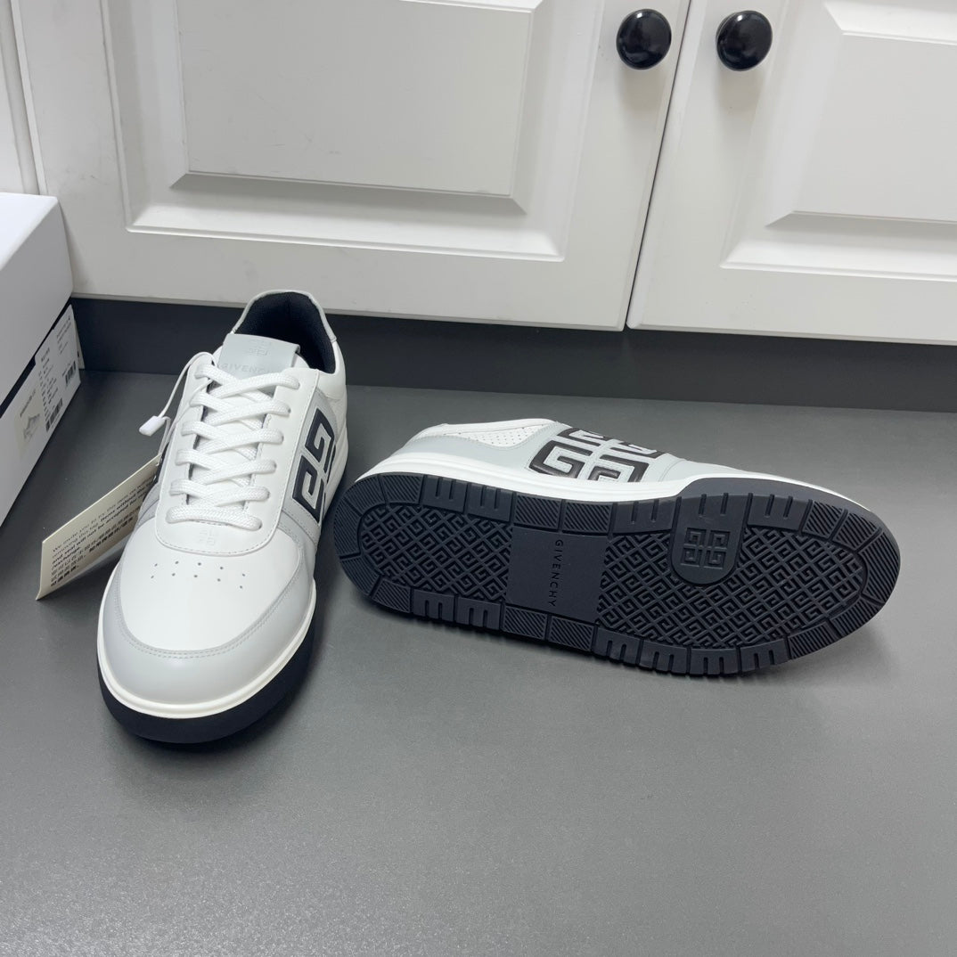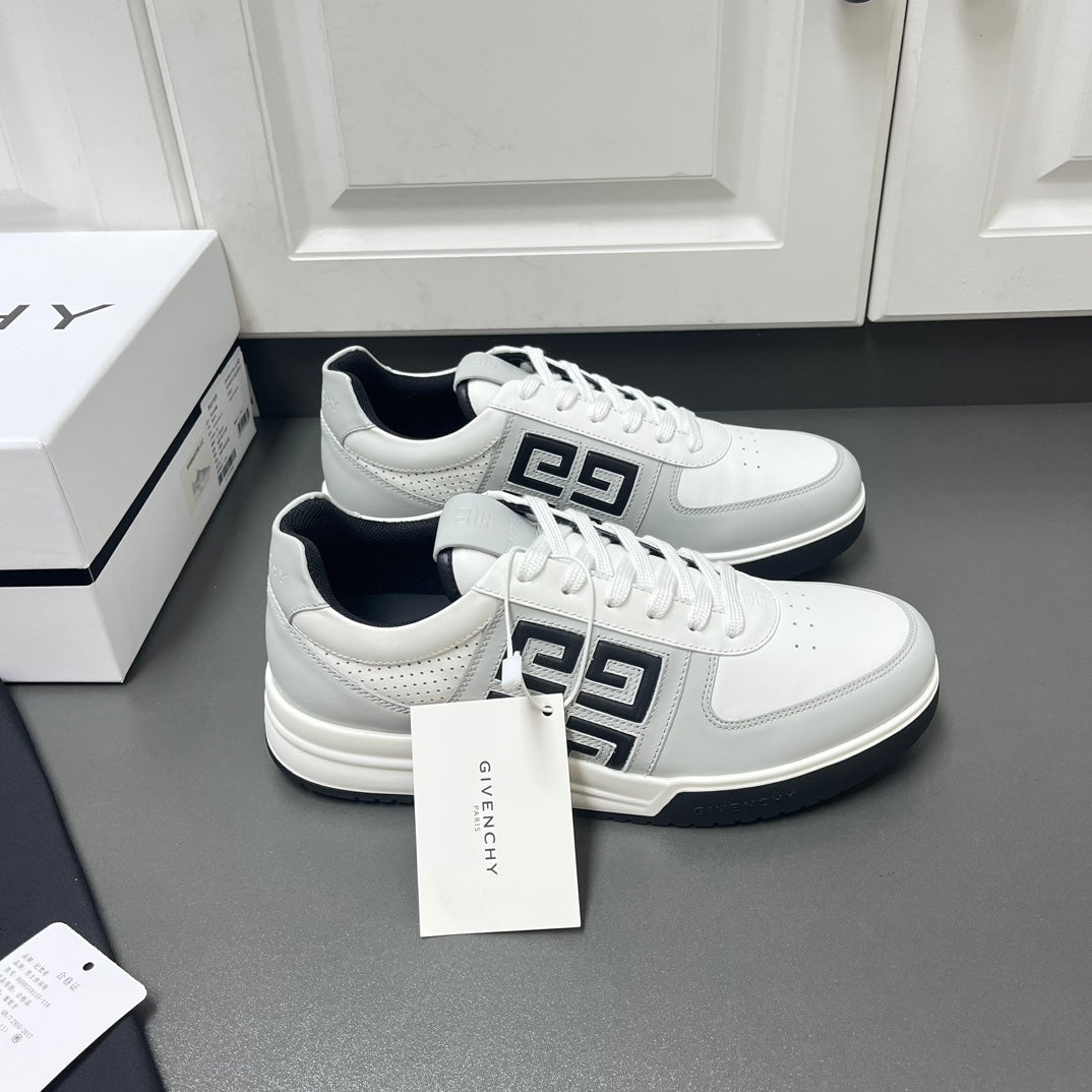 Step into style with the Givenchy G4 Series Low-Top Sneakers, exquisitely crafted from premium first-layer cowhide leather. Featuring a sleek lace-up closure, these sneakers offer a custom-made breathable JCmesh lining and comfortable cowhide insoles for all-day wear. The iconic 4G logo is elegantly displayed on the tongue and sides, complemented by detailed stitching and an embossed brand logo on the heel.