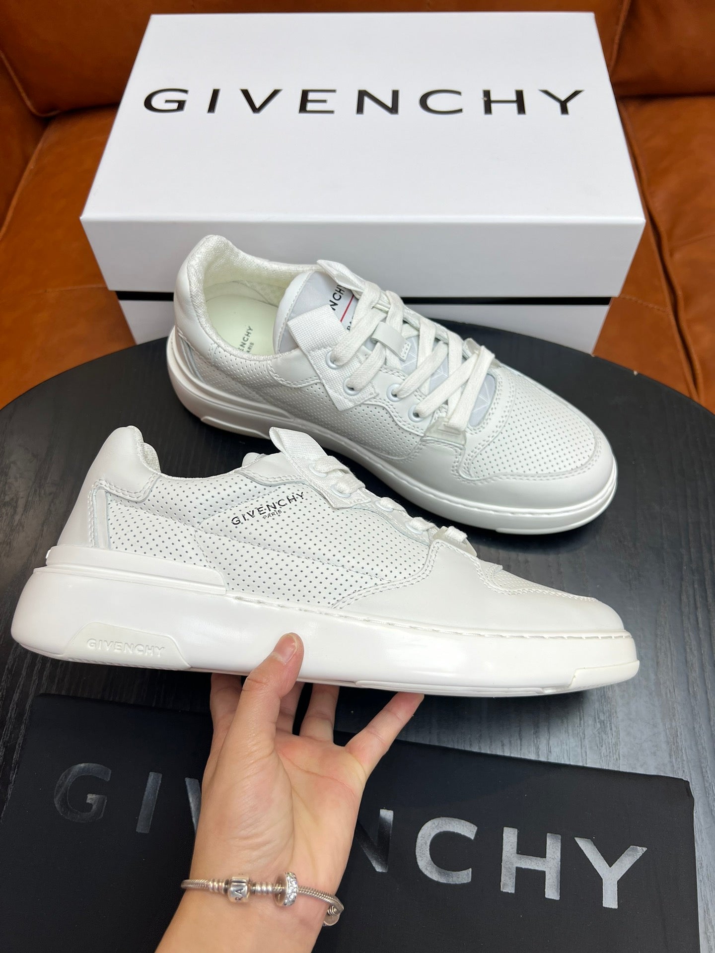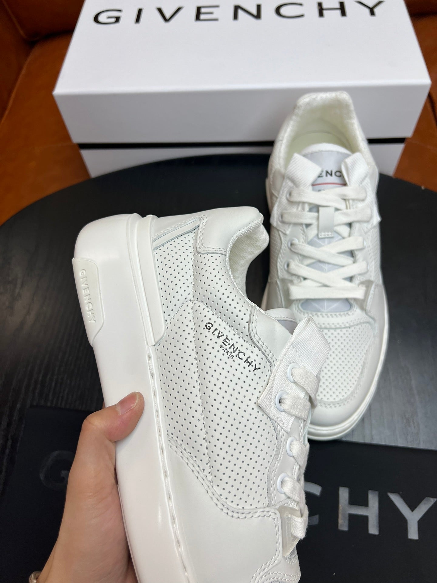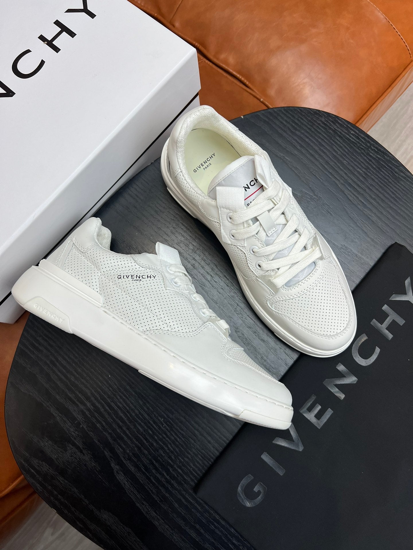 Built on a lightweight EVA sole, the sneakers offer both durability and comfort, while the three-dimensional GIVENCHY logo at the back enhances their unique appeal. Available in sizes 38-44 (custom size 45 upon request), these sneakers are perfect for the modern, fashion-forward man. Step into luxury with every stride.