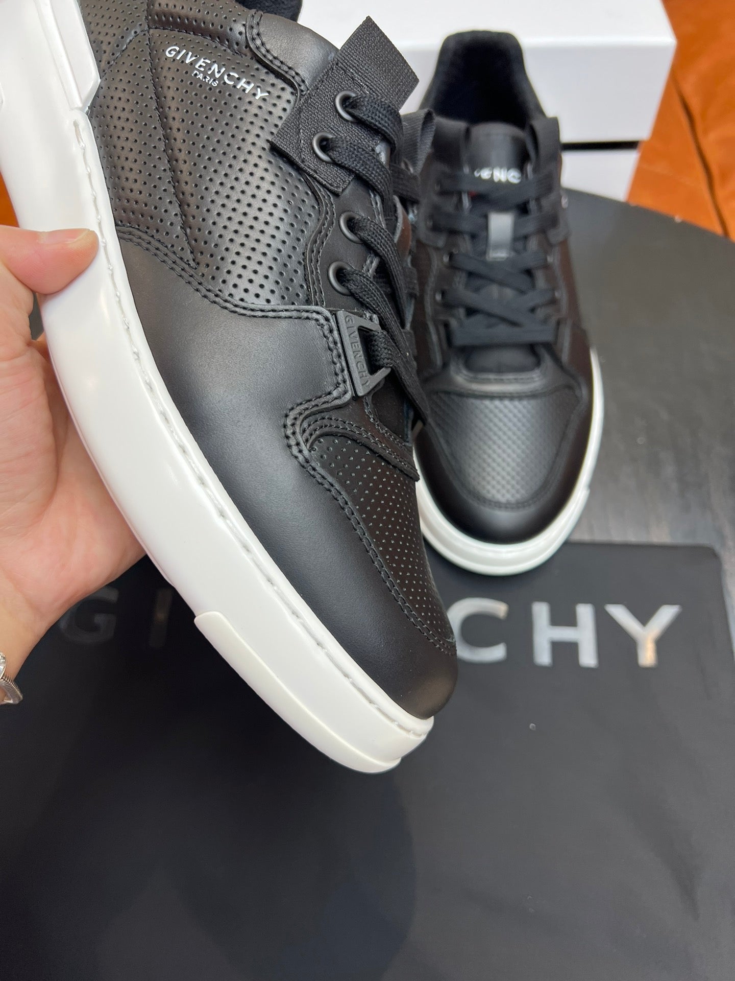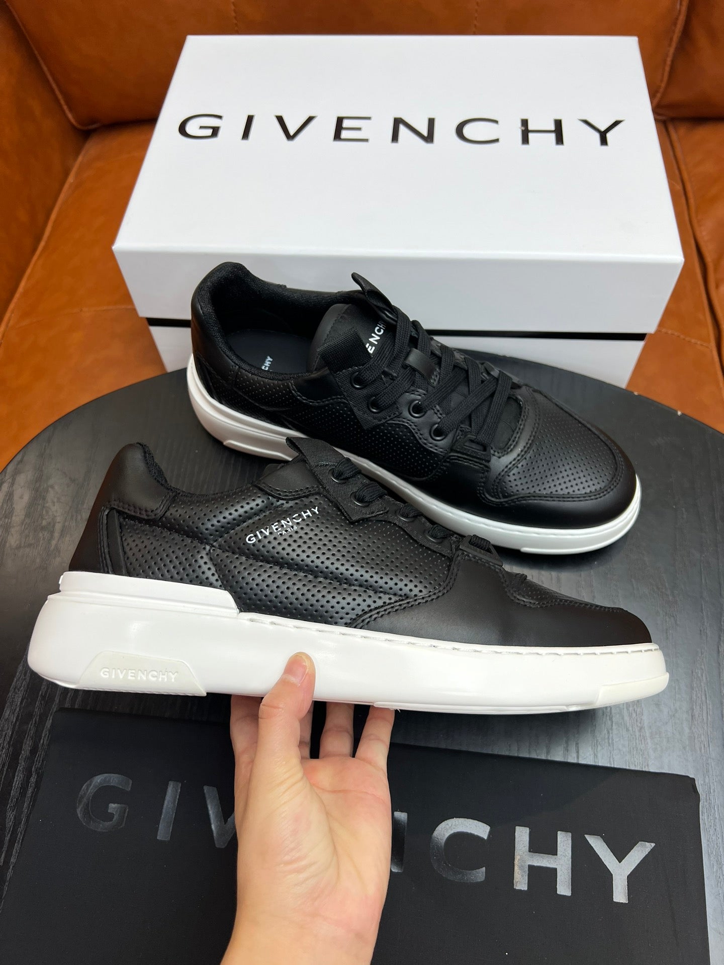 Elevate your footwear collection with the Givenchy Wing Low-Top Men's Sneakers. Expertly crafted to mirror the original design, these sneakers feature premium silk cowhide and breathable mesh with perforated detailing for enhanced airflow and comfort. The iconic GIVENCHY PARIS logo is proudly displayed on the side, while the laces are elegantly complemented by matching canvas straps. A standout white and red GIVENCHY PARIS logo adorns the tongue, showcasing sophistication in every detail. The lightweight EVA sole features a distinctive three-dimensional GIVENCHY logo at the back, ensuring both style and durability. Available in sizes 38-44, with size 45 available upon customization. Step into luxury with Givenchy.
