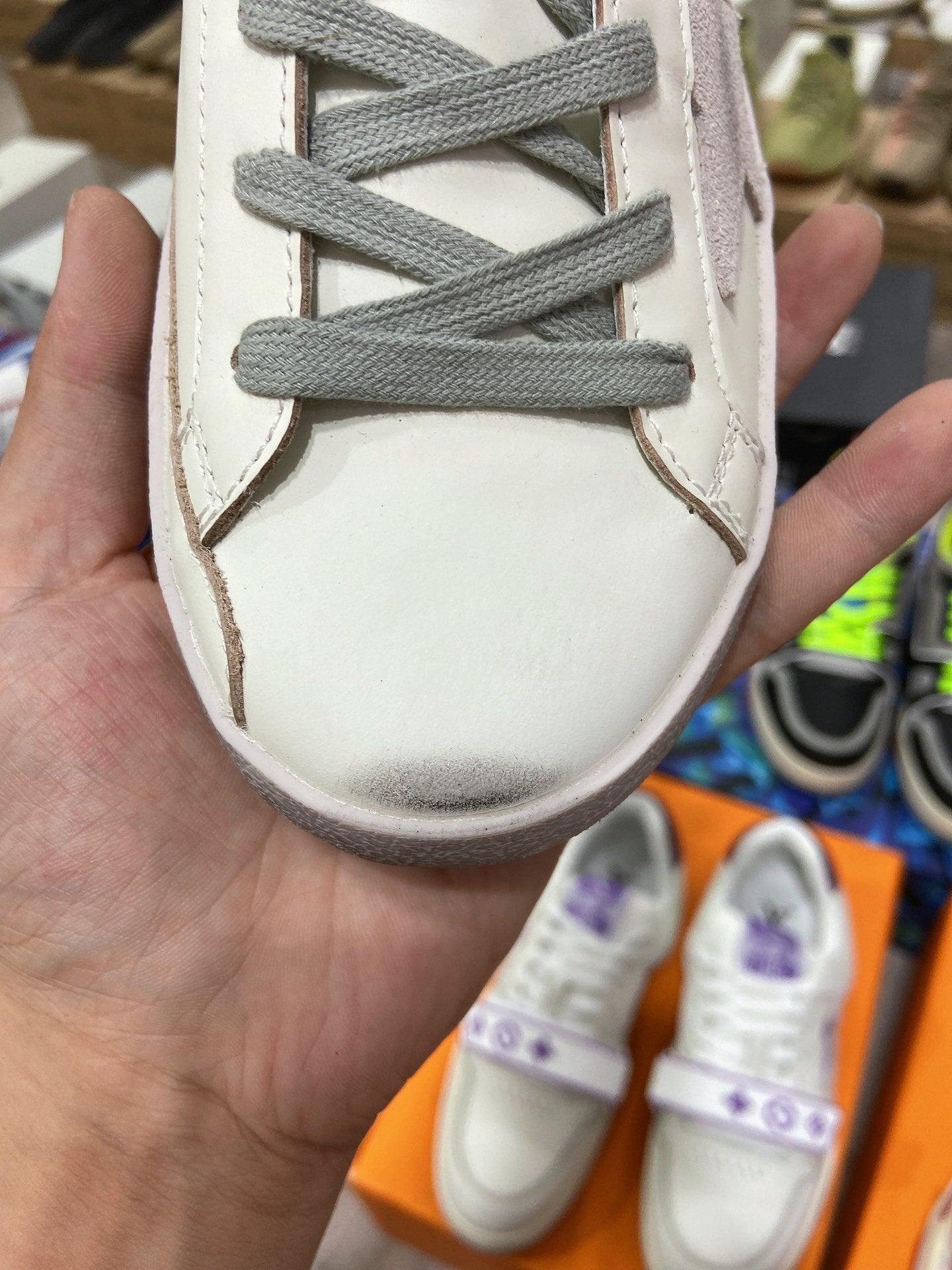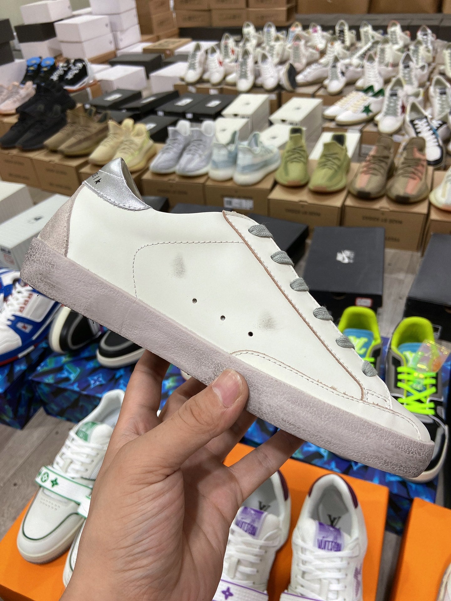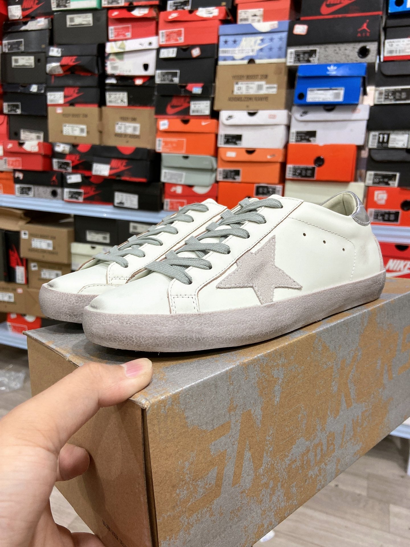Introducing the Golden Goose Super Star Sneakers from the 19ss collection—an exquisite blend of style and craftsmanship. These highly sought-after sneakers are hand-polished and feature a fashionable distressed look, making them a favorite among celebrities worldwide. With an added height boost of 3 centimeters, they provide both comfort and confidence.