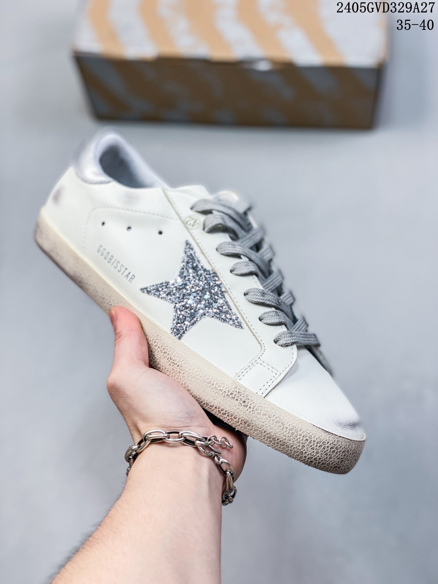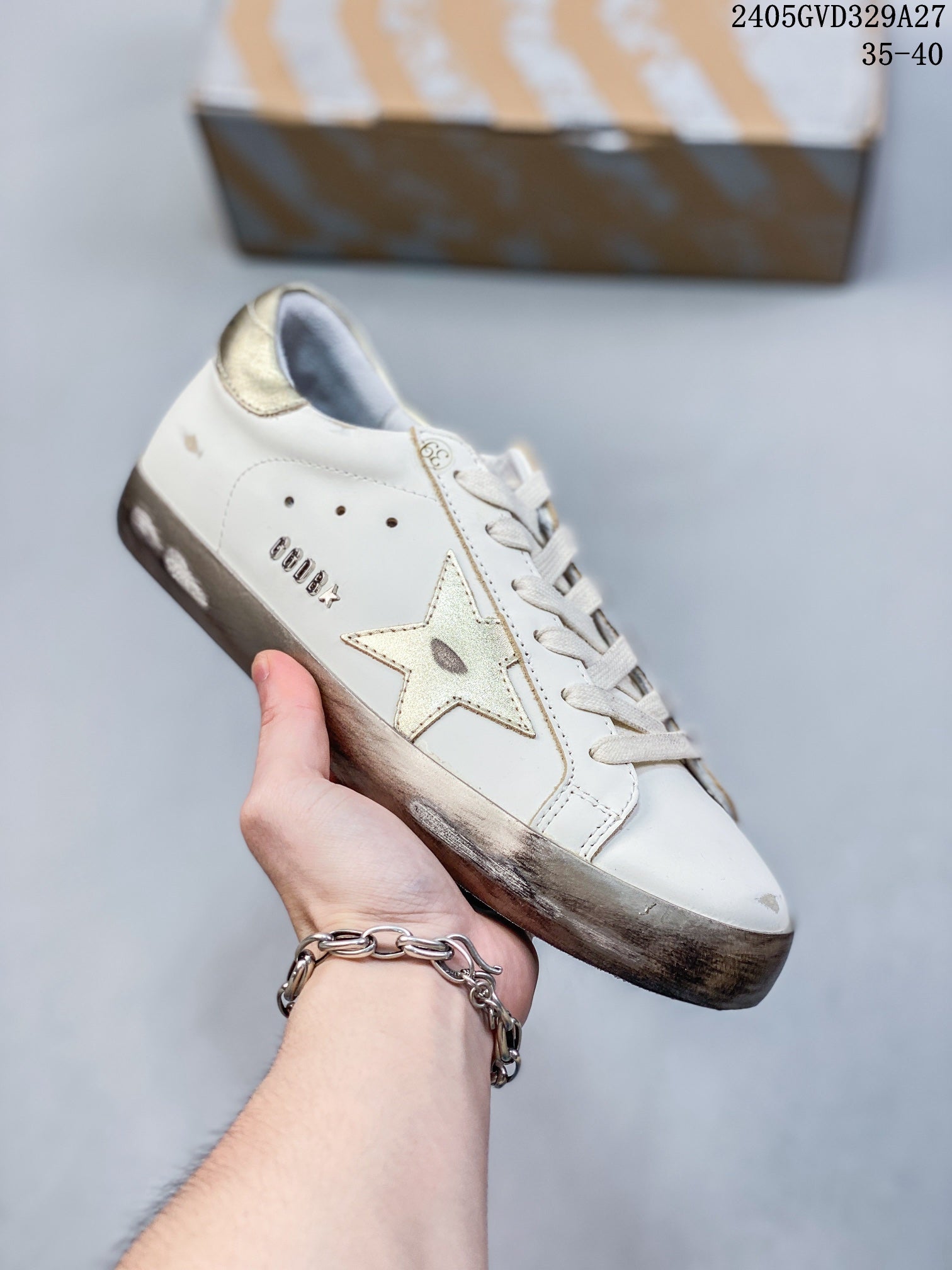 Complete with an original box, dust bag, and shopping card, these sneakers are more than just footwear; they are a statement piece. Available in sizes 35-44, the Golden Goose Super-Star sneakers are a timeless addition to your wardrobe, perfect for elevating your casual looks with an iconic retro flair.