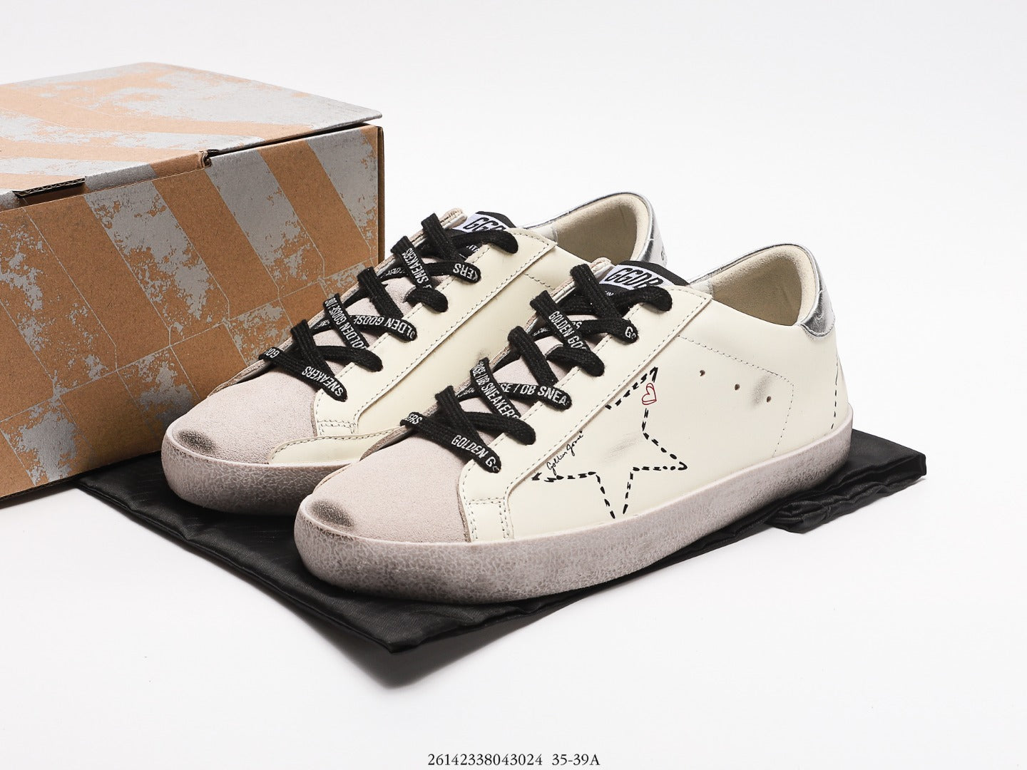 Introducing the Golden Goose Superstar Sneakers from the 19SS collection, a must-have for fashion enthusiasts and celebrities alike. Expertly crafted with meticulous attention to detail, these sneakers feature a stylishly distressed finish and hand-polished surfaces, embodying a unique blend of luxury and streetwear.