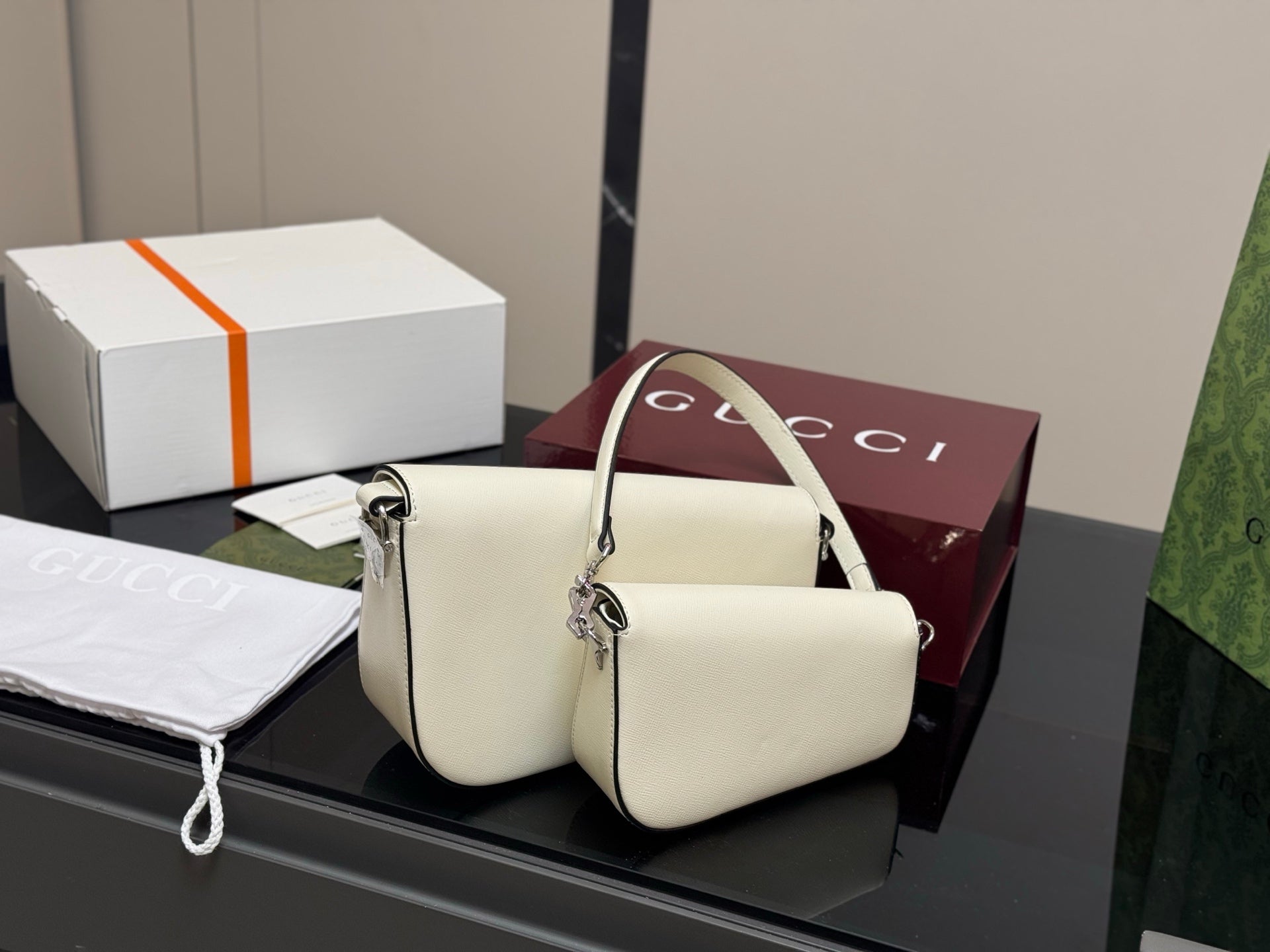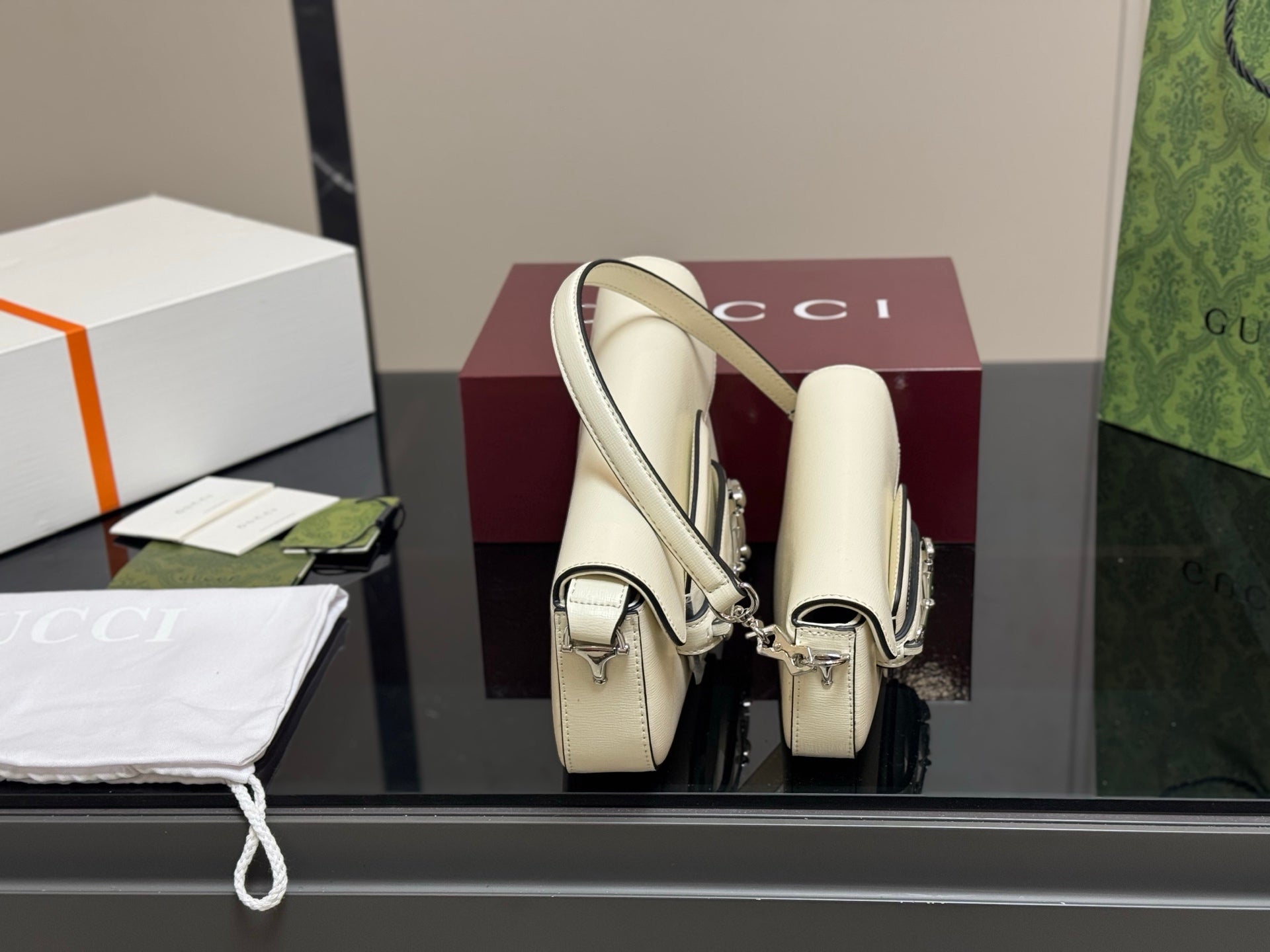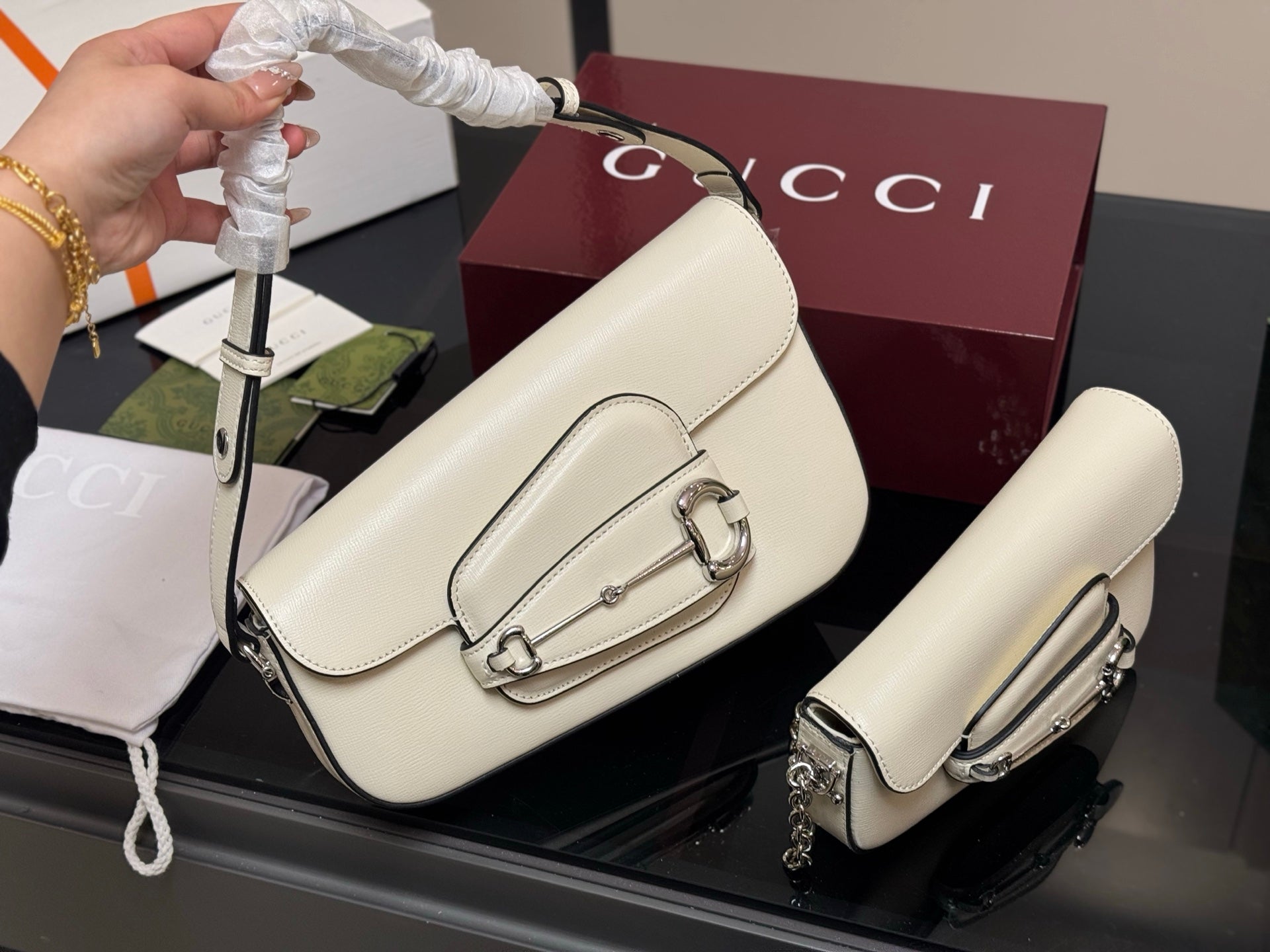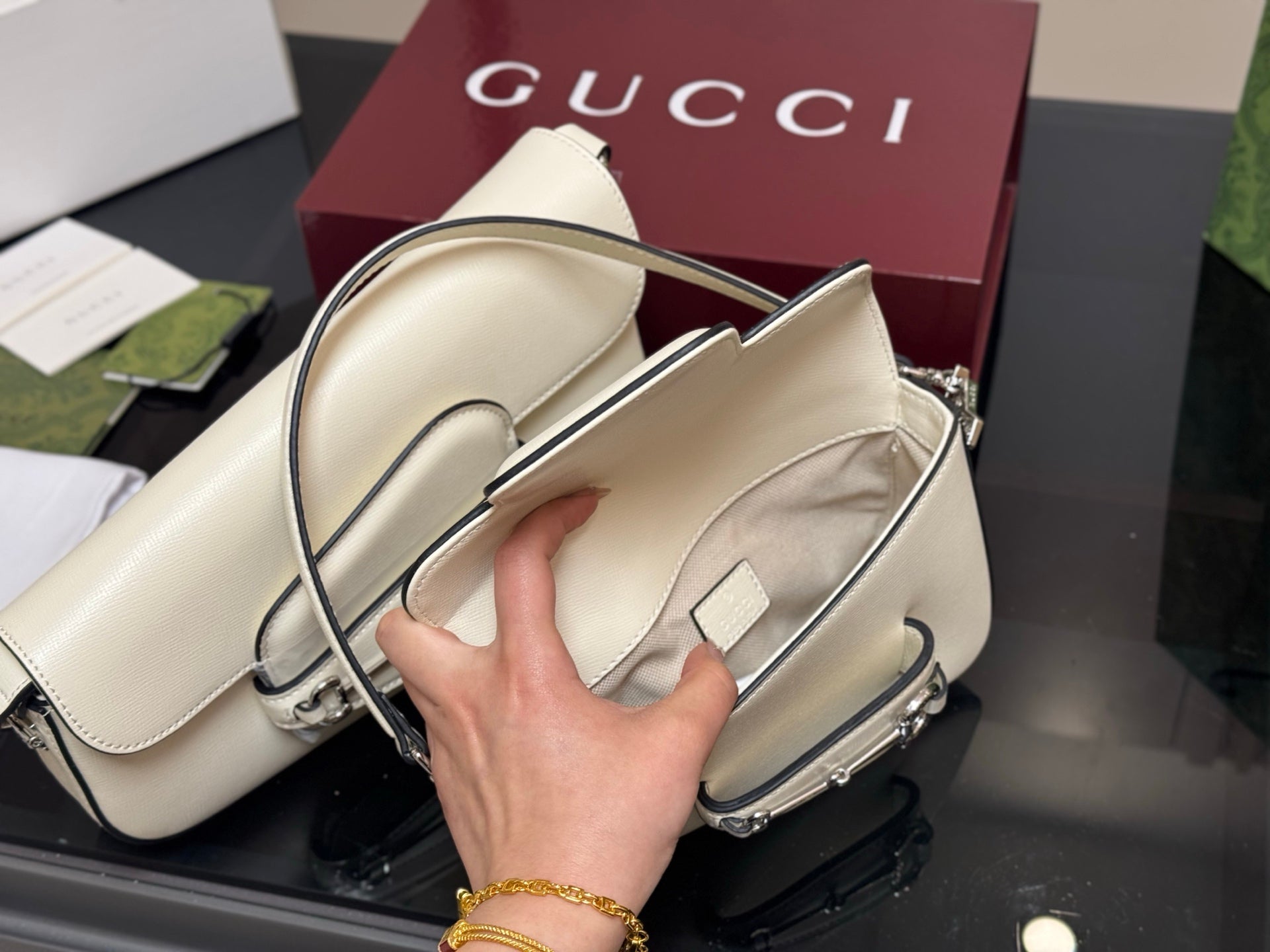 Discover the luxury of the Gucci 1955 Armpit Bag, featuring a distinctive asymmetrical shape that sets it apart. This stylish accessory is designed for both aesthetic appeal and functionality, with dimensions of 27 x 17 cm and 20 x 10 cm for the folding and airplane box. Its spacious interior ensures you can carry your essentials in style. Elevate your wardrobe with this super special piece, perfect for making a statement. Don't miss out on the perfect blend of elegance and practicality!