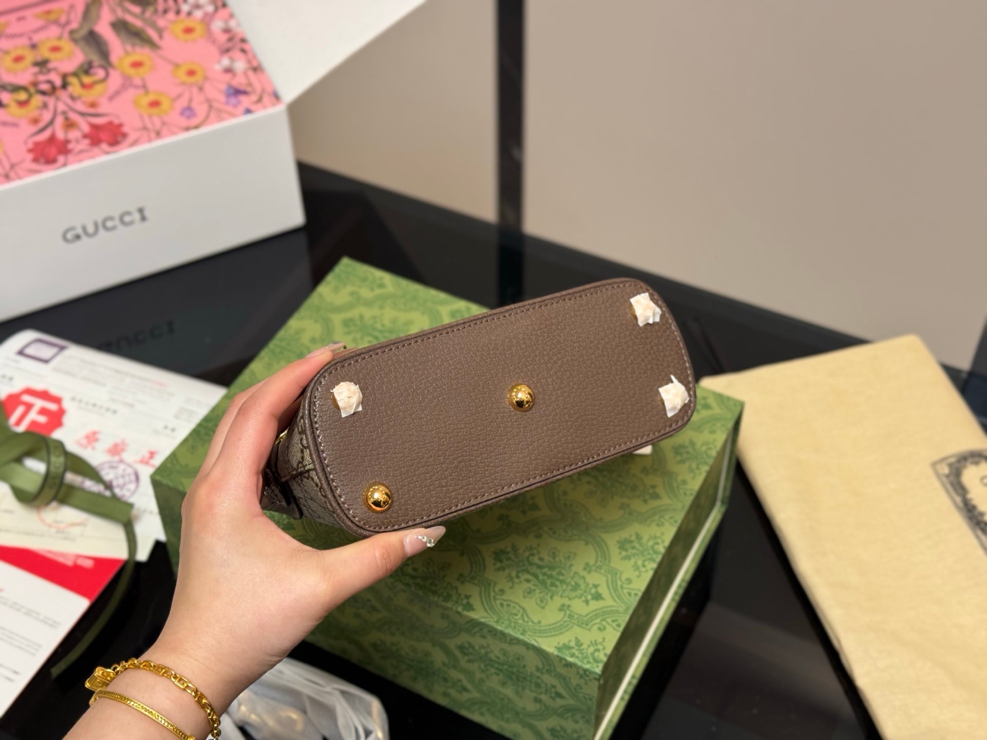 Introducing the upgraded Gucci 1955 Shell Bag, designed for those who appreciate retro elegance. Crafted from original PVC with a timeless floral pattern and imported ZP leather, this handbag seamlessly blends classic charm with modern style. Measuring 22.17cm, it's the perfect accessory for anyone embracing retro fashion. Elevate your wardrobe with this sophisticated folding box design, a must-have for vintage enthusiasts. Experience quality and style with Gucci.