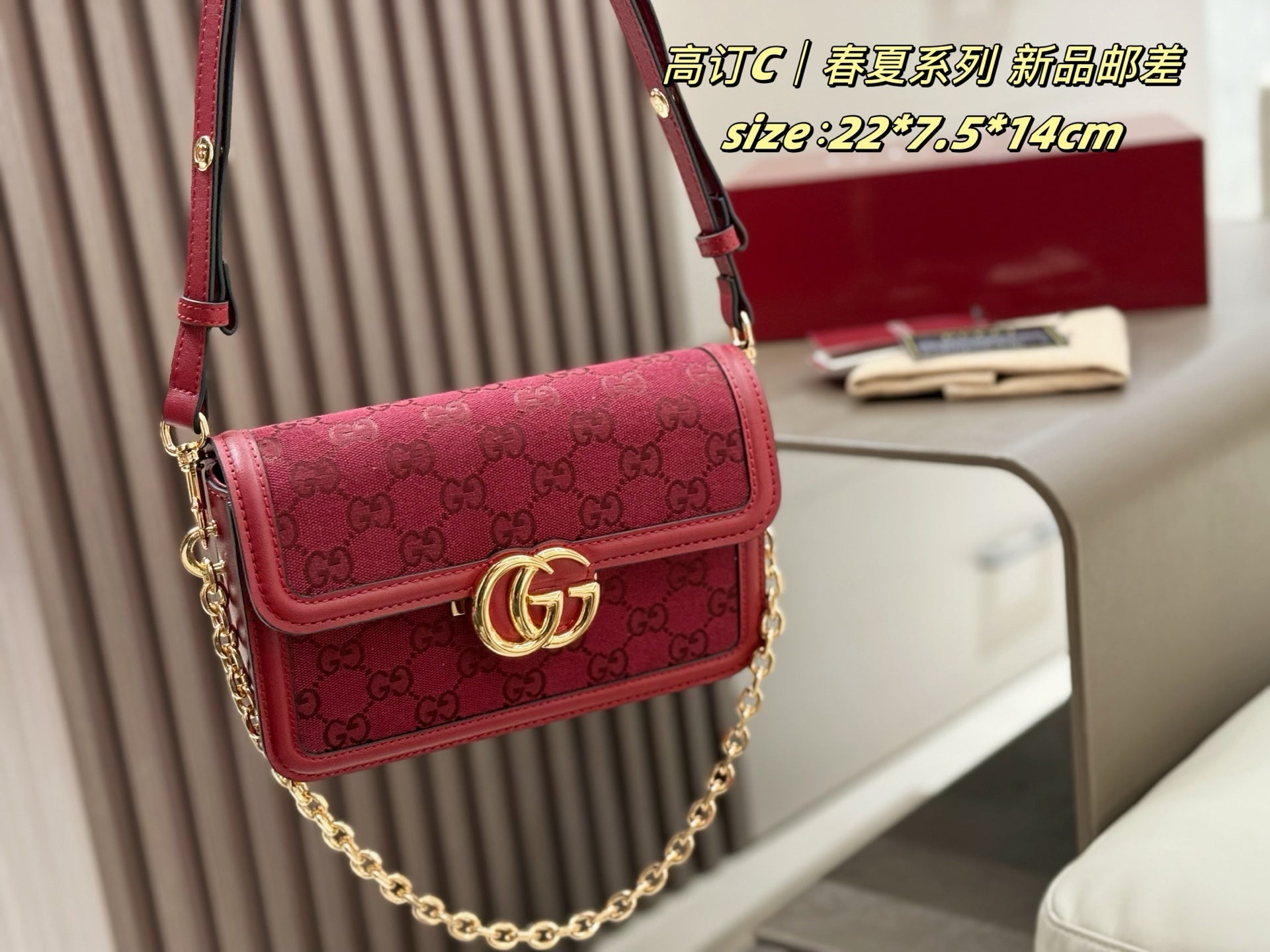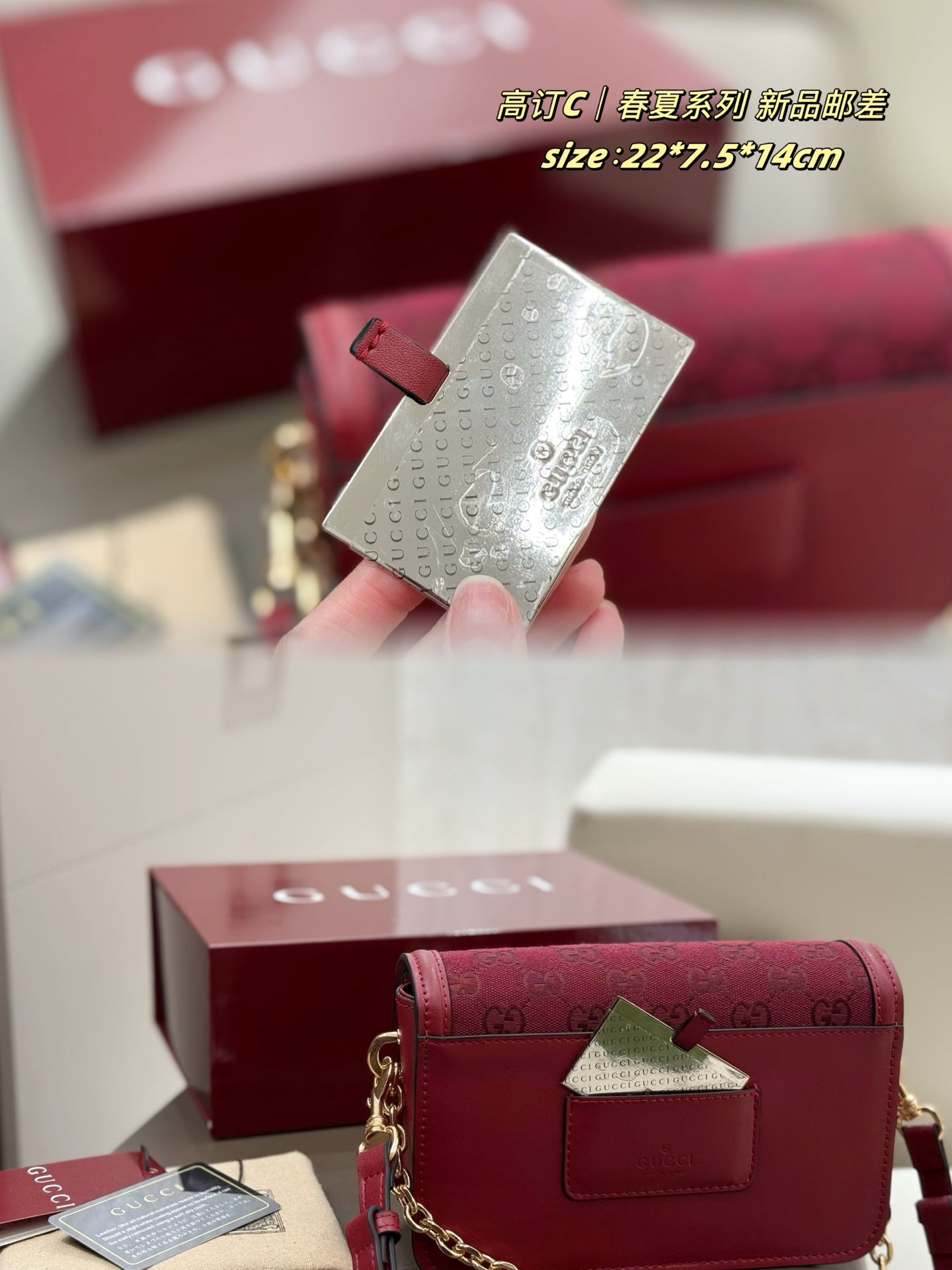 Introducing the exclusive Gucci 2025 Spring/Summer Collection bag, elegantly packaged in double box packaging for a luxurious unboxing experience. This stunning bag embodies a perfect fusion of retro charm and contemporary fashion, featuring a classic presbyopia design complemented by a striking double G gold buckle.