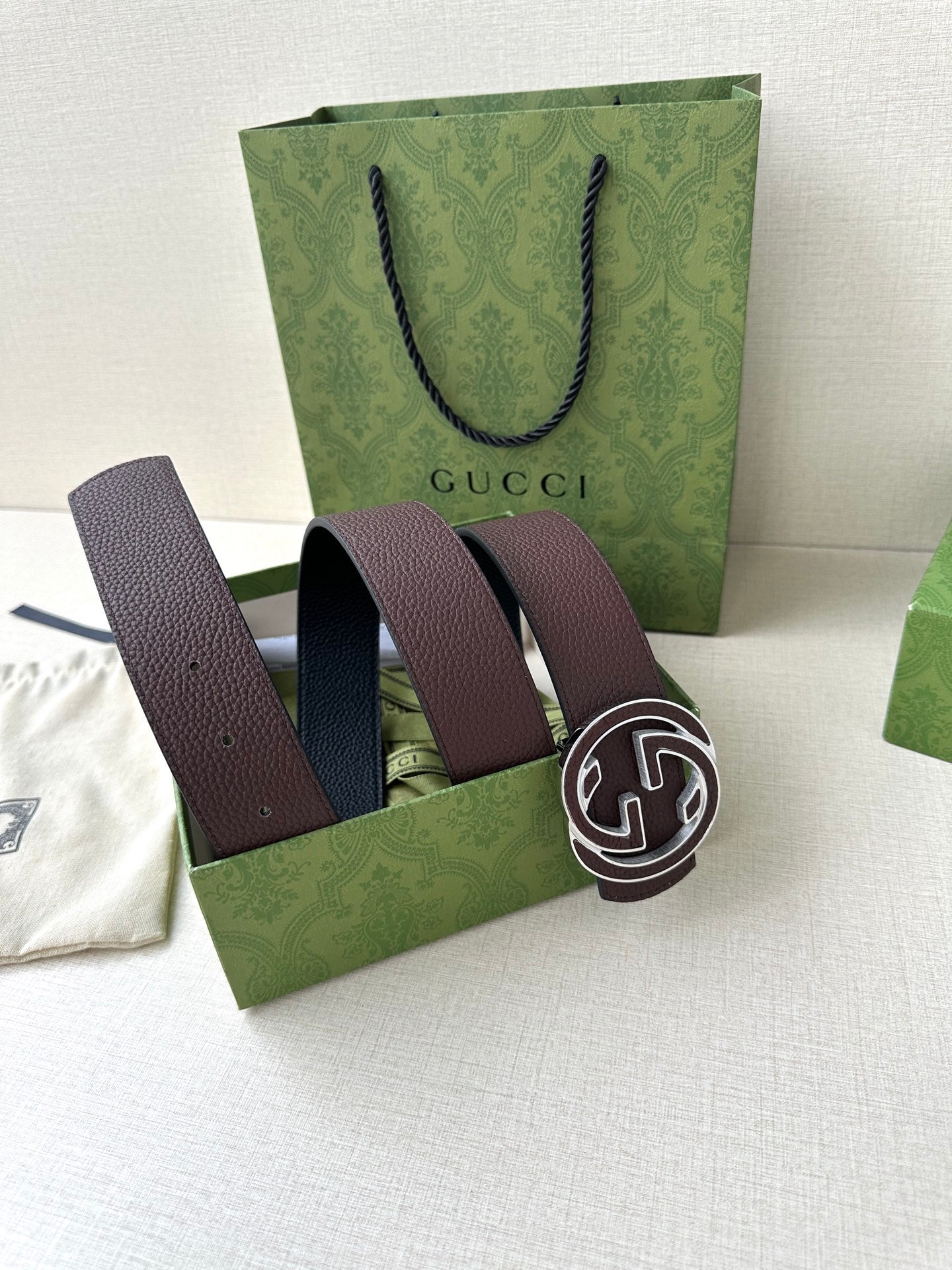 GUCCI 4.0cm Reversible Double G Leather Belt