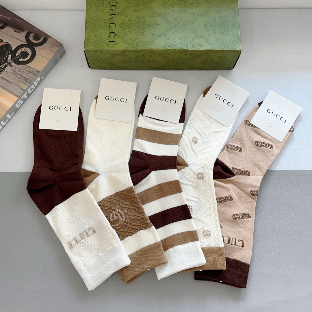 Gucci Bamboo Cotton Long Socks - 5 Pairs Box Set