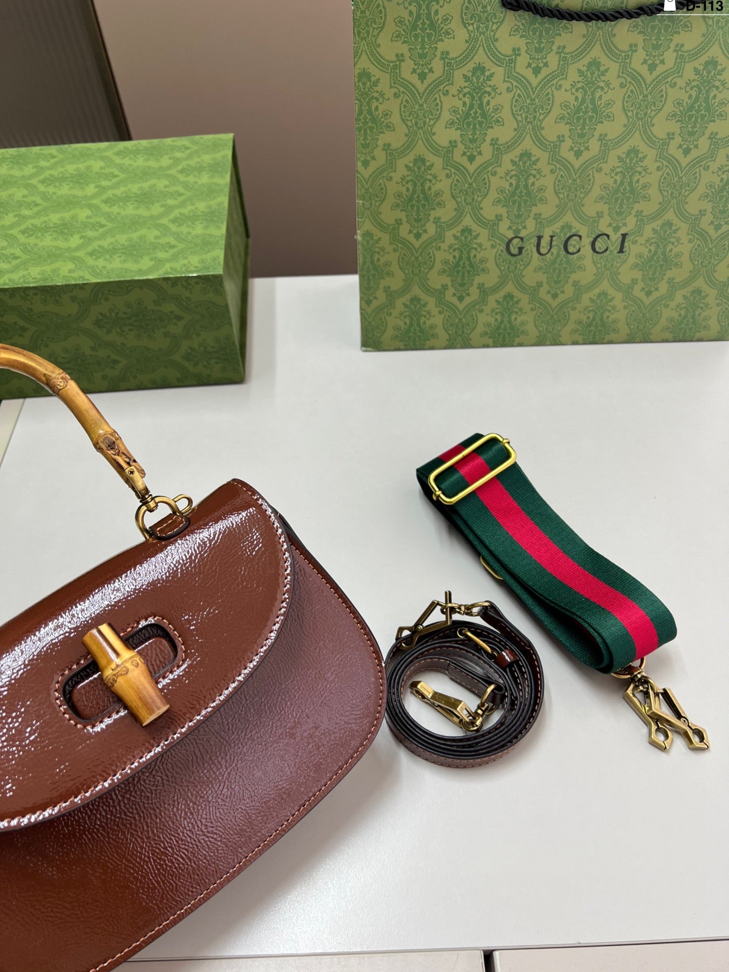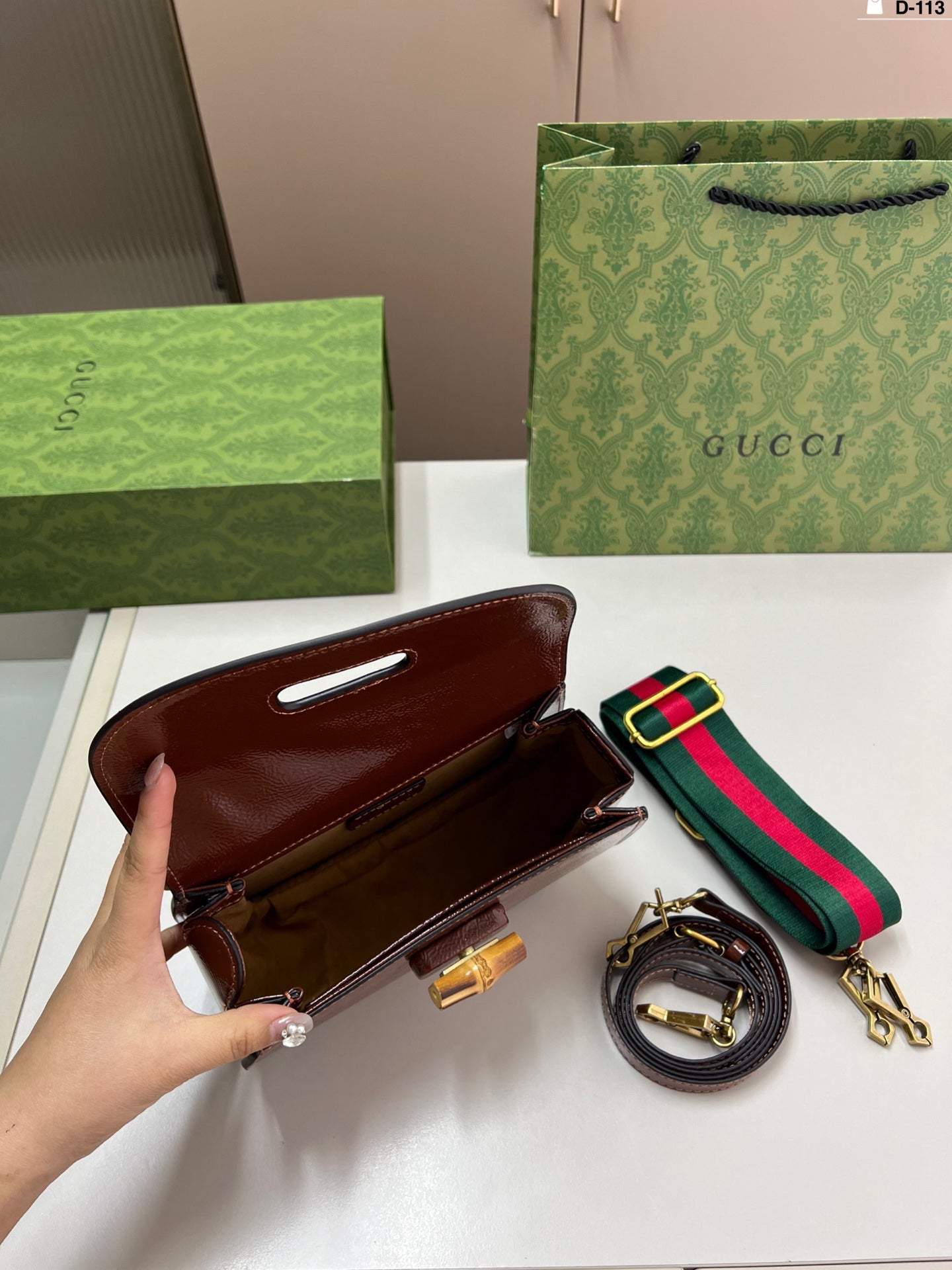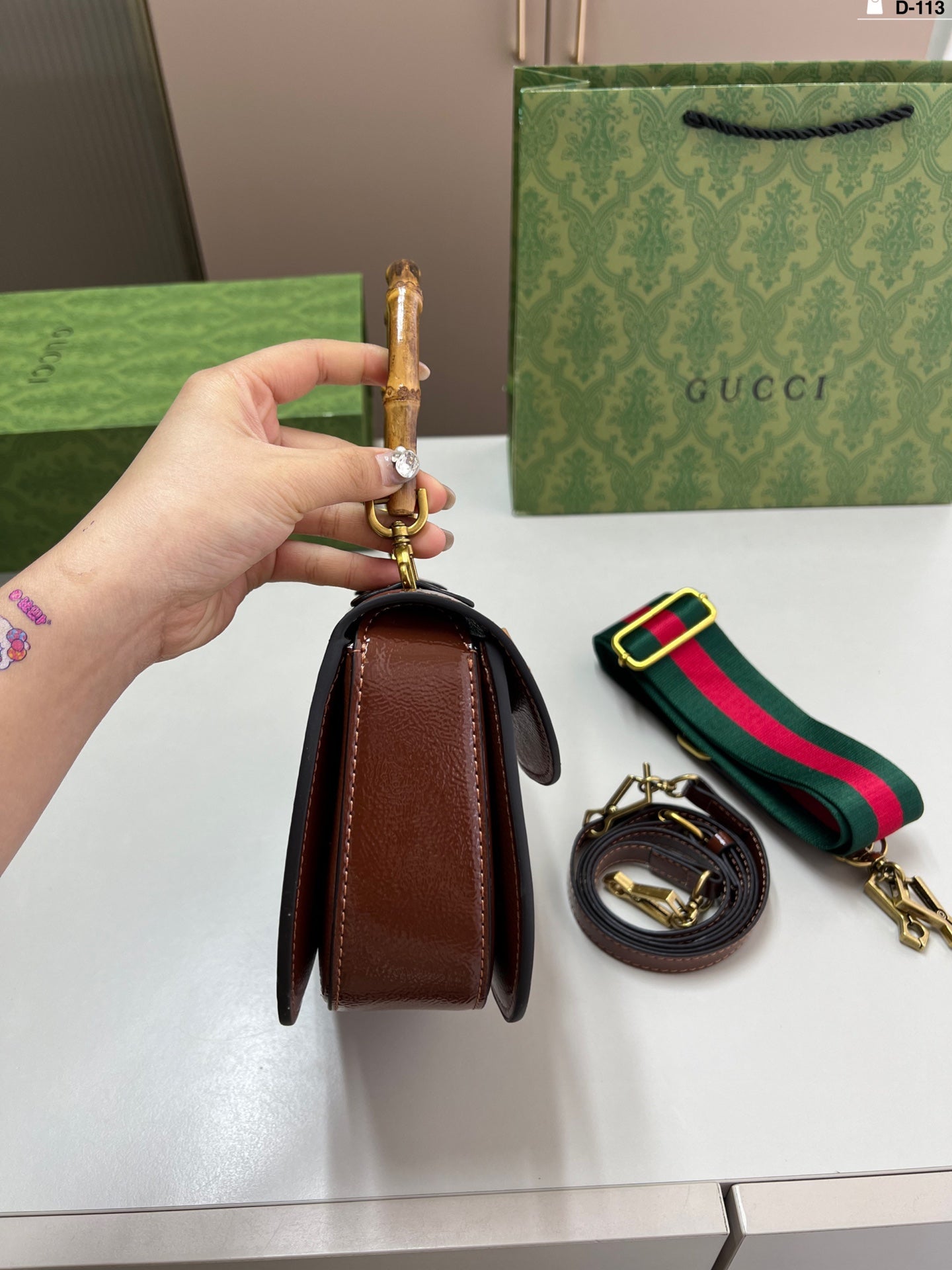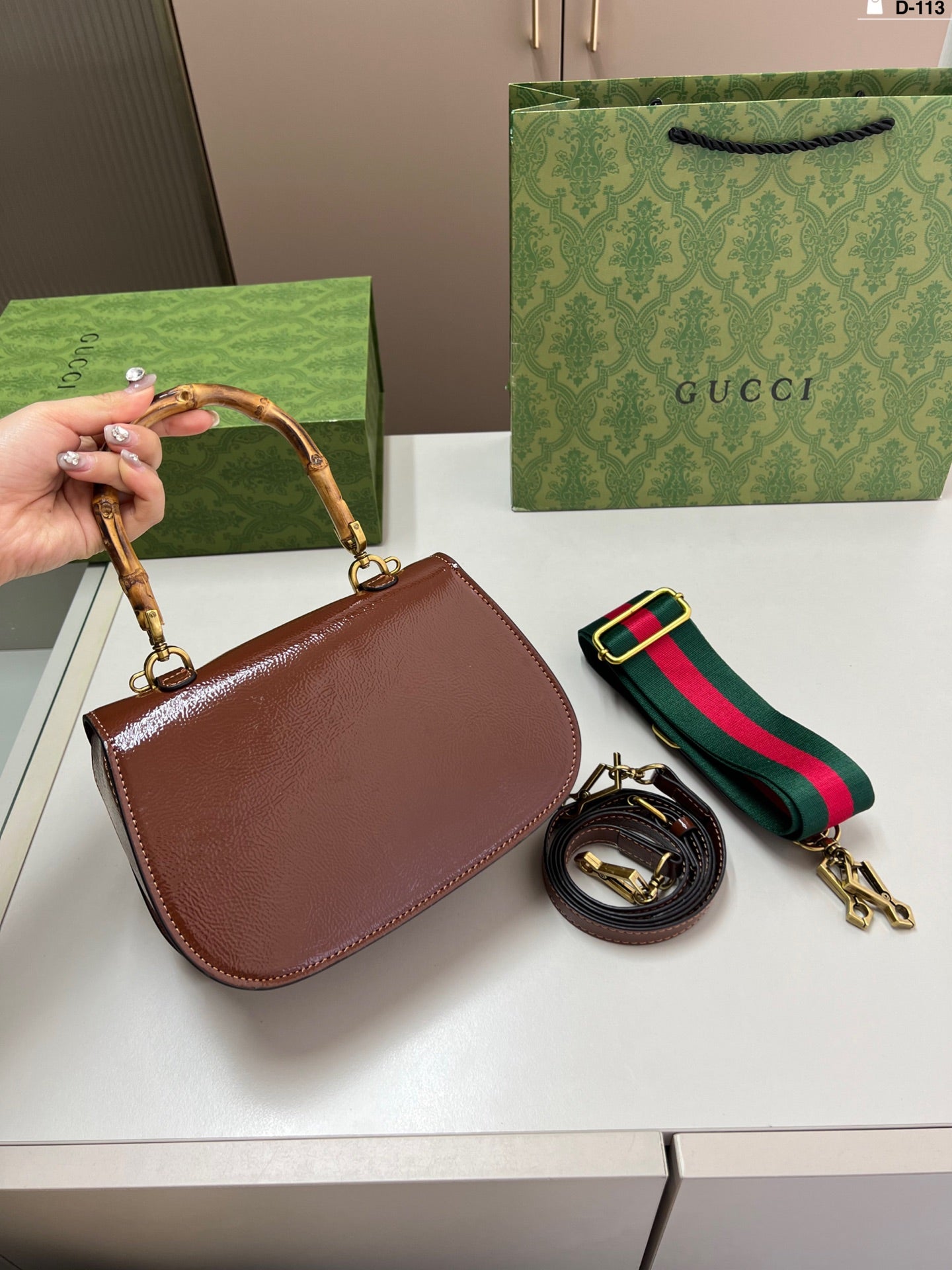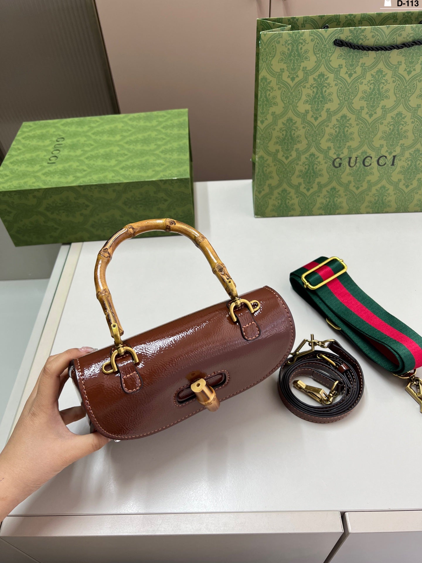 Introducing the Gucci Bamboo Handbag, a stylish and versatile accessory that effortlessly enhances your wardrobe. With its sleek and compact design, this handbag is perfect for any occasion. Transition seamlessly from a handbag to a shoulder bag in seconds, showcasing its practicality and modern charm. The D-113 size (22×15 cm) makes it an ideal companion for both day and night outings. Elevate your fashion game with this trendy piece from Gucci.