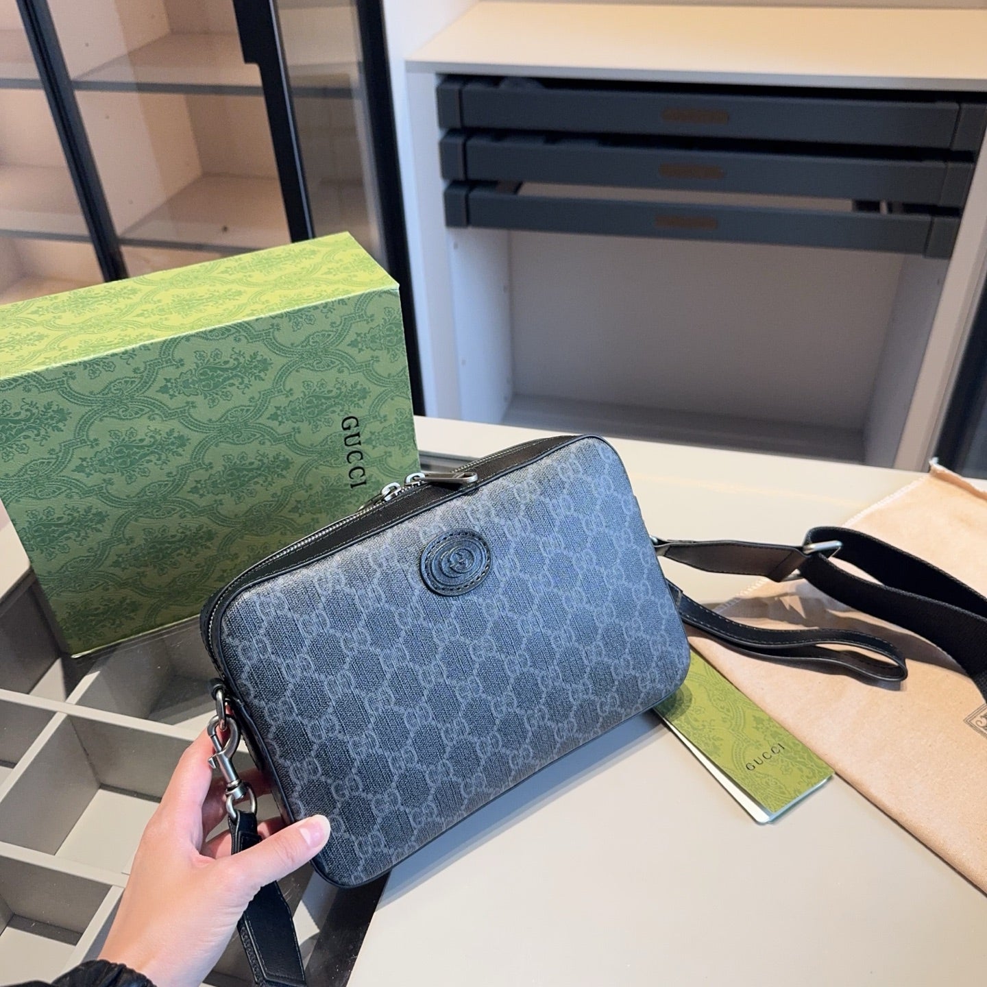 Discover the coveted Gucci Camera Bag, a favorite among celebrities and fashion enthusiasts alike. Crafted from genuine cowhide, this replica features high-quality hardware and luxurious lining that mirrors the original. The bag is an ideal choice for travelers, offering style and practicality with a high return rate. It comes beautifully packaged in an original folding gift box, making it a perfect gift for any occasion. Dimensions: 24 cm x 16 cm x 5 cm. Elevate your accessory collection with this timeless piece.