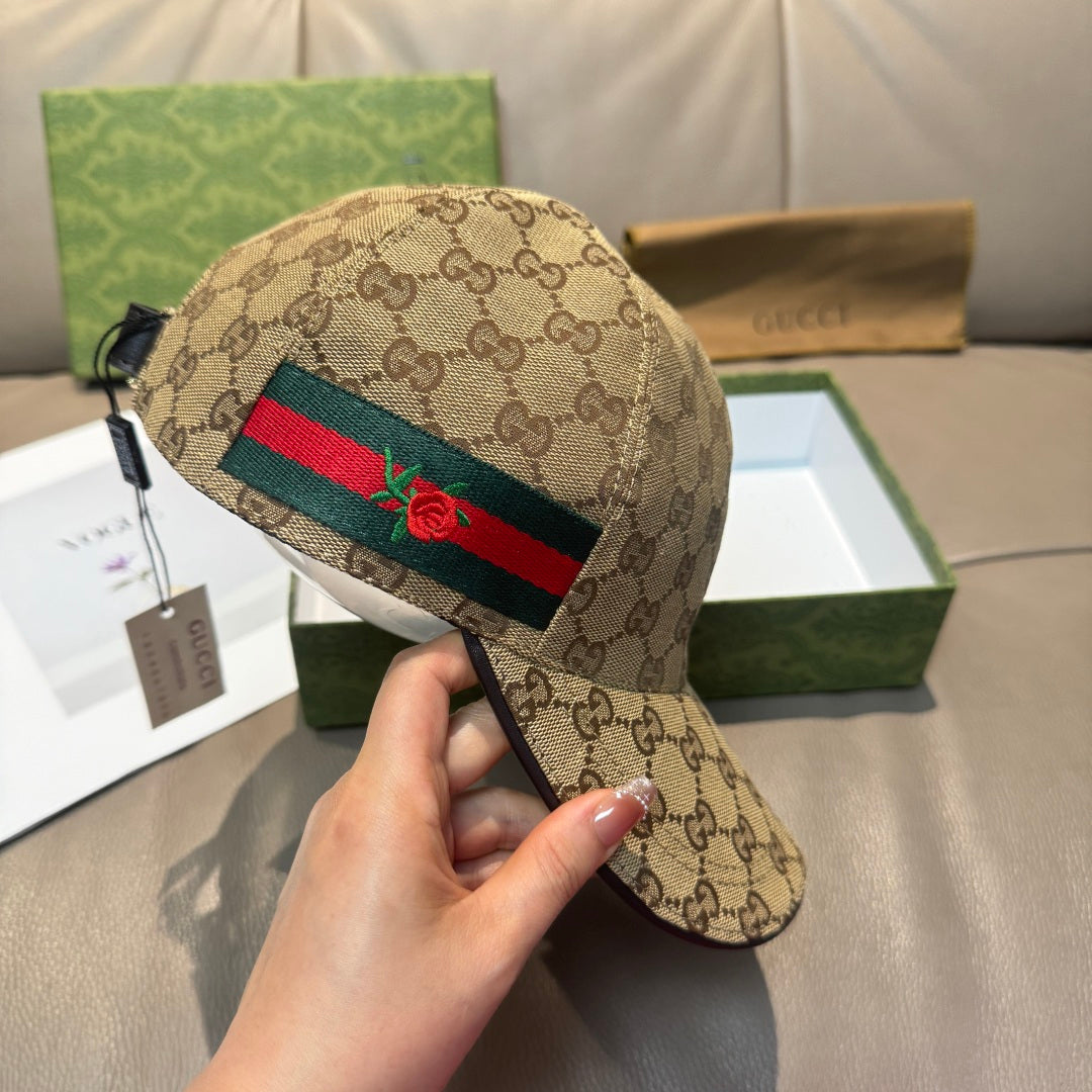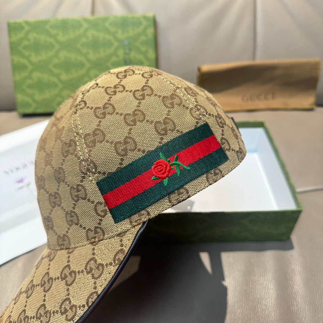 Elevate your style with the Gucci Classic Baseball Cap, meticulously crafted for both men and women. This premium accessory features the iconic flower webbing design and is tailored with a 1:1 mold customization for a perfect fit. Made from high-quality original canvas fabric and first-layer cowhide, this cap offers a lightweight and breathable feel, making it suitable for all seasons. The basic head circumference is 56cm with adjustable patches for a comfortable and personalized fit. Each cap comes in an elegant box bag, making it a perfect gift or a stylish addition to your wardrobe.