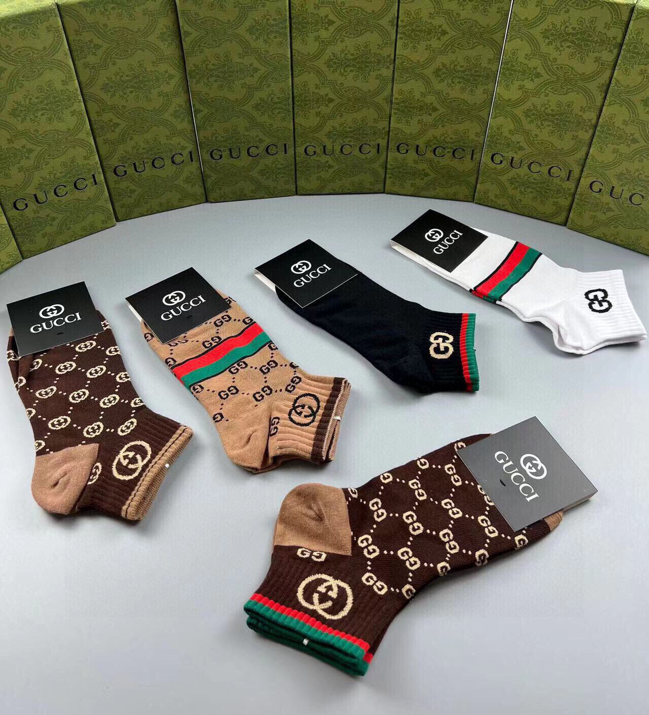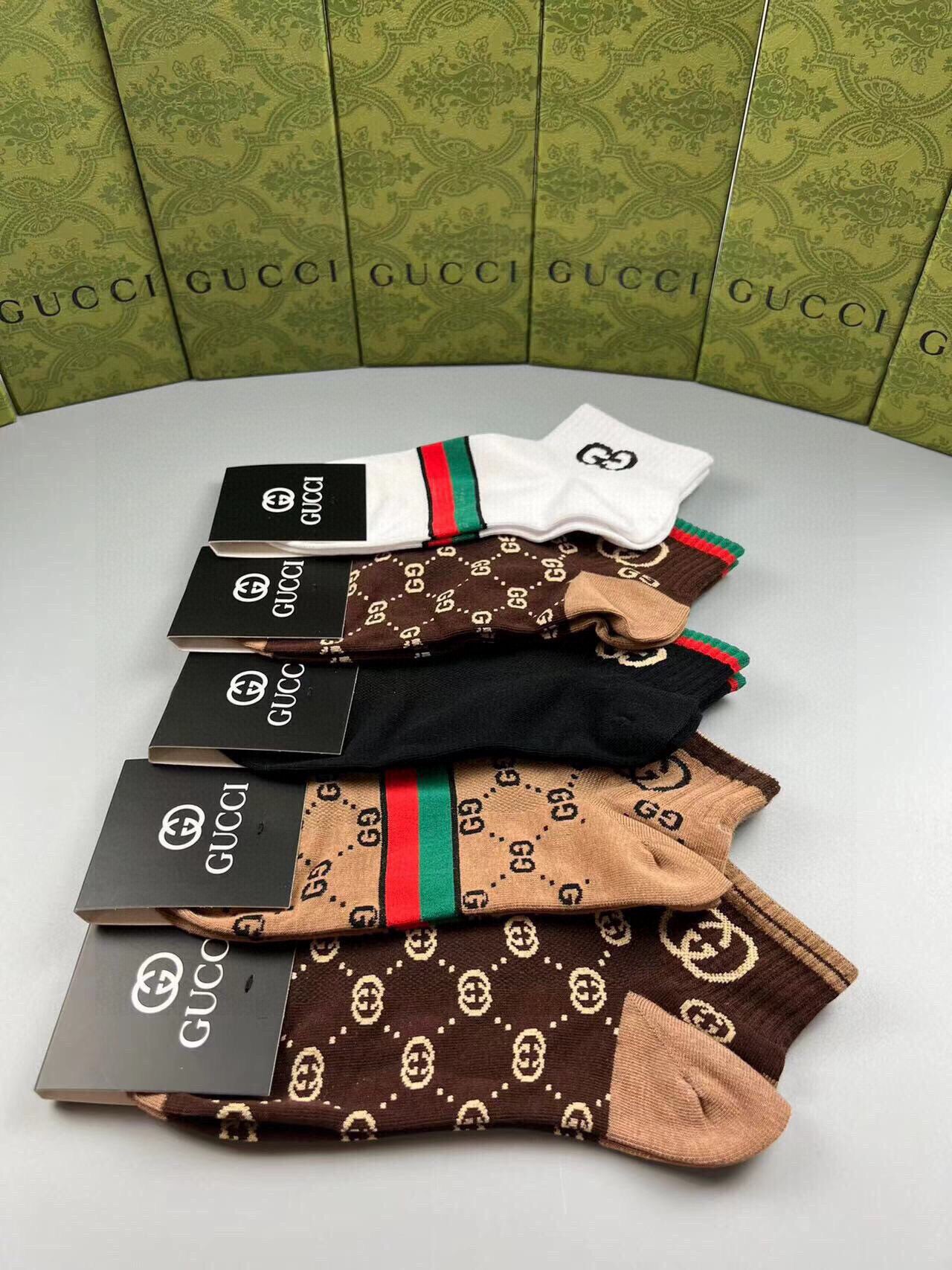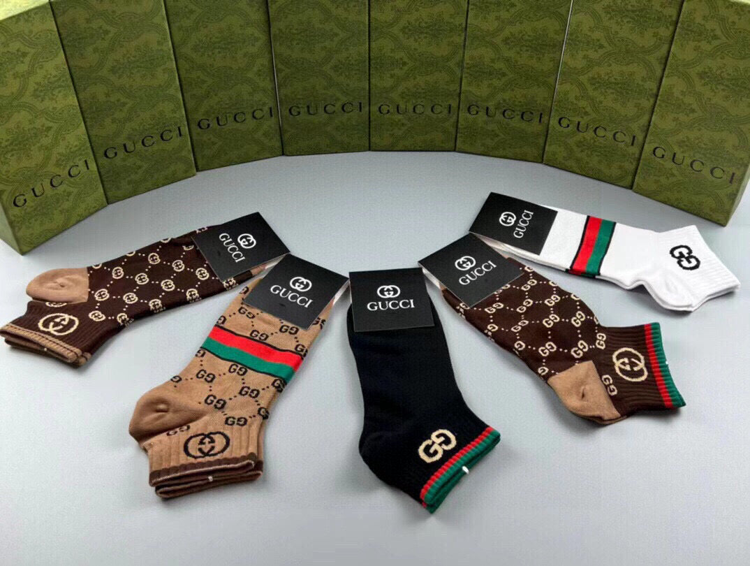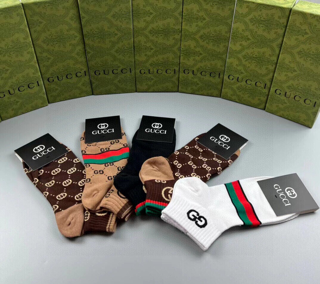 Elevate your wardrobe with the Gucci Classic Logo Jacquard Socks, now available in a convenient five-pair gift box. Crafted with precision and style, these socks feature the iconic Gucci logo, making them a chic addition to any outfit. Perfect for both everyday wear and special occasions, they effortlessly complement a variety of looks. A must-have accessory for fashion enthusiasts, these luxurious socks combine comfort with high-fashion appeal. Treat yourself or gift them to a loved one for a fashionable statement!