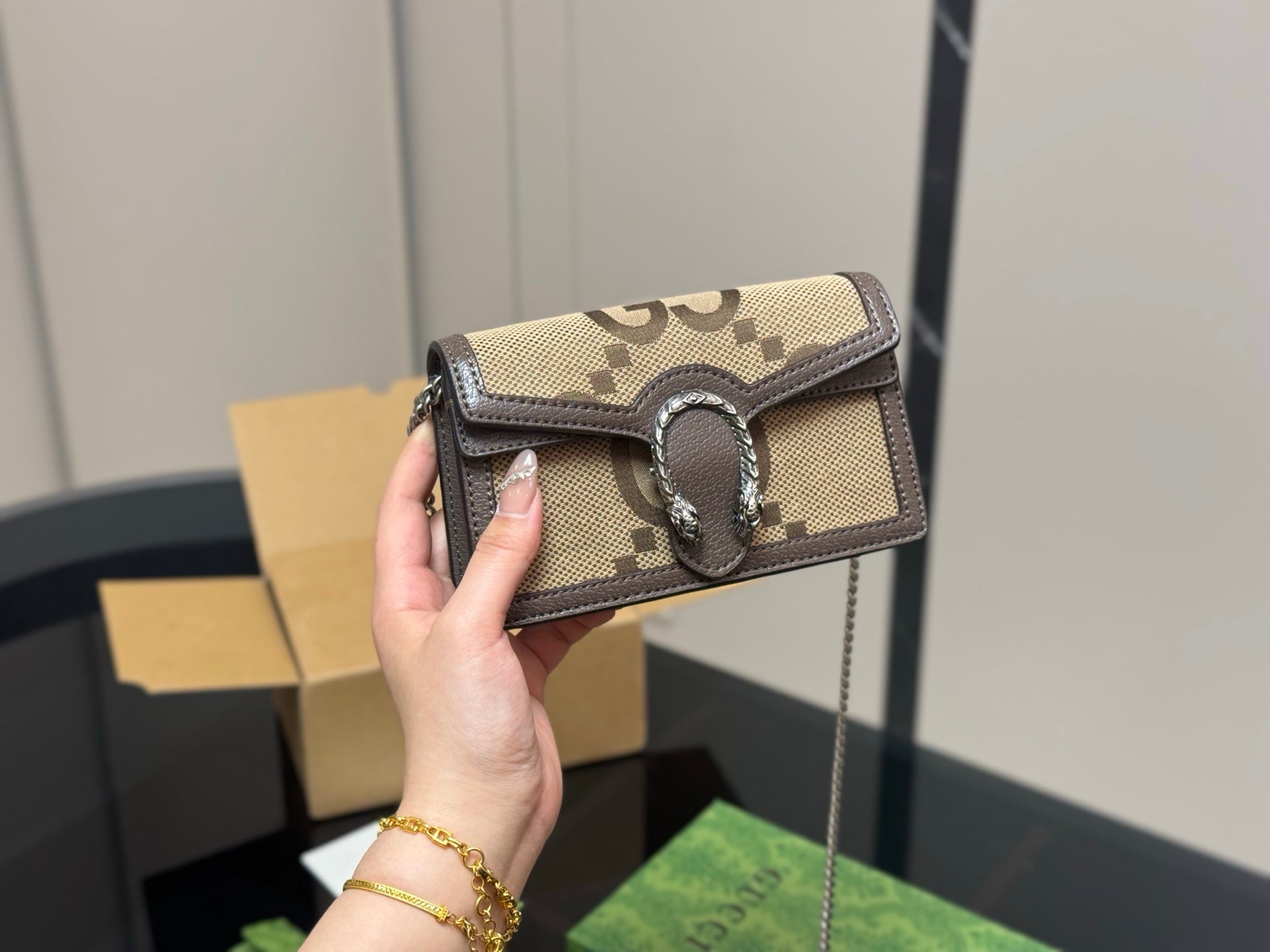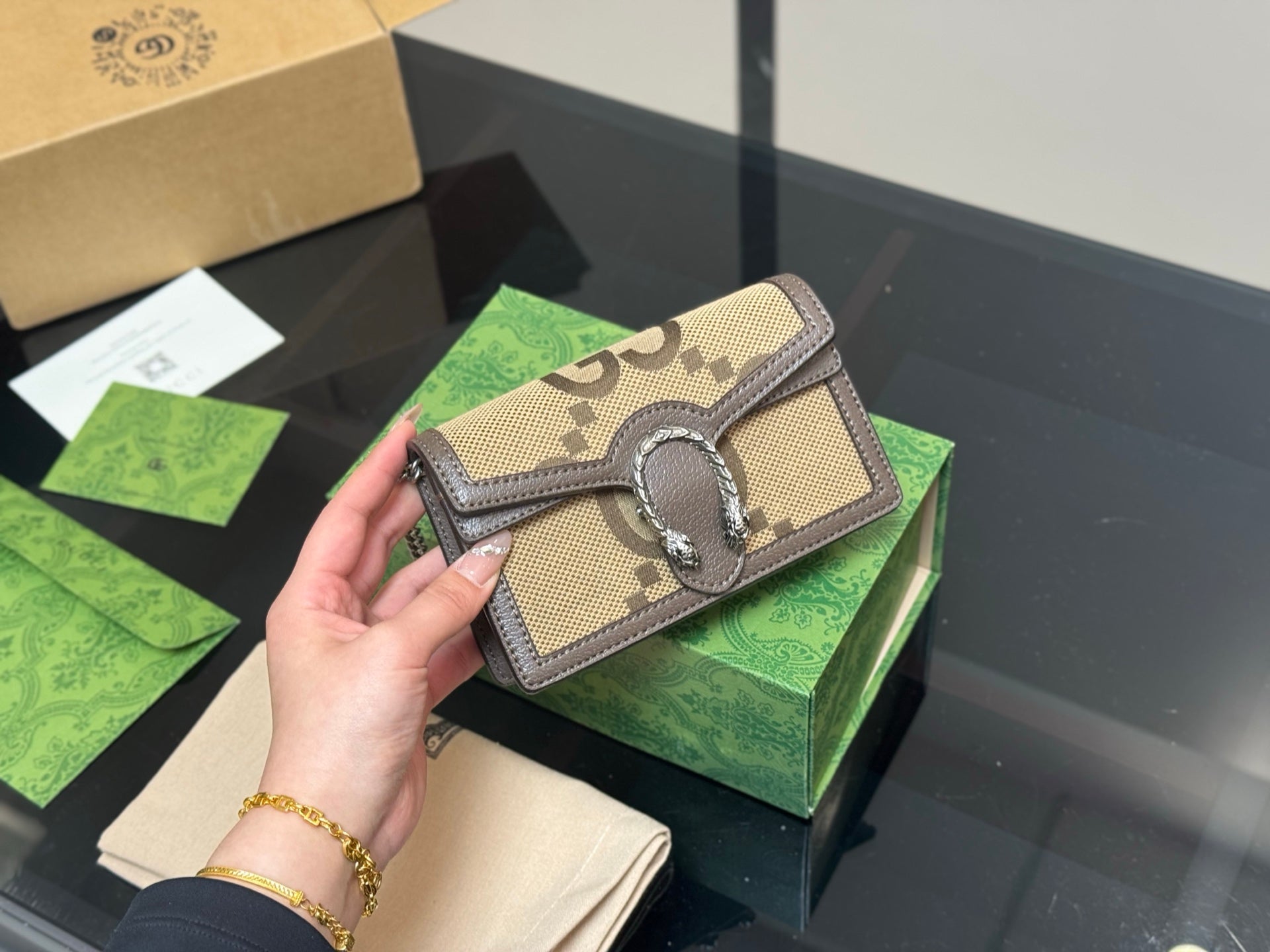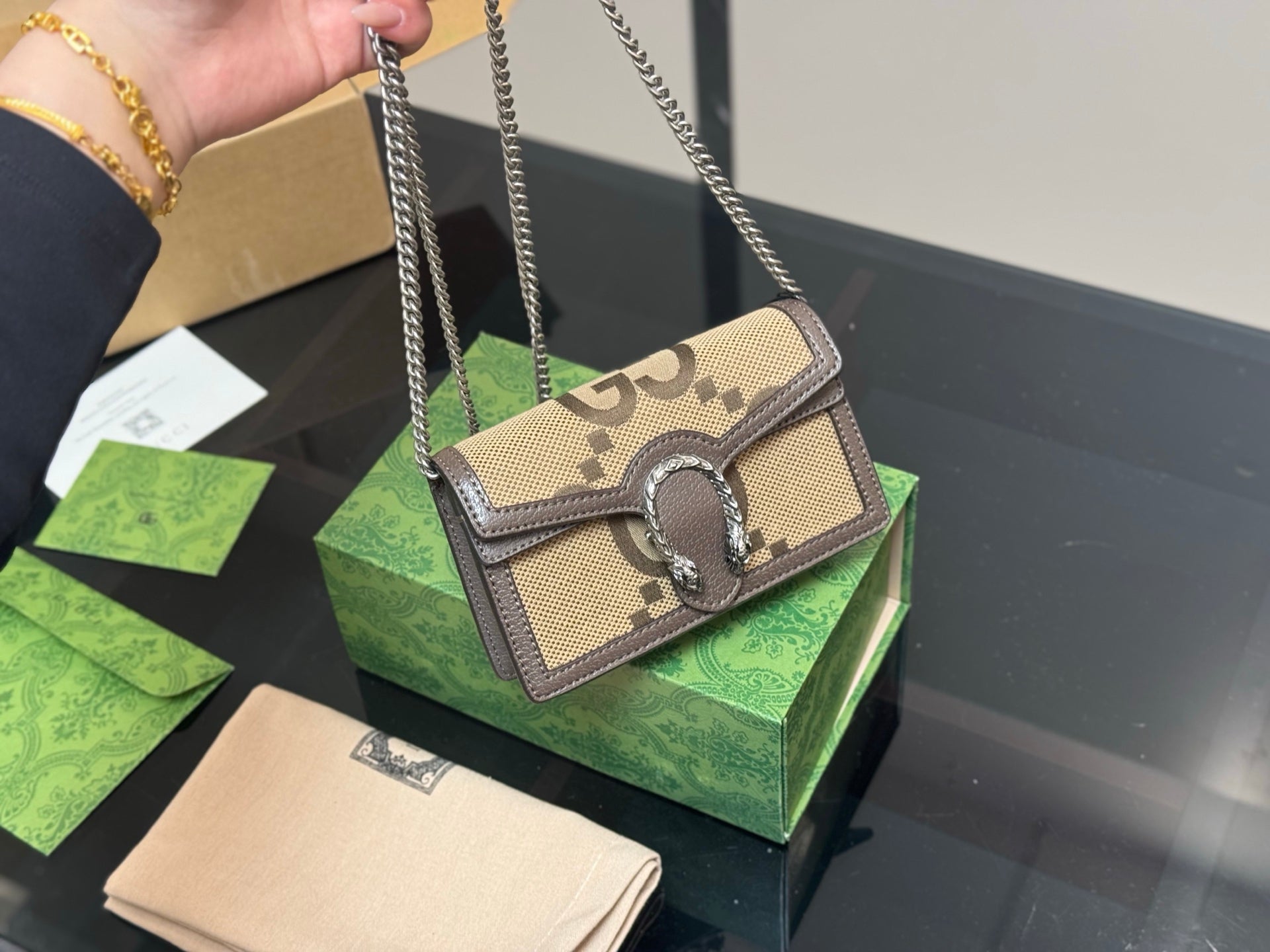 Introducing the Gucci Dionysian Bag, a timeless accessory that effortlessly combines sophistication with versatility. Crafted from premium cowhide, this classic bag features an elegant design that elevates any outfit. With its compact dimensions and lightweight structure, the bag is both easy to carry and stylish, making it suitable for various occasions. Each purchase includes a chic airplane case folding box (size: 16.5 cm), ensuring your bag is beautifully presented and protected. Embrace a piece that is not only hard to find but also a true statement of elegance.