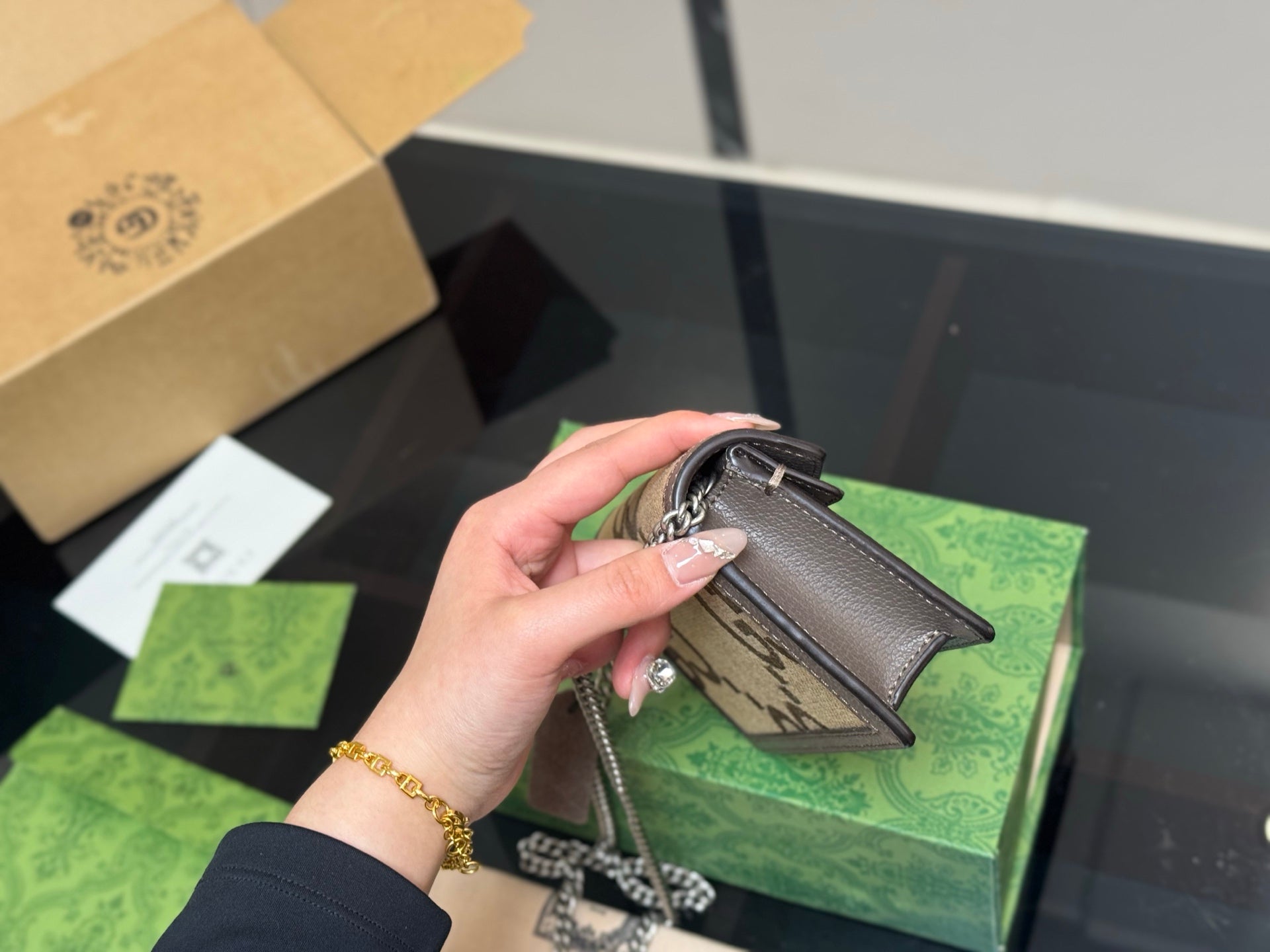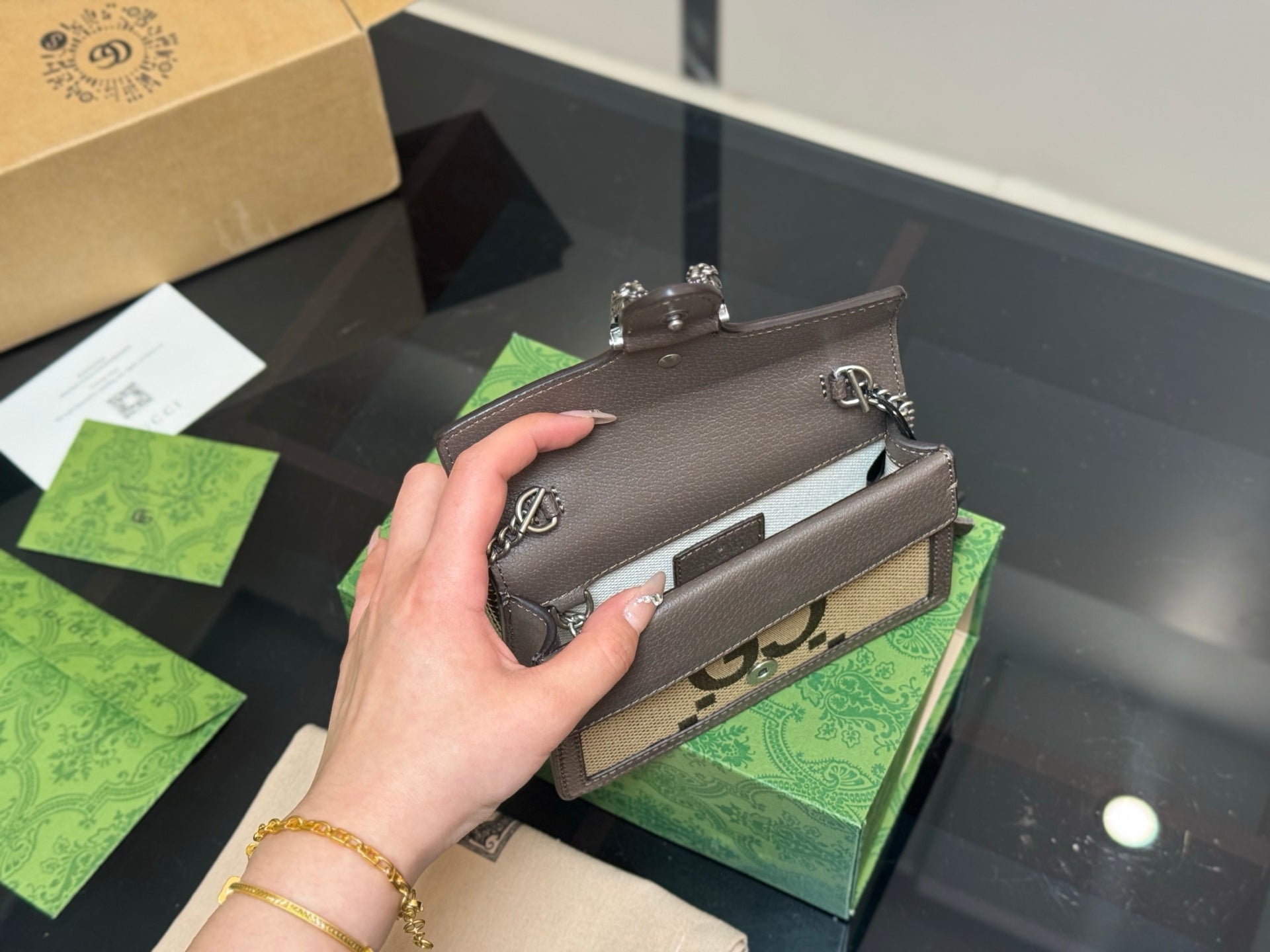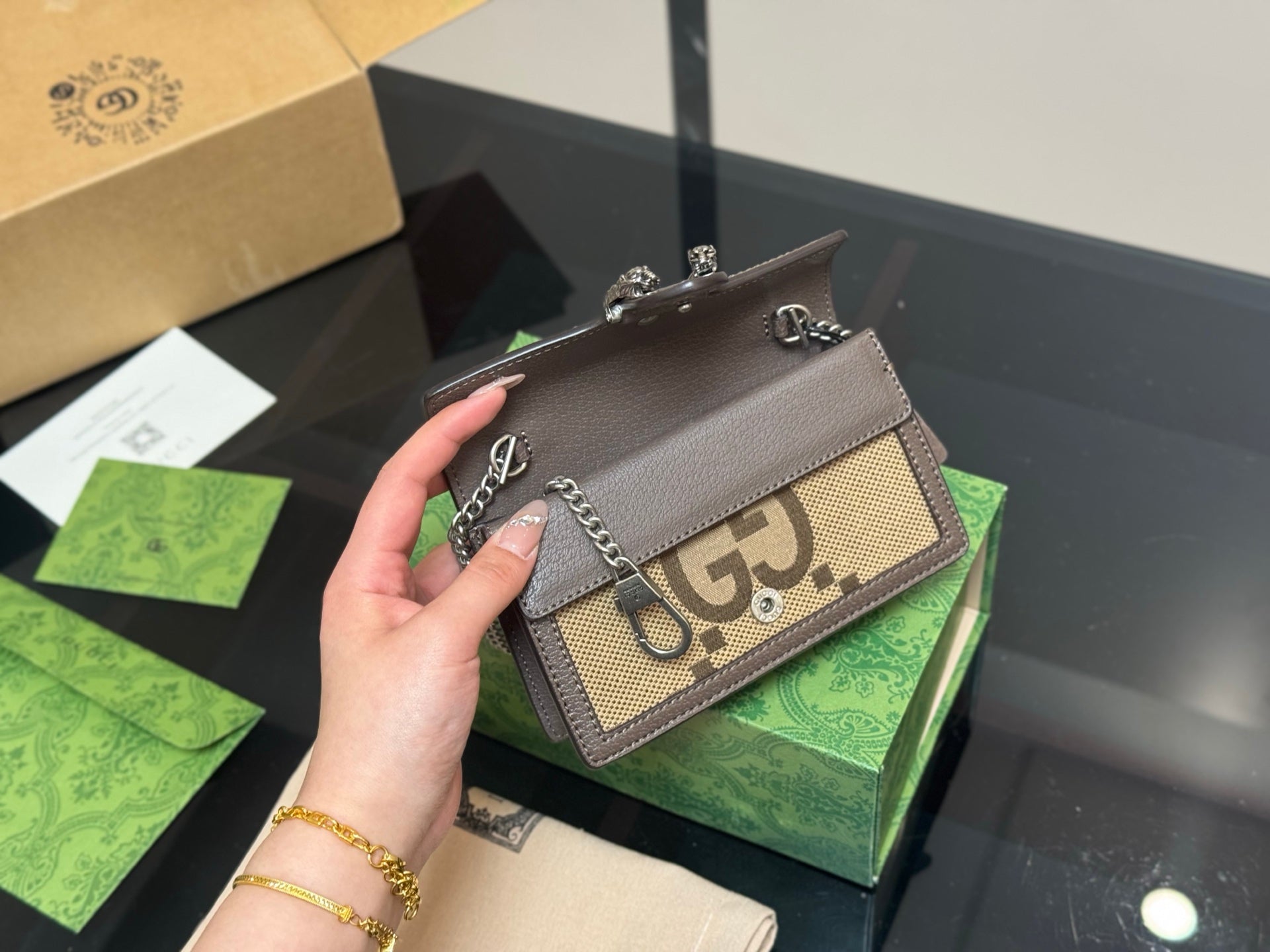 Introducing the Gucci Dionysian Bag, a timeless accessory that effortlessly combines sophistication with versatility. Crafted from premium cowhide, this classic bag features an elegant design that elevates any outfit. With its compact dimensions and lightweight structure, the bag is both easy to carry and stylish, making it suitable for various occasions. Each purchase includes a chic airplane case folding box (size: 16.5 cm), ensuring your bag is beautifully presented and protected. Embrace a piece that is not only hard to find but also a true statement of elegance.