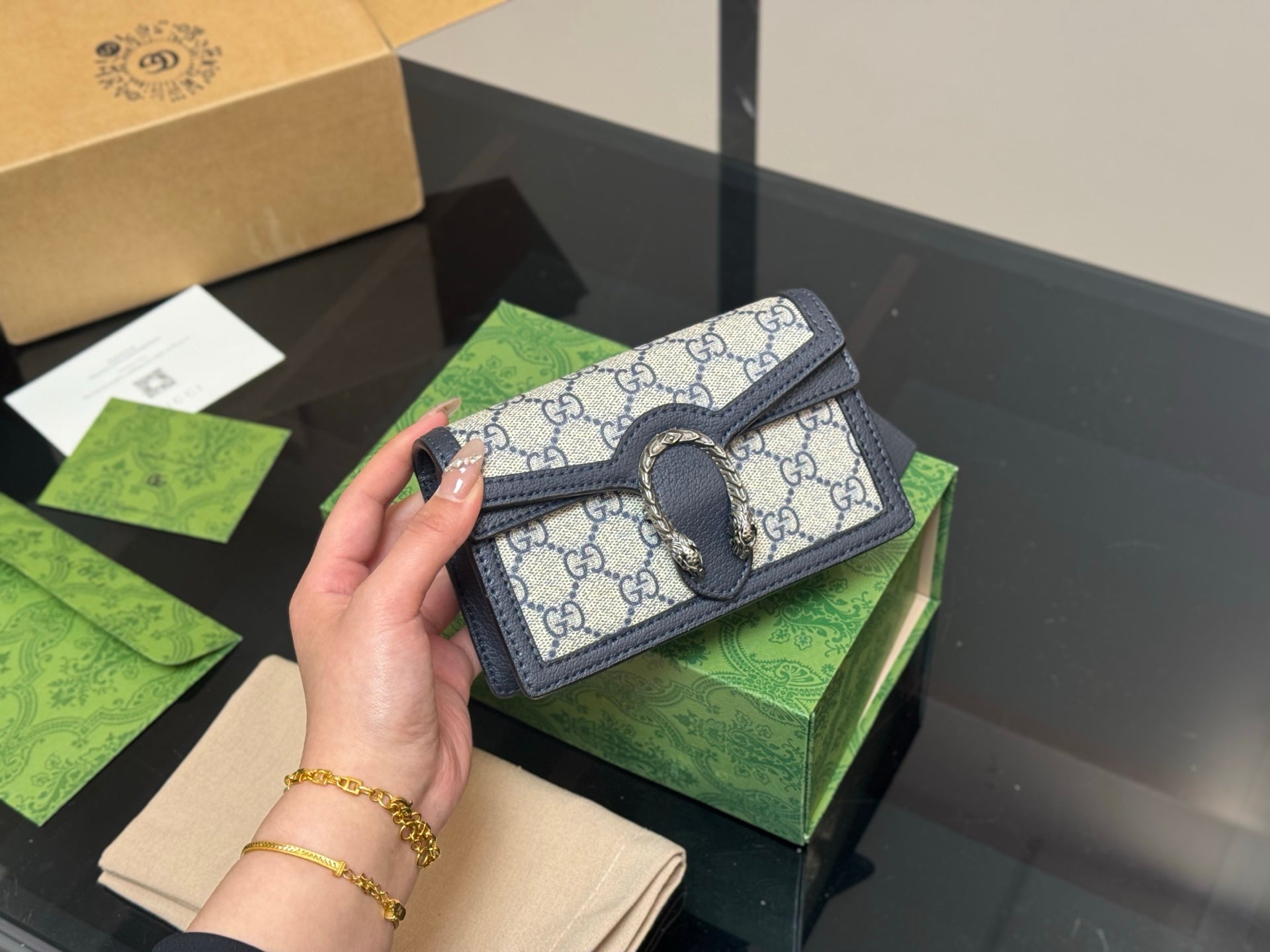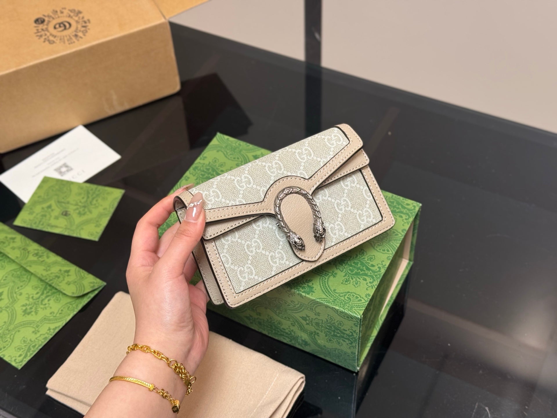 Introducing the Gucci Dionysian Bag, a timeless accessory that merges classic style with modern versatility. Crafted from premium cowhide leather, this bag exudes elegance and sophistication. Its compact size of 16.5 cm makes it easy to carry, whether for everyday use or special occasions. The unique airplane case folding design ensures both functionality and ease of storage. Elevate your wardrobe with this hard-to-find piece that embodies luxury and practicality. Perfect for those who appreciate the finer details in life.
