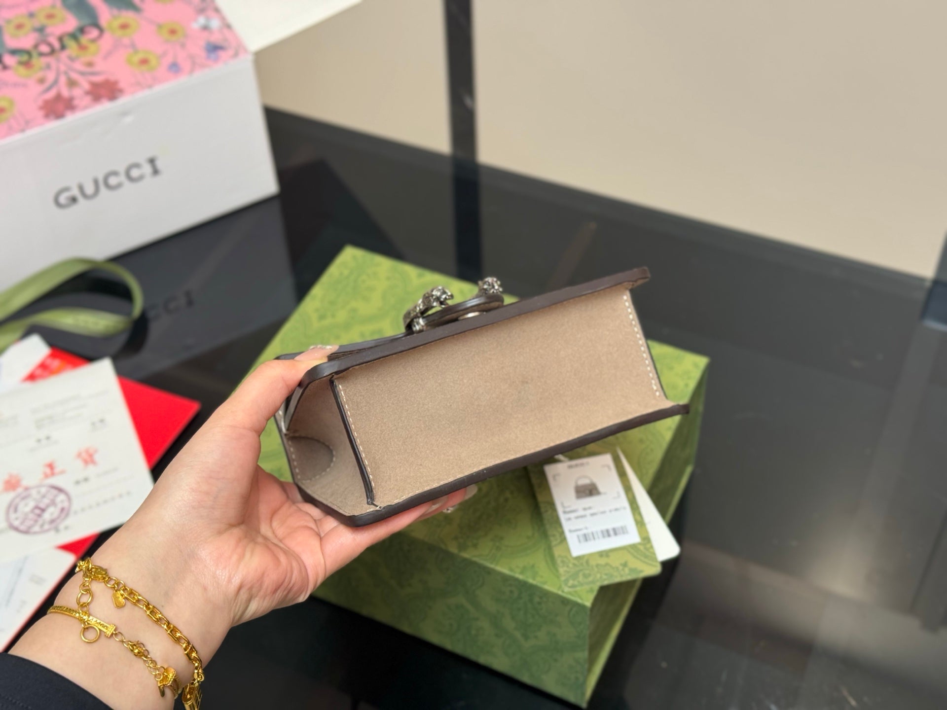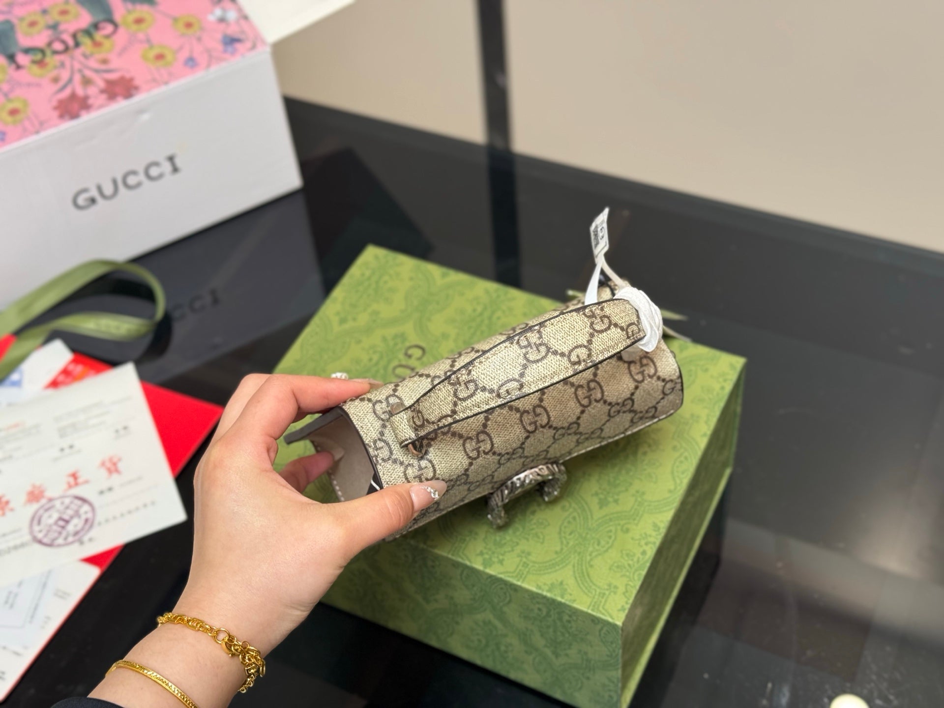 Introducing the Gucci Dionysian Bag, a perfect blend of elegance and practicality. Measuring 18 x 12 cm, this stylish handbag features a folding design and can be worn across the body or carried in hand, making it ideal for any occasion. Its classic silhouette combines sophistication with modern fashion, ensuring it remains a timeless addition to your wardrobe. Elevate your accessory collection with this noble and versatile piece from Gucci.