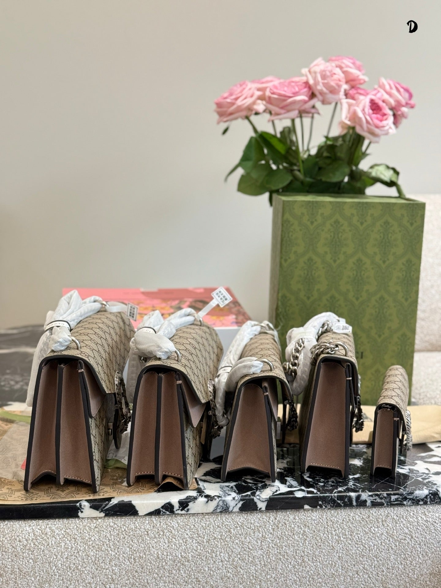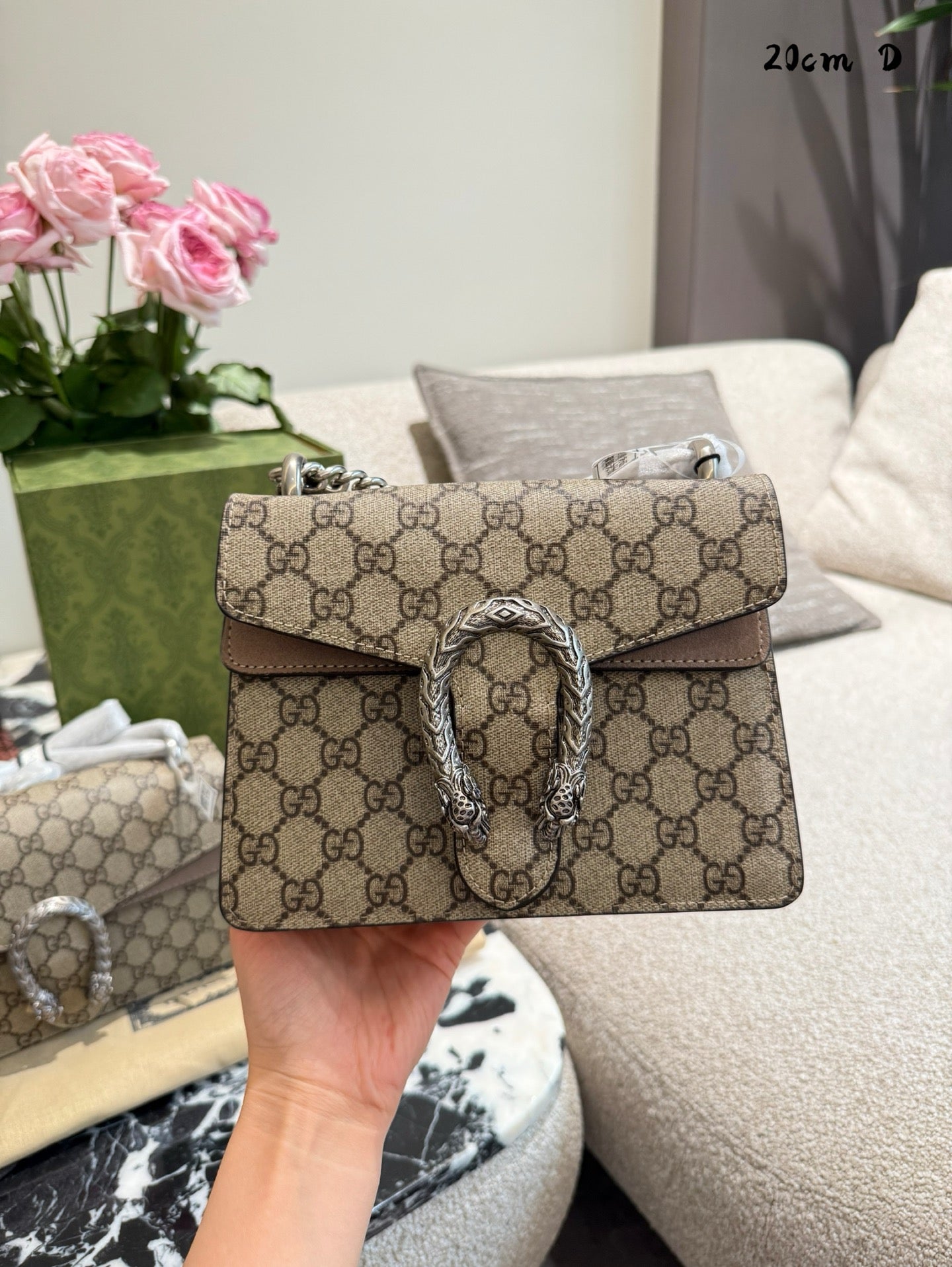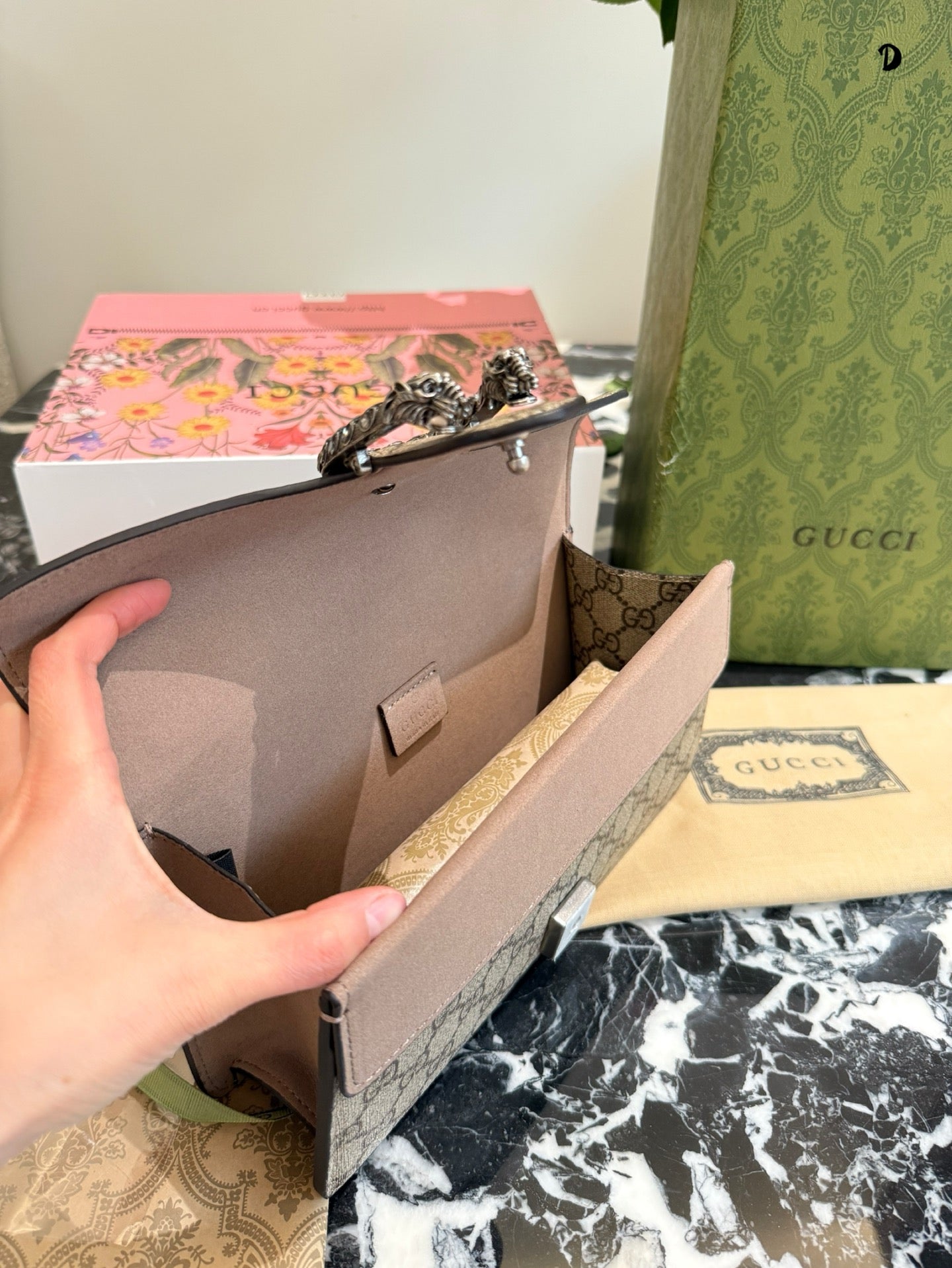 Crafted with a structured body and a stylish rolling chain, the Gucci Dionysus Bag offers versatile carrying options, making it perfect for any occasion. The interior boasts premium deer antler leather, providing a luxurious texture, while the high-quality materials ensure durability and longevity. Elevate your accessory game with a bag that seamlessly blends heritage and modernity.