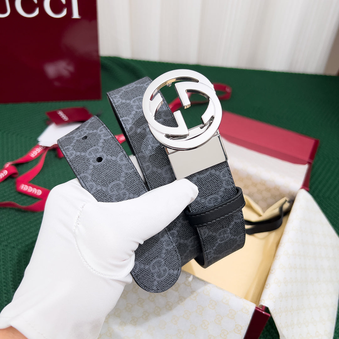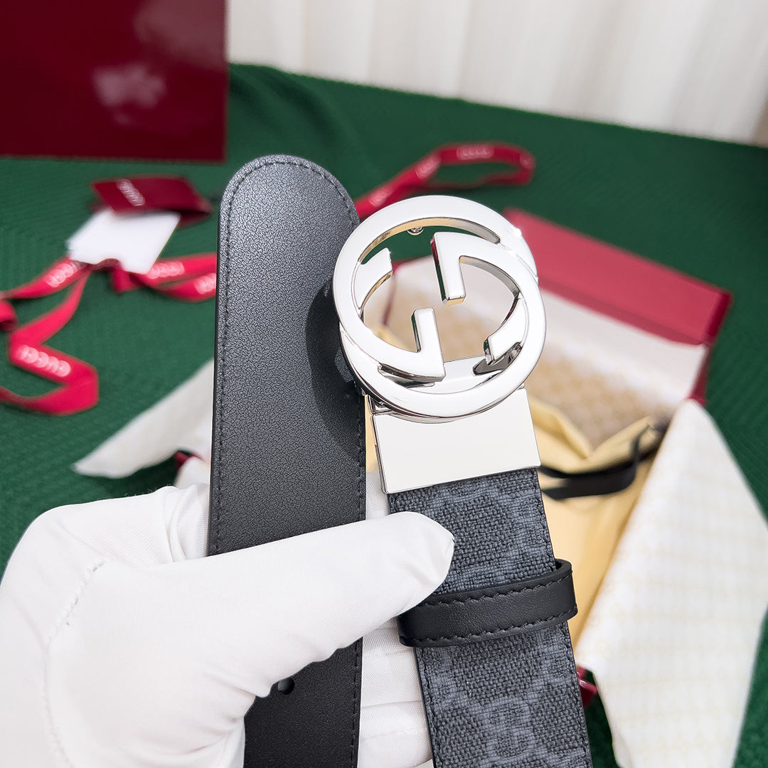 Elevate your style with the Gucci Double-Sided Leather Belt for men. Crafted from premium original leather, this high-end accessory features a sophisticated 3.7mm counter-rotating buckle, allowing you to effortlessly switch between its two stunning sides. Ideal for versatile styling, this top-quality belt is designed for those who appreciate luxury and functionality. Perfect for both casual and formal occasions, this belt is a must-have addition to your wardrobe.