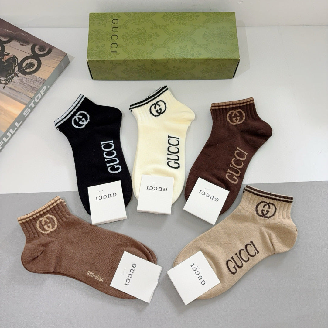 Gucci G Family Cotton Short Boat Socks - 5 Pairs in Box