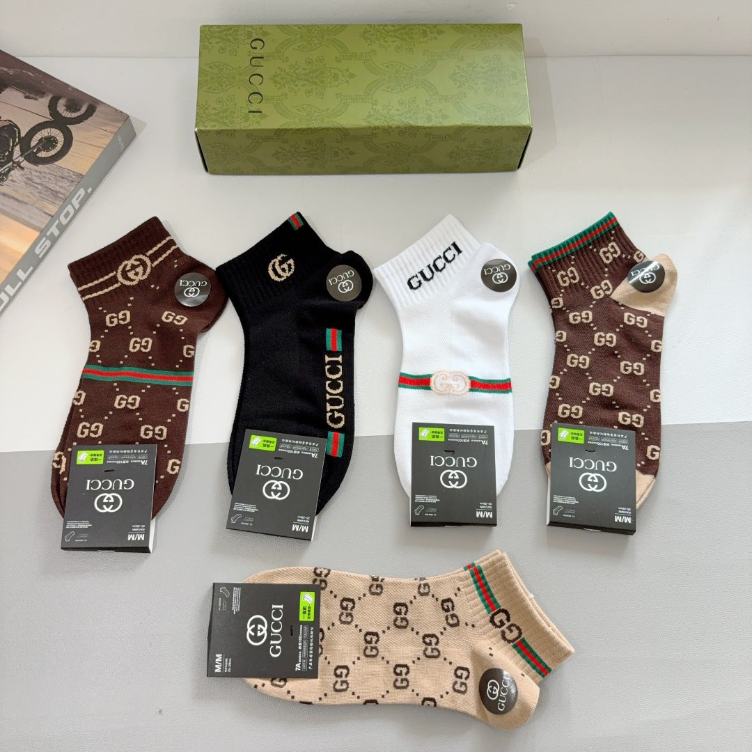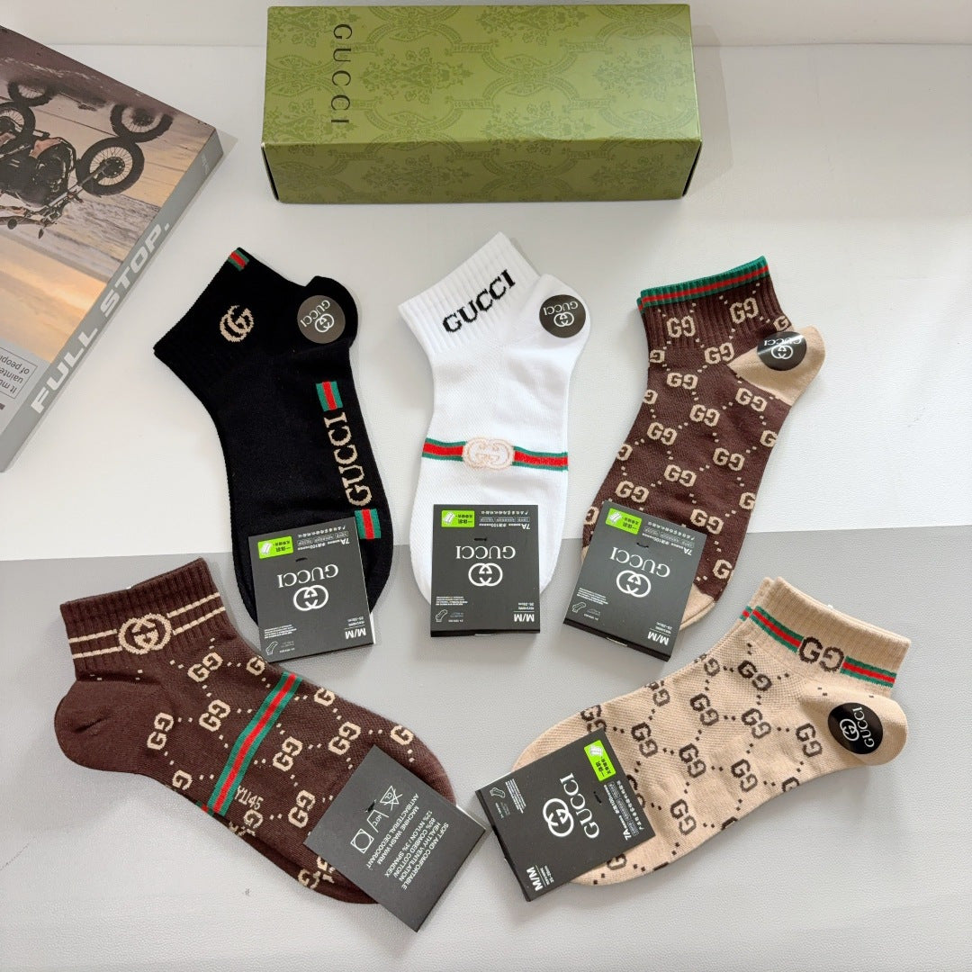 Gucci G Family Pure Cotton Short Socks – 5 Pairs in Luxury Box